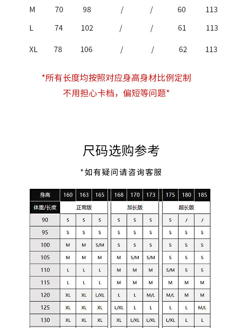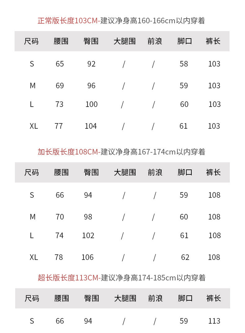 颜色分类 黑色正常版裤长103cm,黑色加长版裤长108cm,黑色超长版裤长113cm