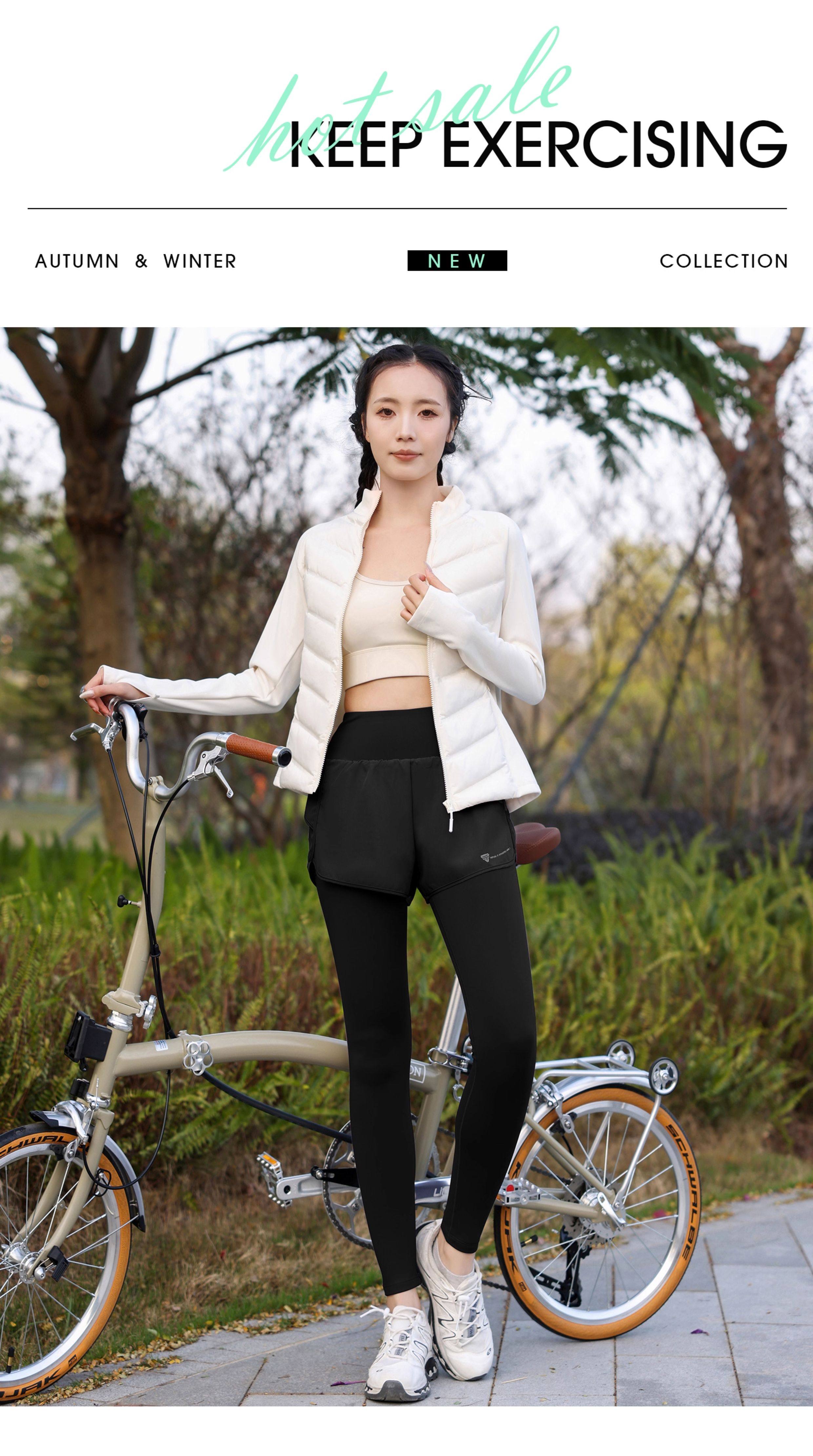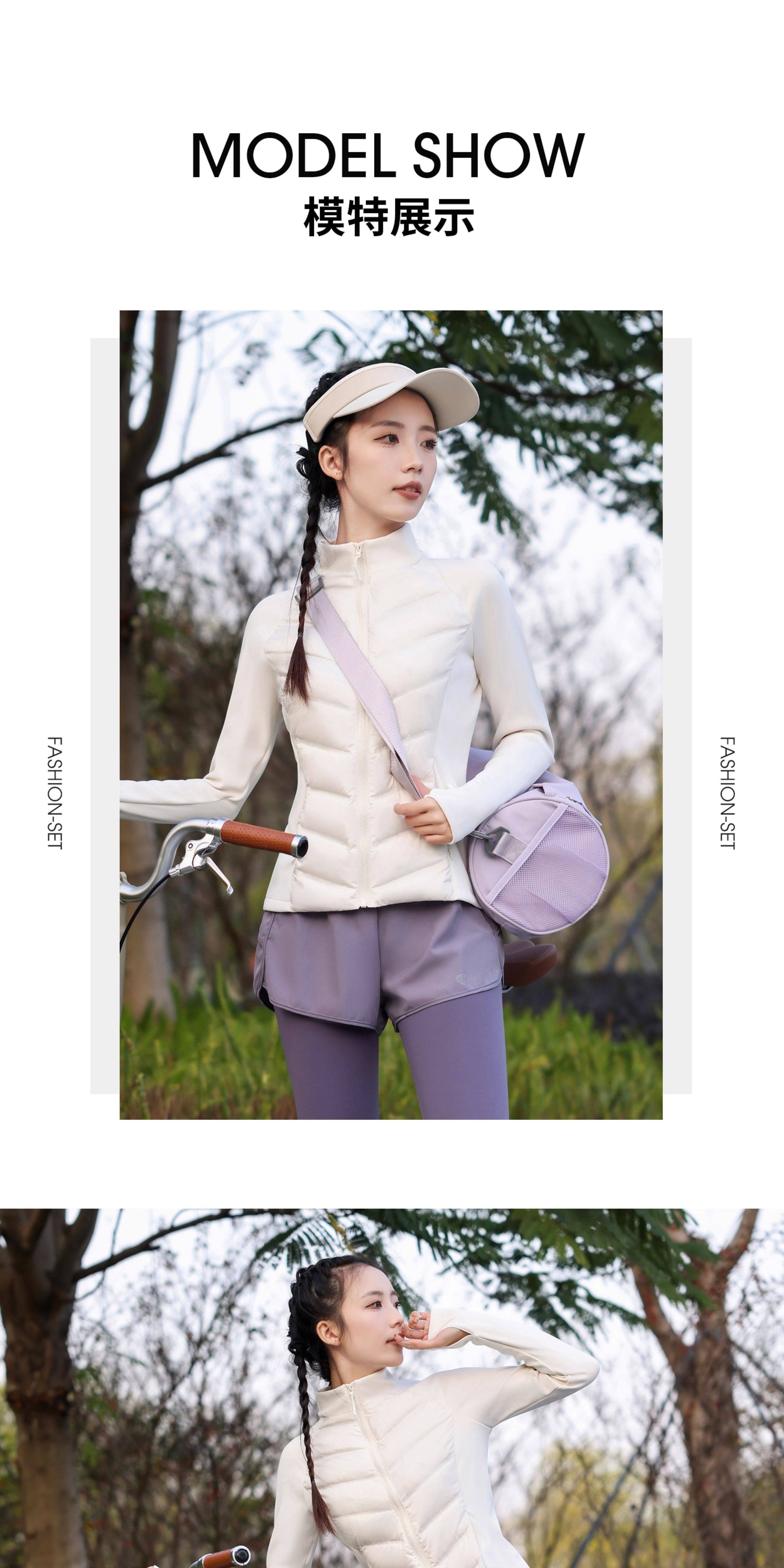 轻薄羽绒服户外自行车训练服保暖白鸭绒冬季骑行防寒服运动套装女