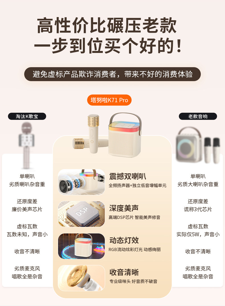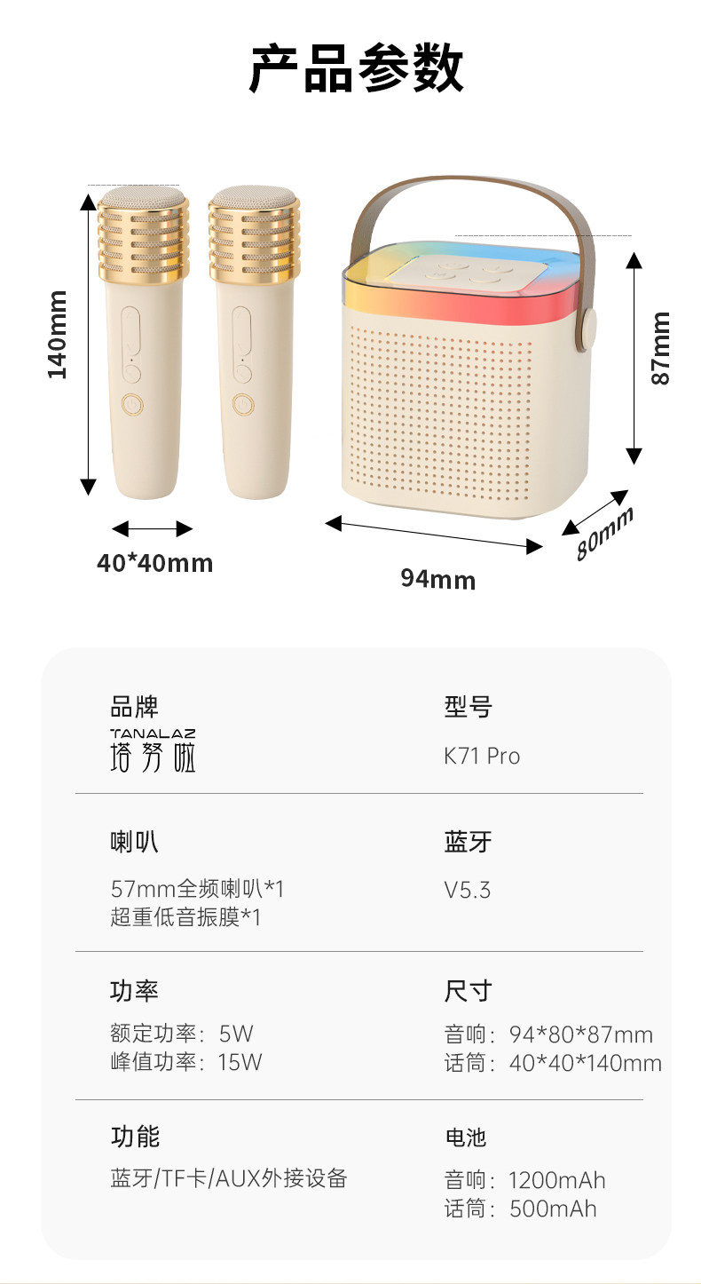 TANALAZ塔努啦K71Pro音响话筒麦克风一体蓝牙音箱便携家用无线k歌