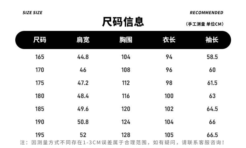China (cm) 165 / 88-90 170 / 96-98 175 / 108-110 180 / 118-122 185 / 126-130