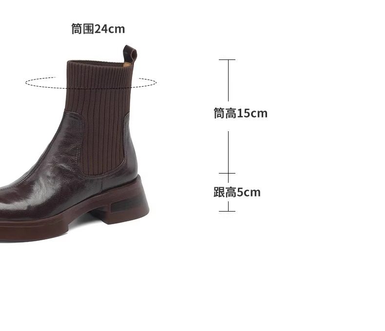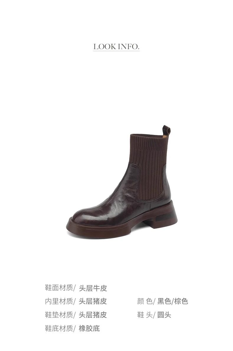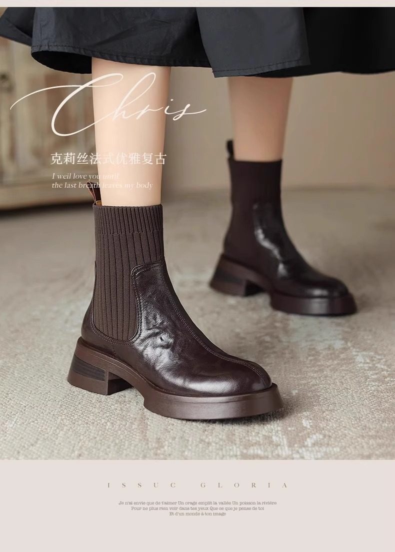 法式高跟短靴女2025新款秋冬圆头真皮粗跟弹力瘦瘦靴子复古马丁靴