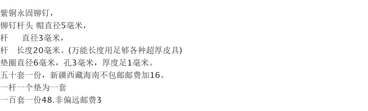 Kleiner Dauerniet aus Kupfer, kleiner Universalniet, 3-mm-Stab, 6-mm-Pad * 20 mm lang