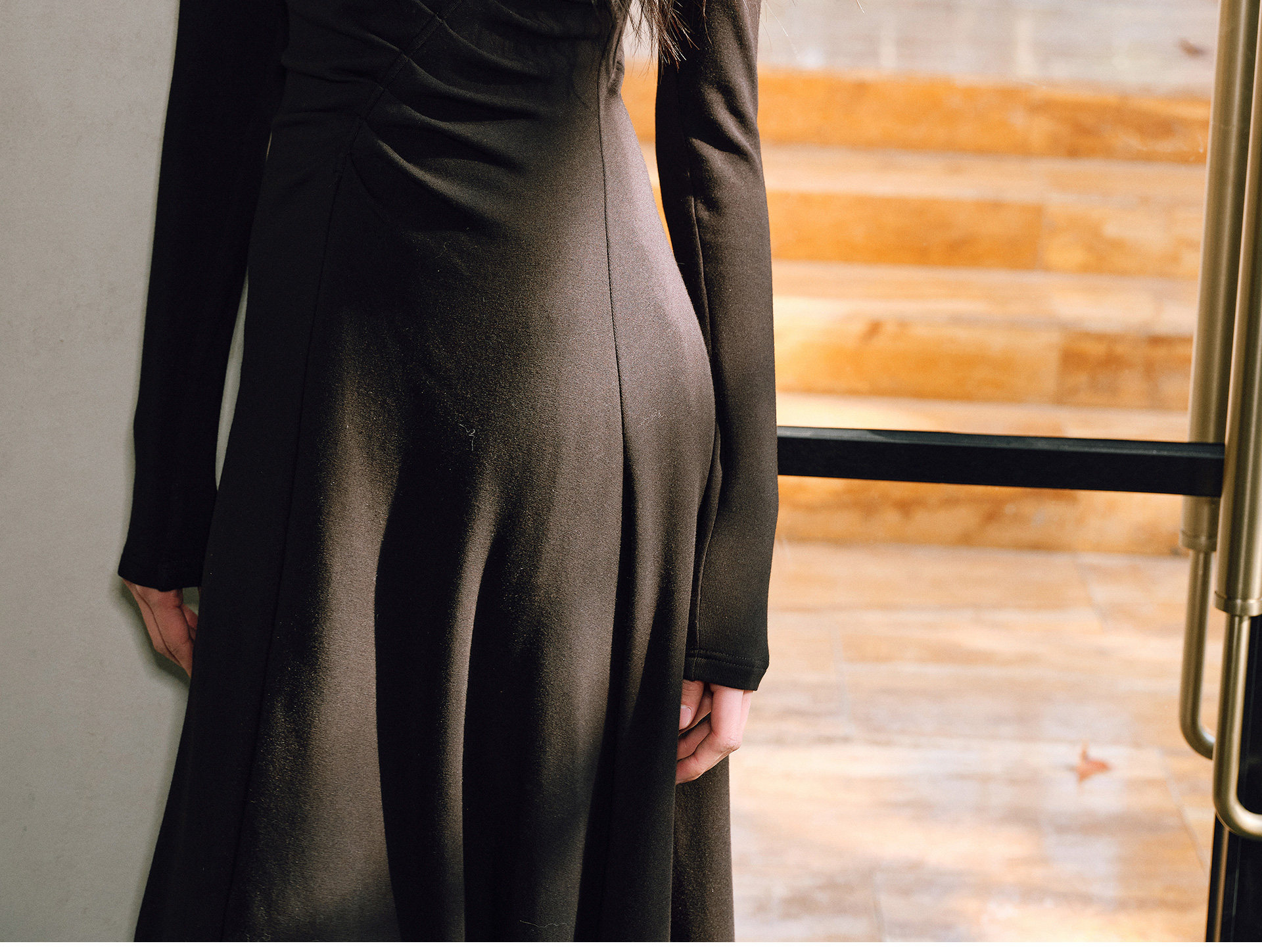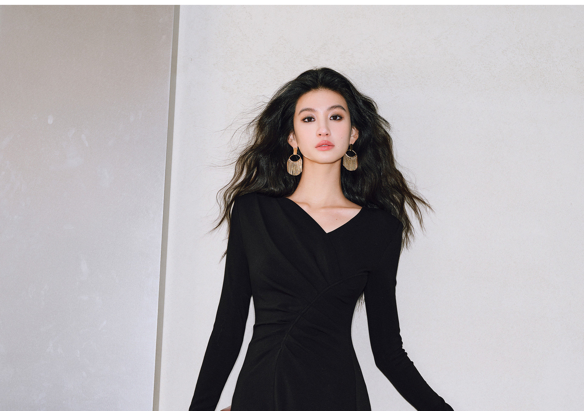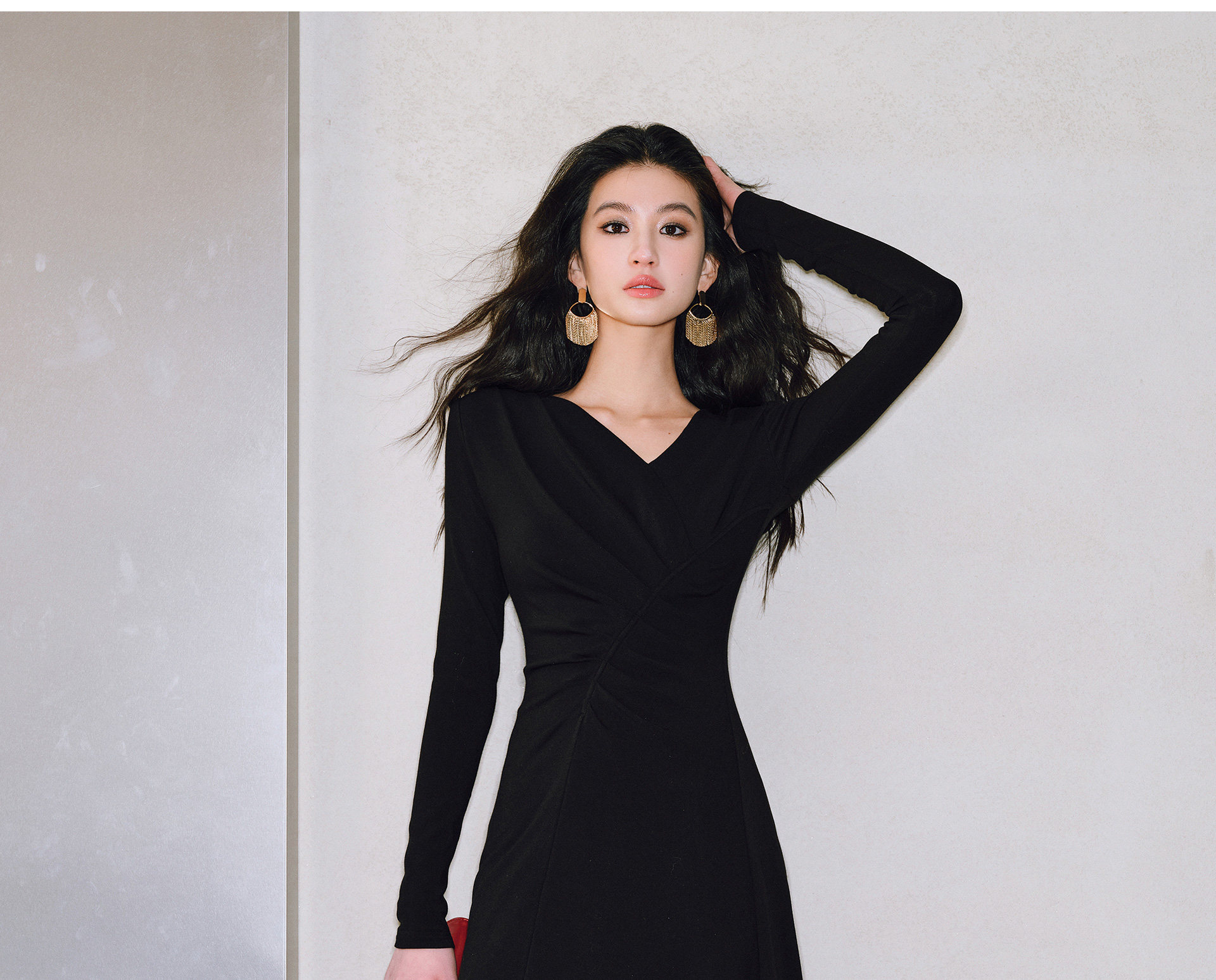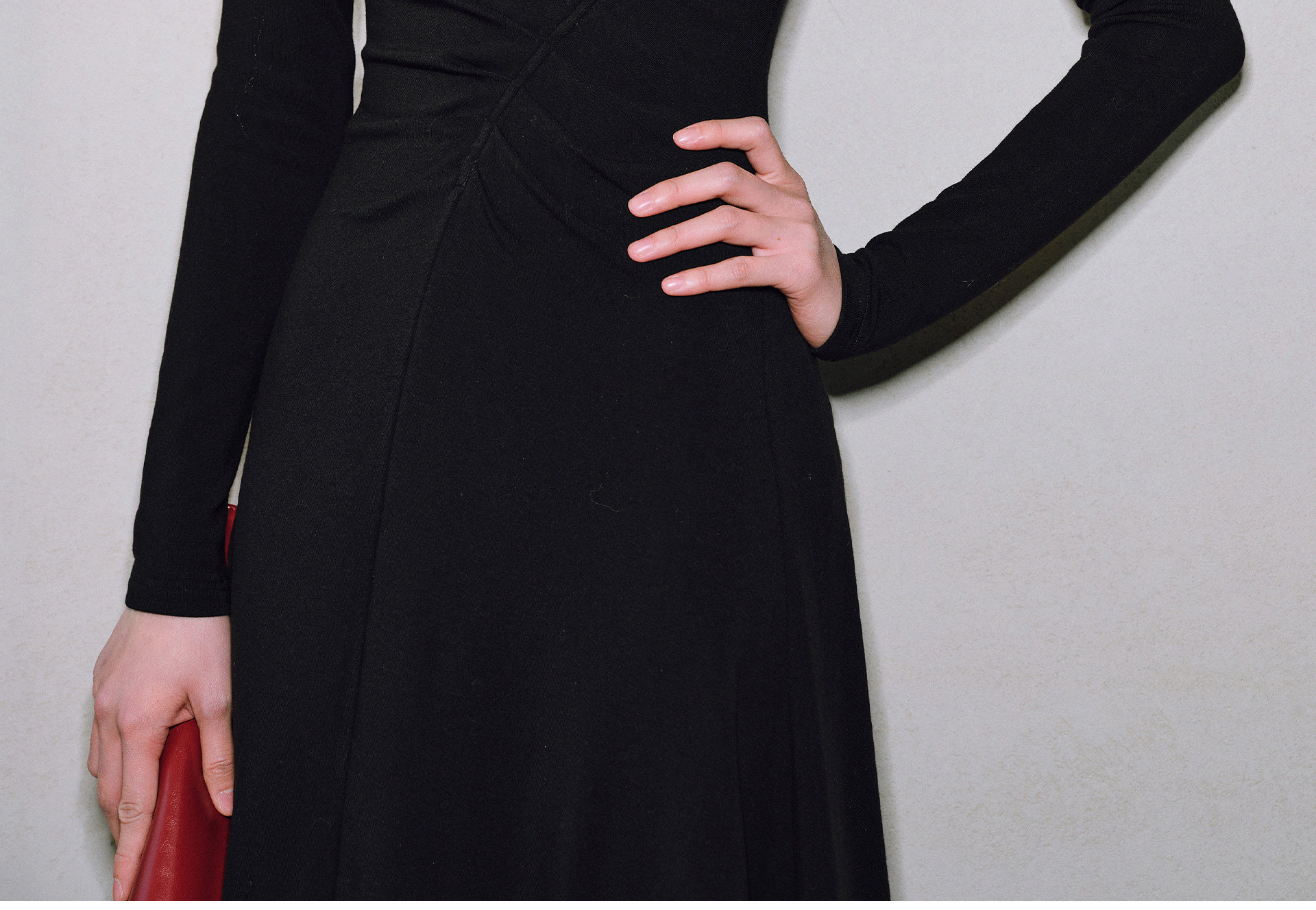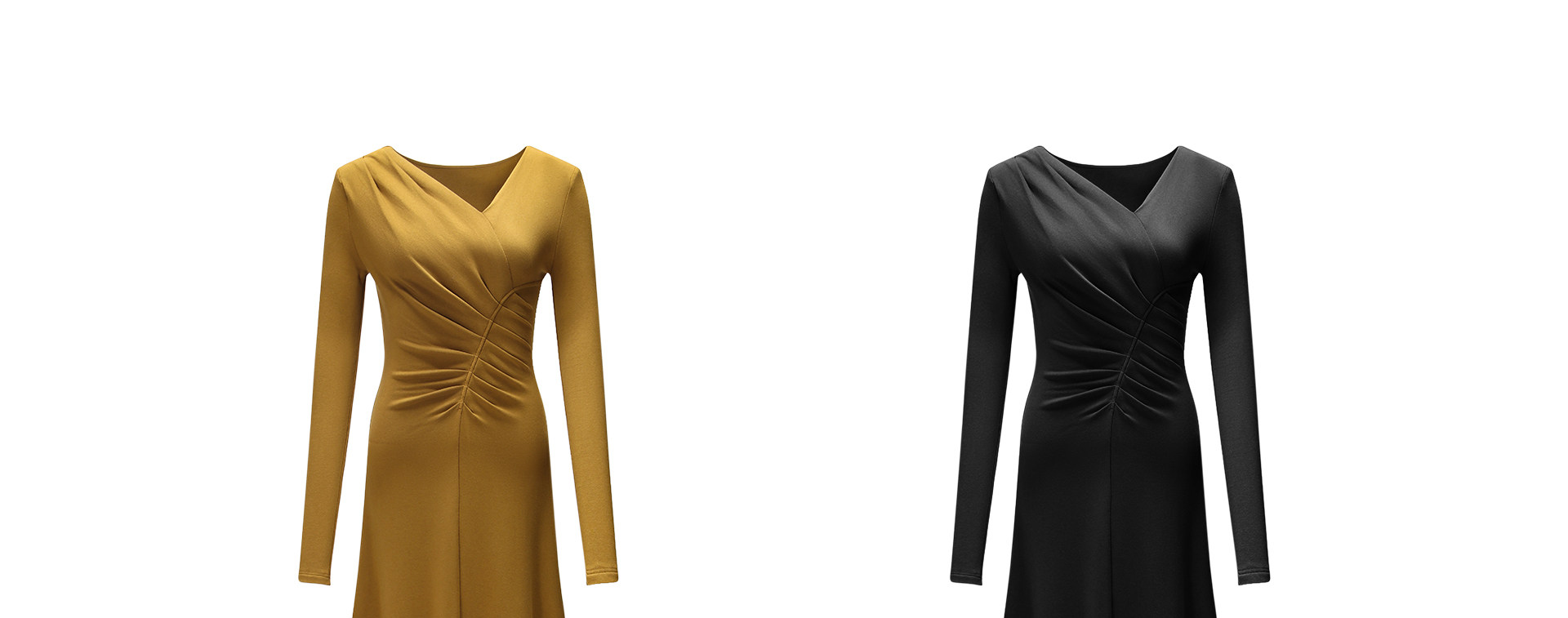 Wangxo|Luxurious Soft Knit Material|Artistic Sculptural Pleats|Overlapping V-Neck Tailored Slim-Fit A-Line Dress