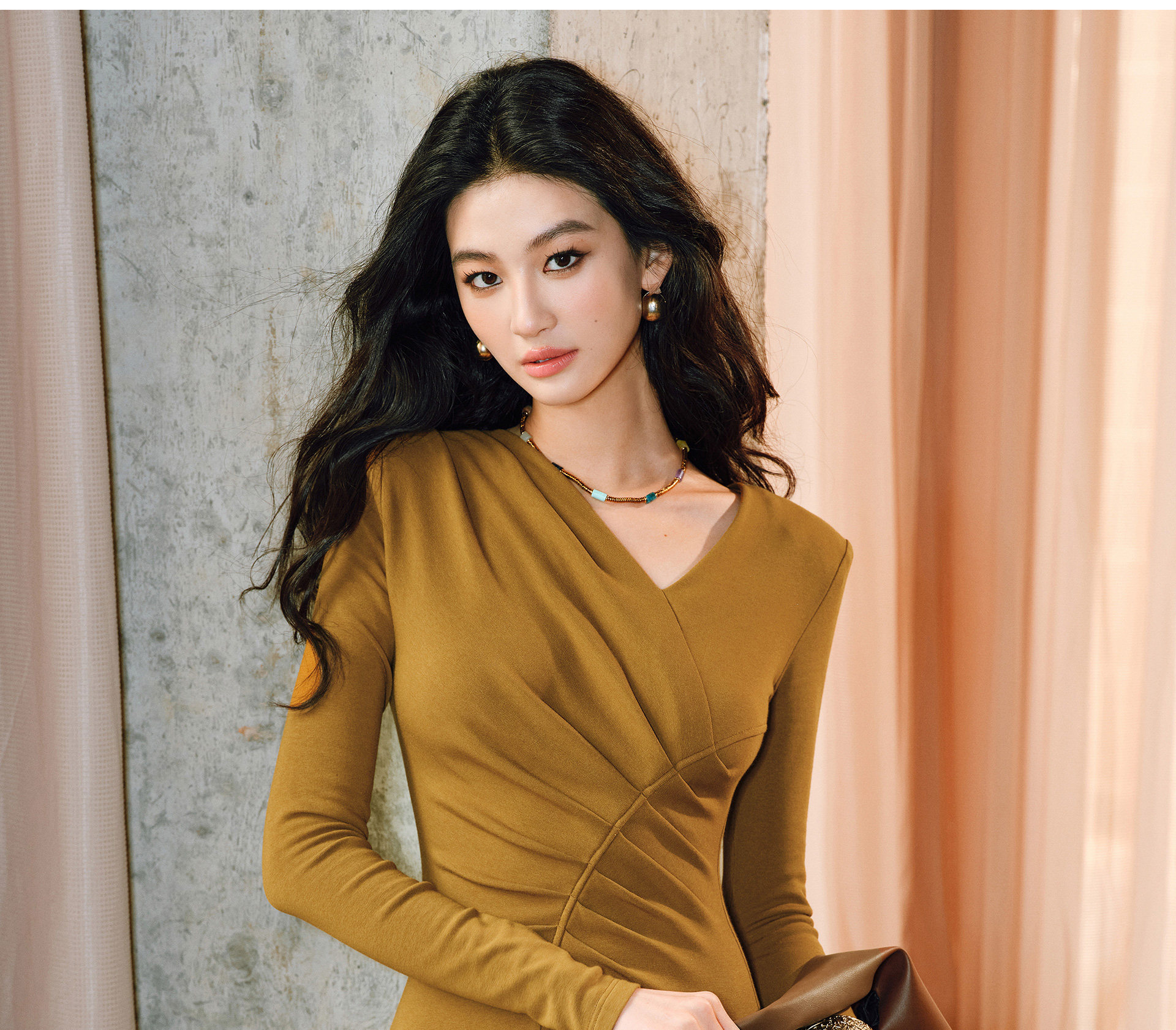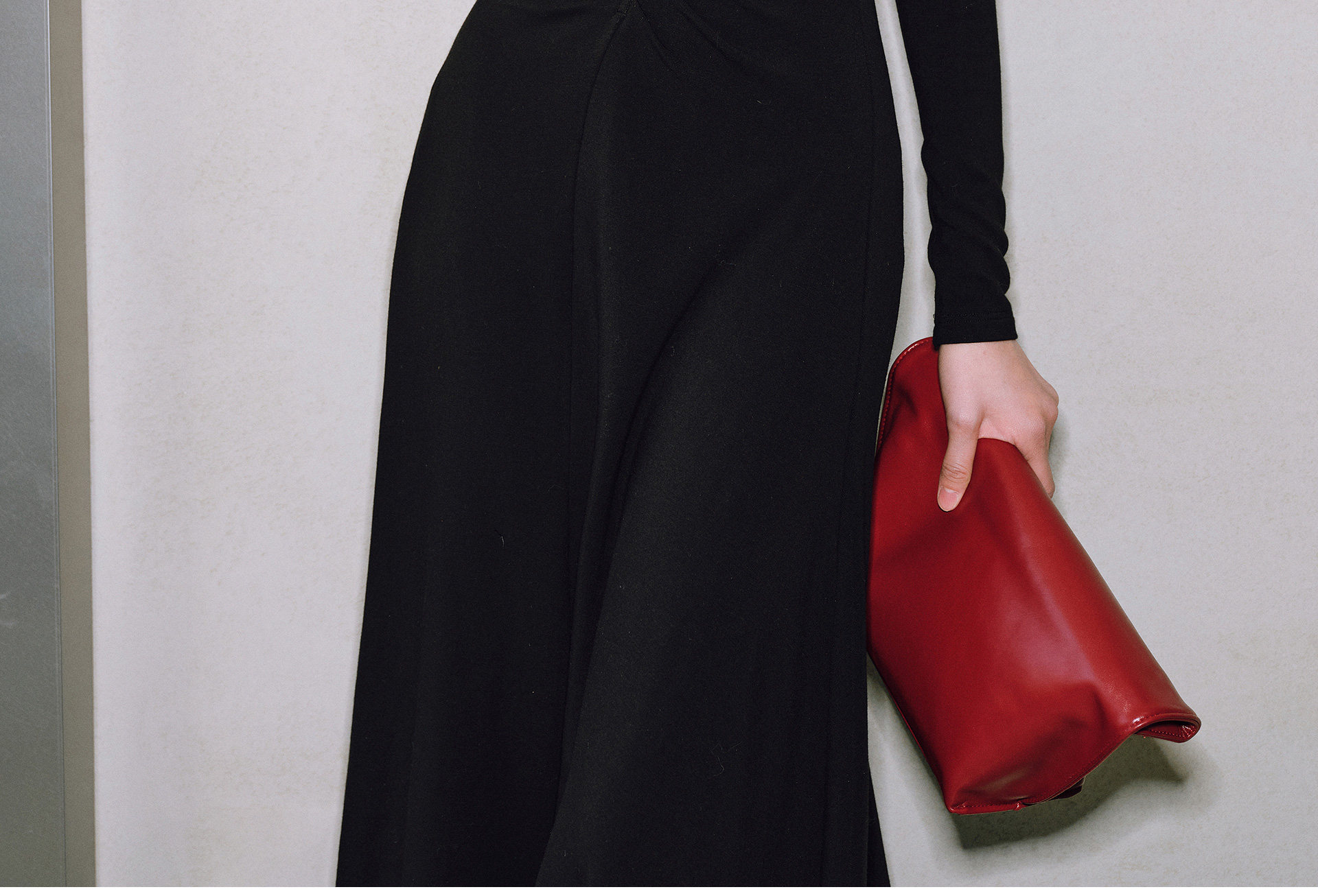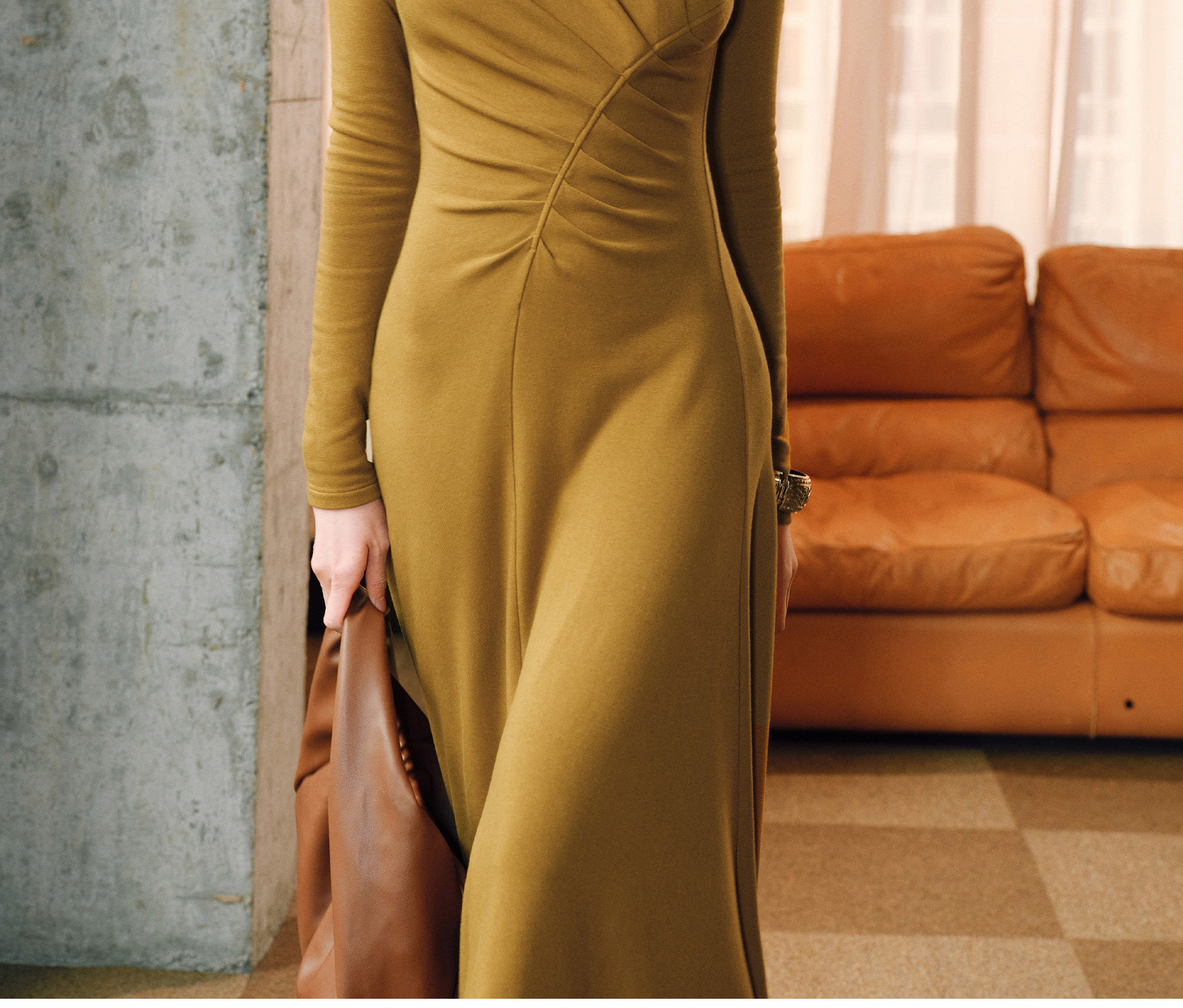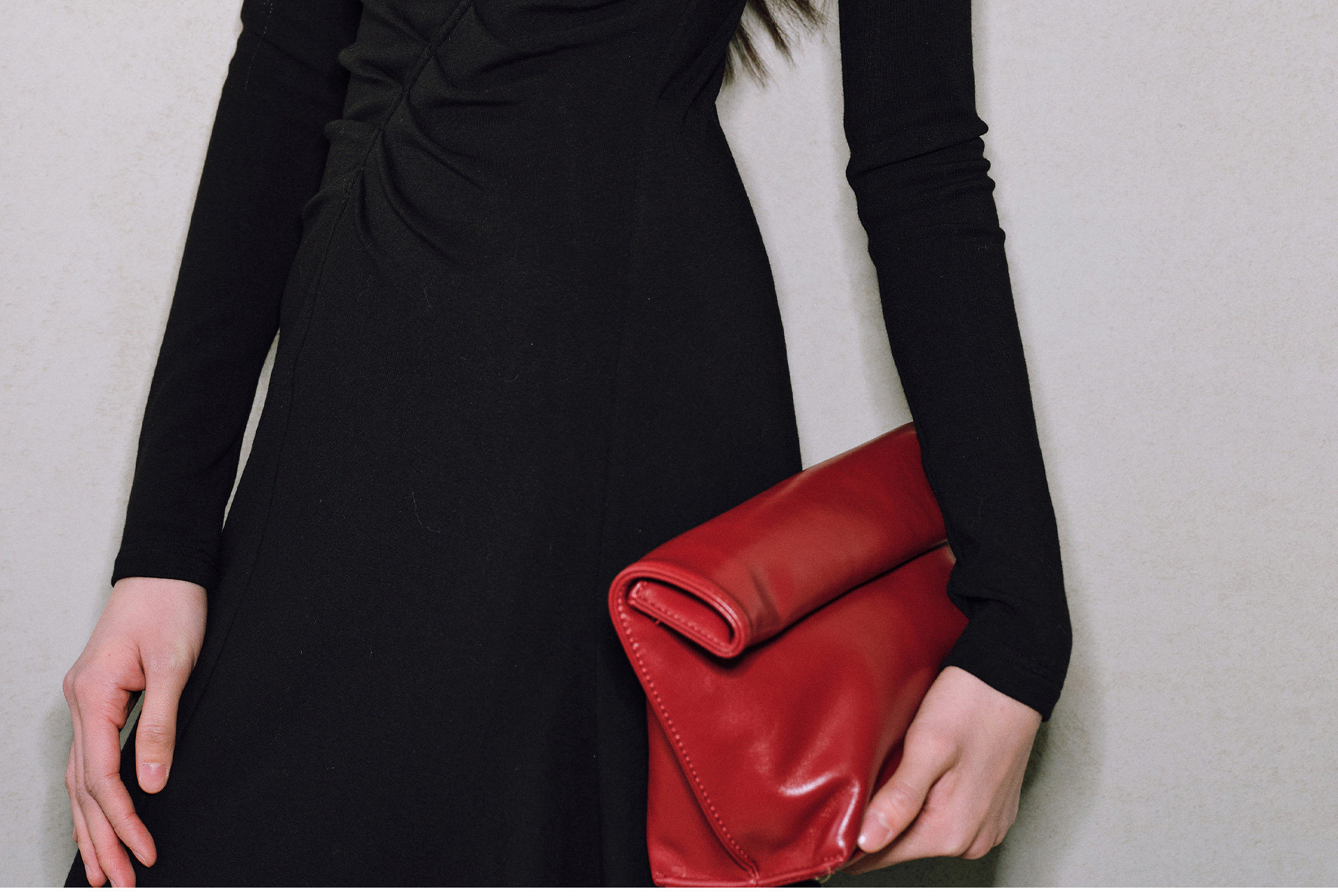 Wangxo|Luxurious Soft Knit Material|Artistic Sculptural Pleats|Overlapping V-Neck Tailored Slim-Fit A-Line Dress