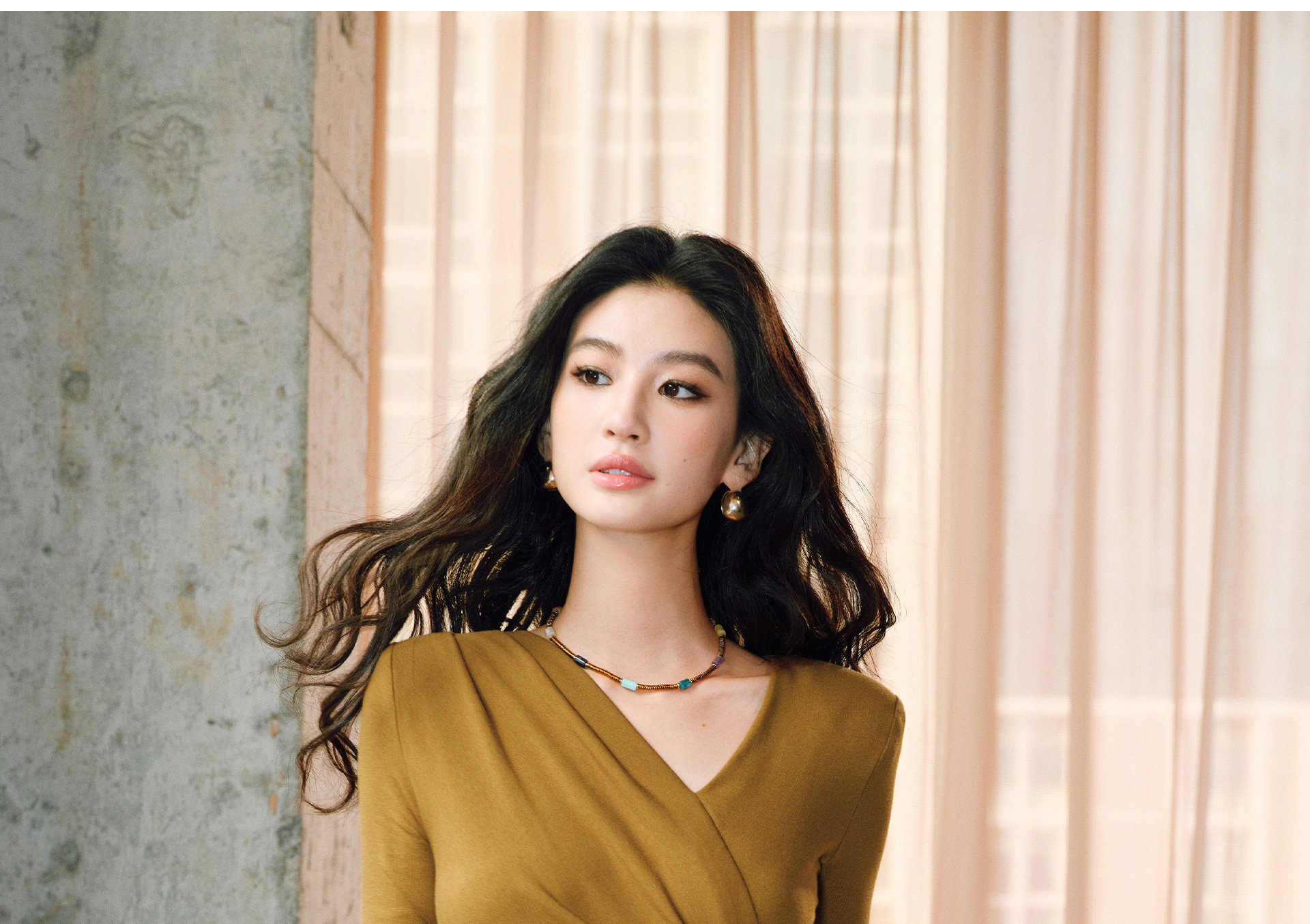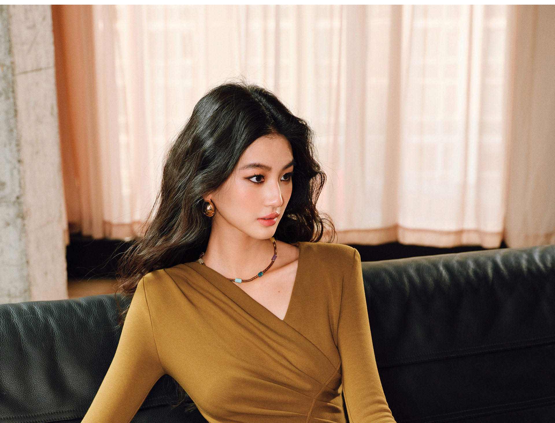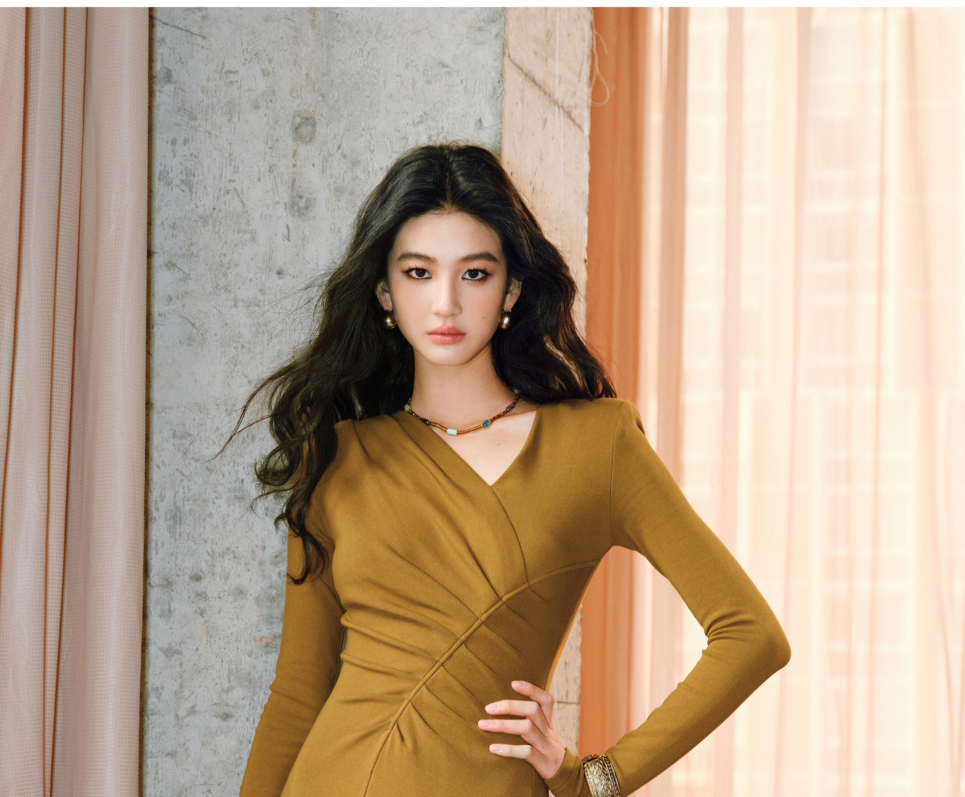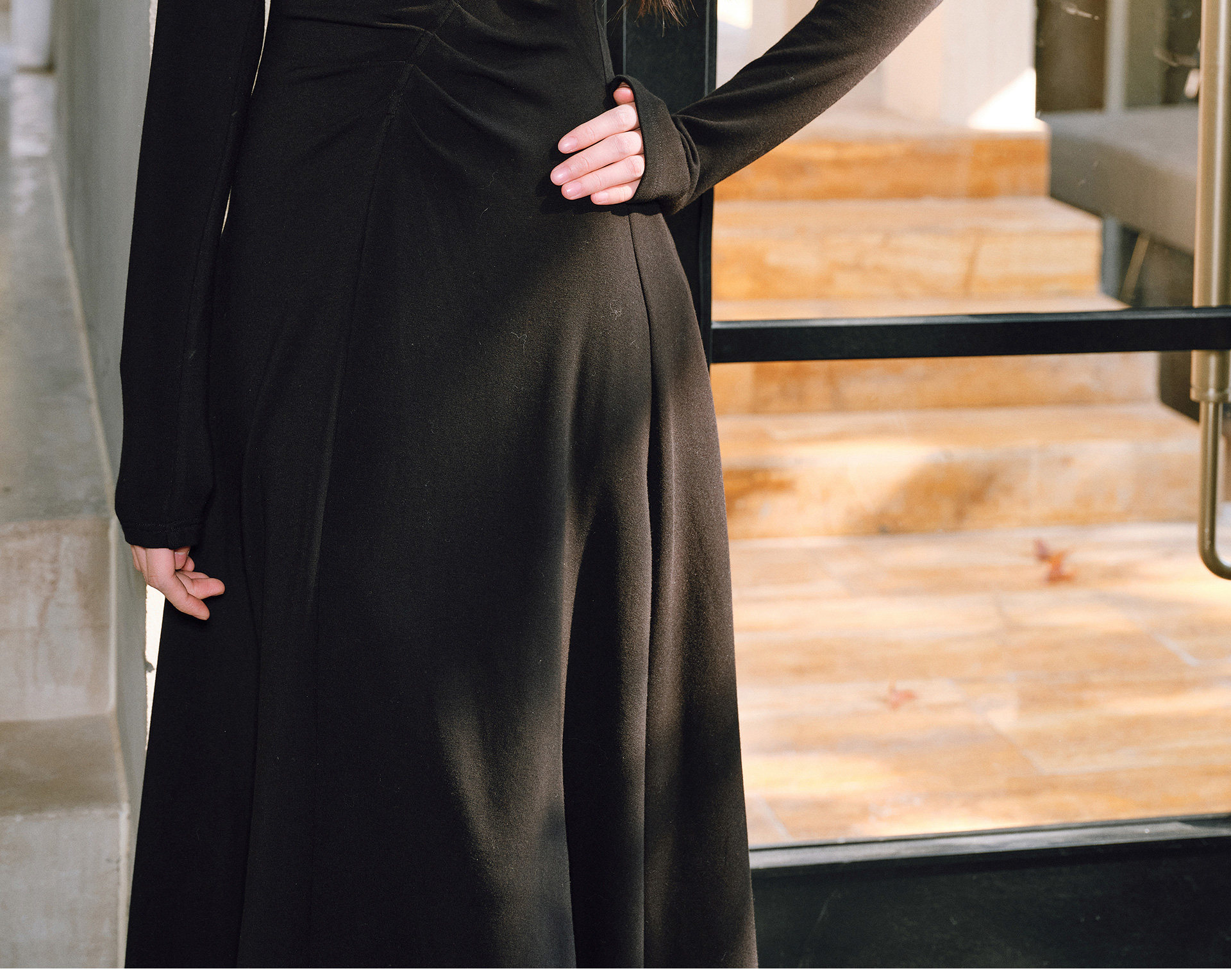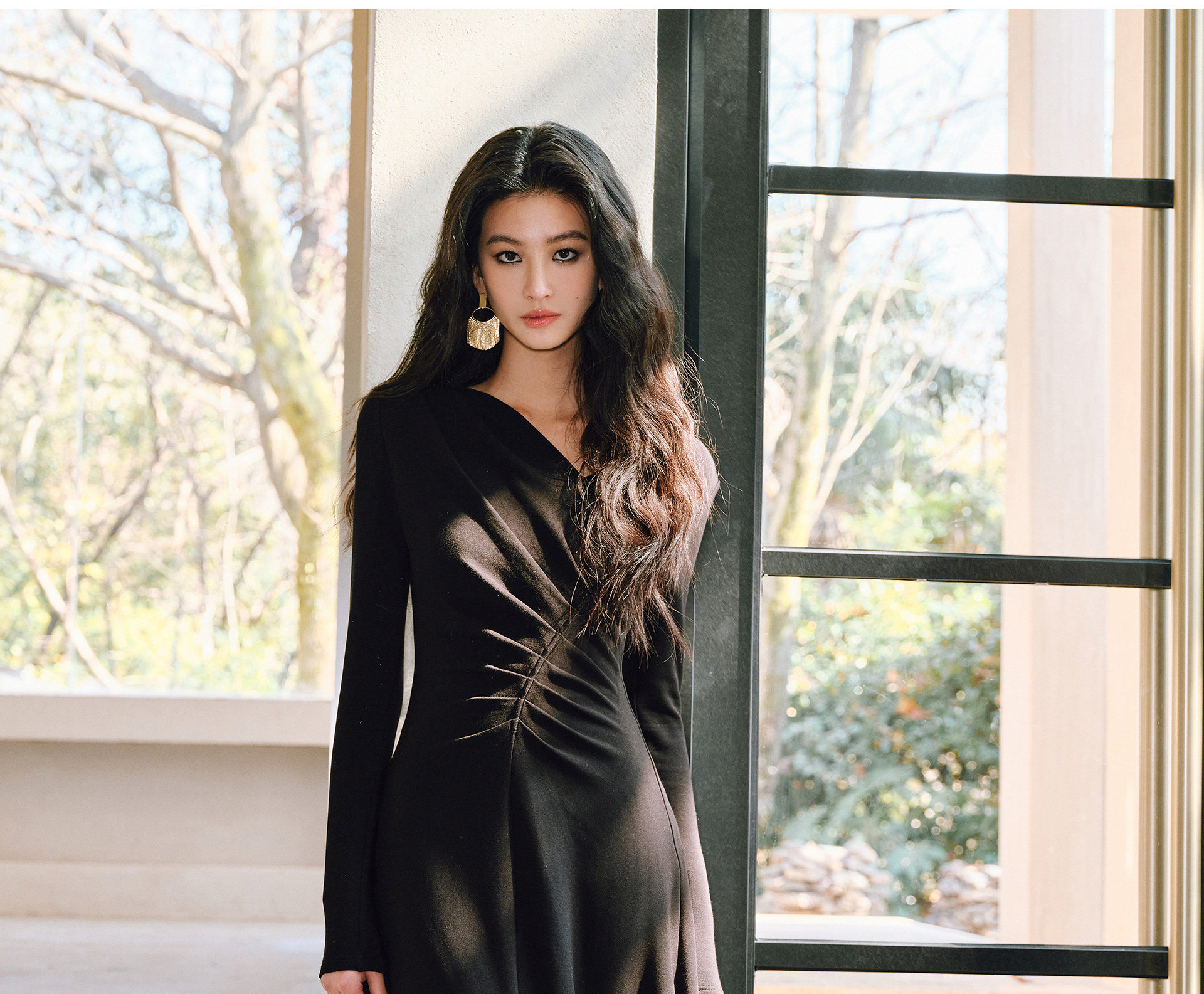 Wangxo|Luxurious Soft Knit Material|Artistic Sculptural Pleats|Overlapping V-Neck Tailored Slim-Fit A-Line Dress