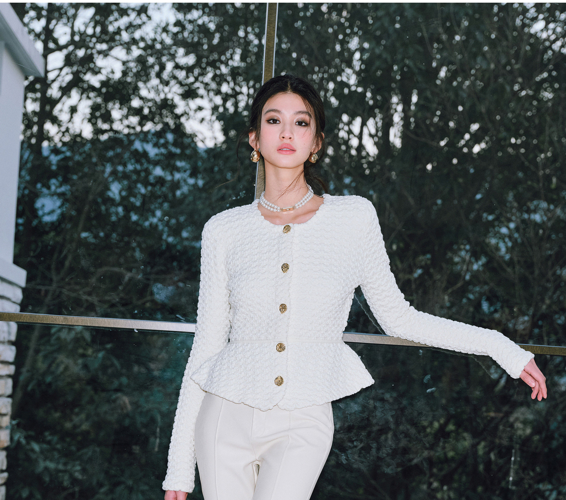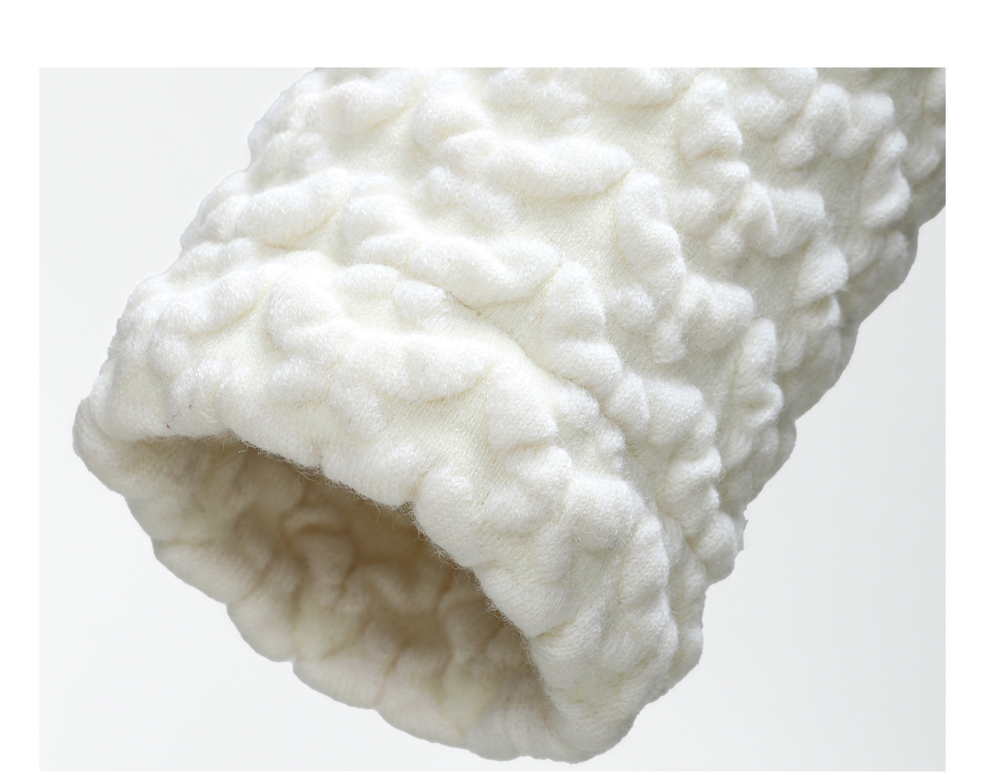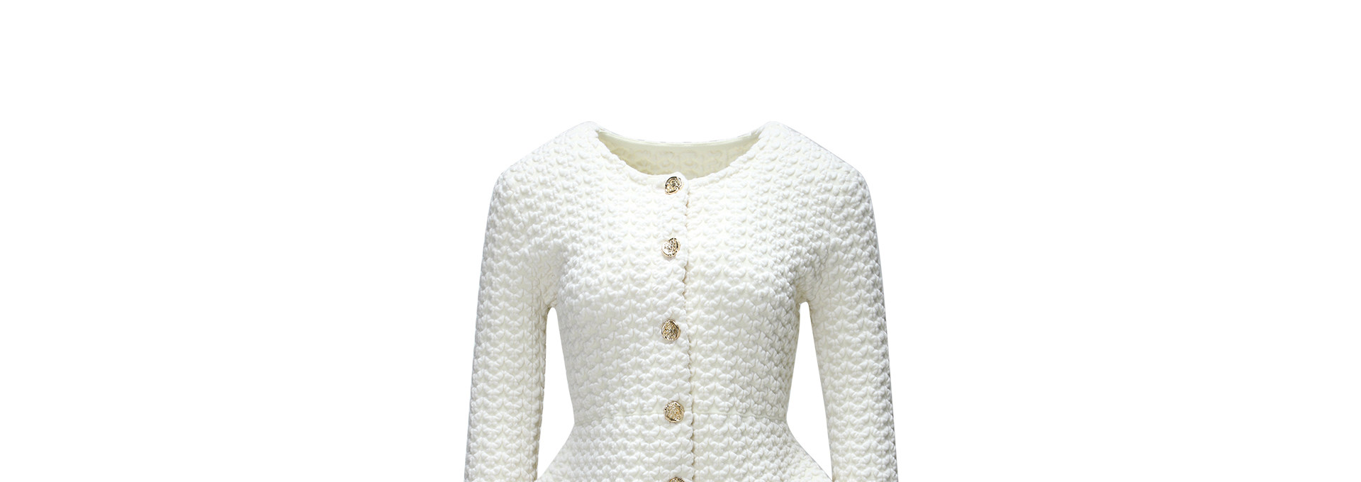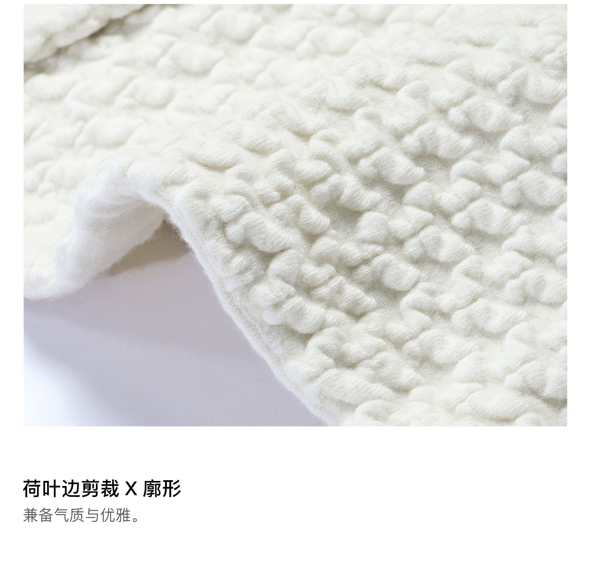 Wangxo | Luxurious Wool Heavy Industry Butterfly Embossed Texture | Vertical Cut Waist Ruffled Short Round Neck Top