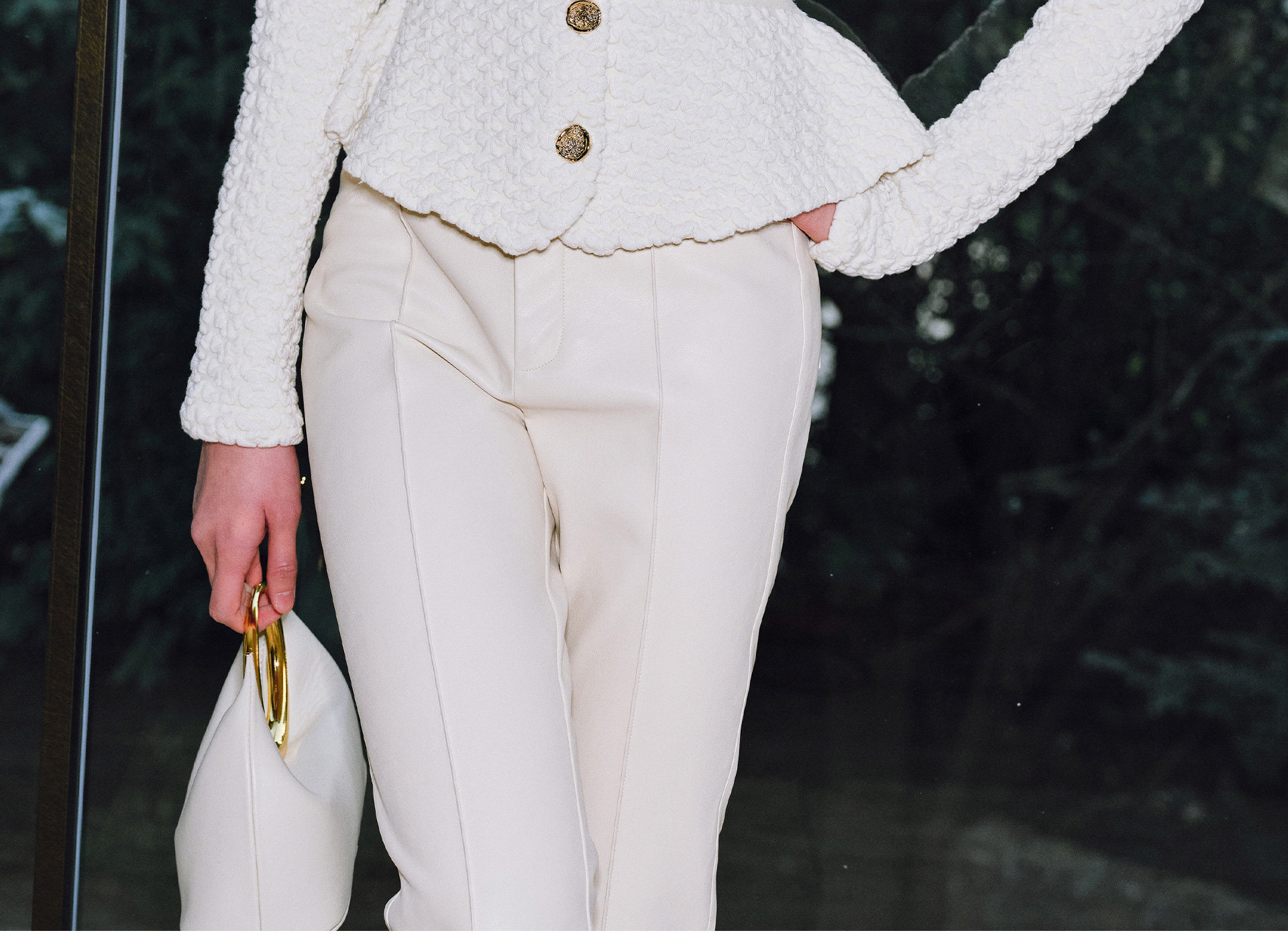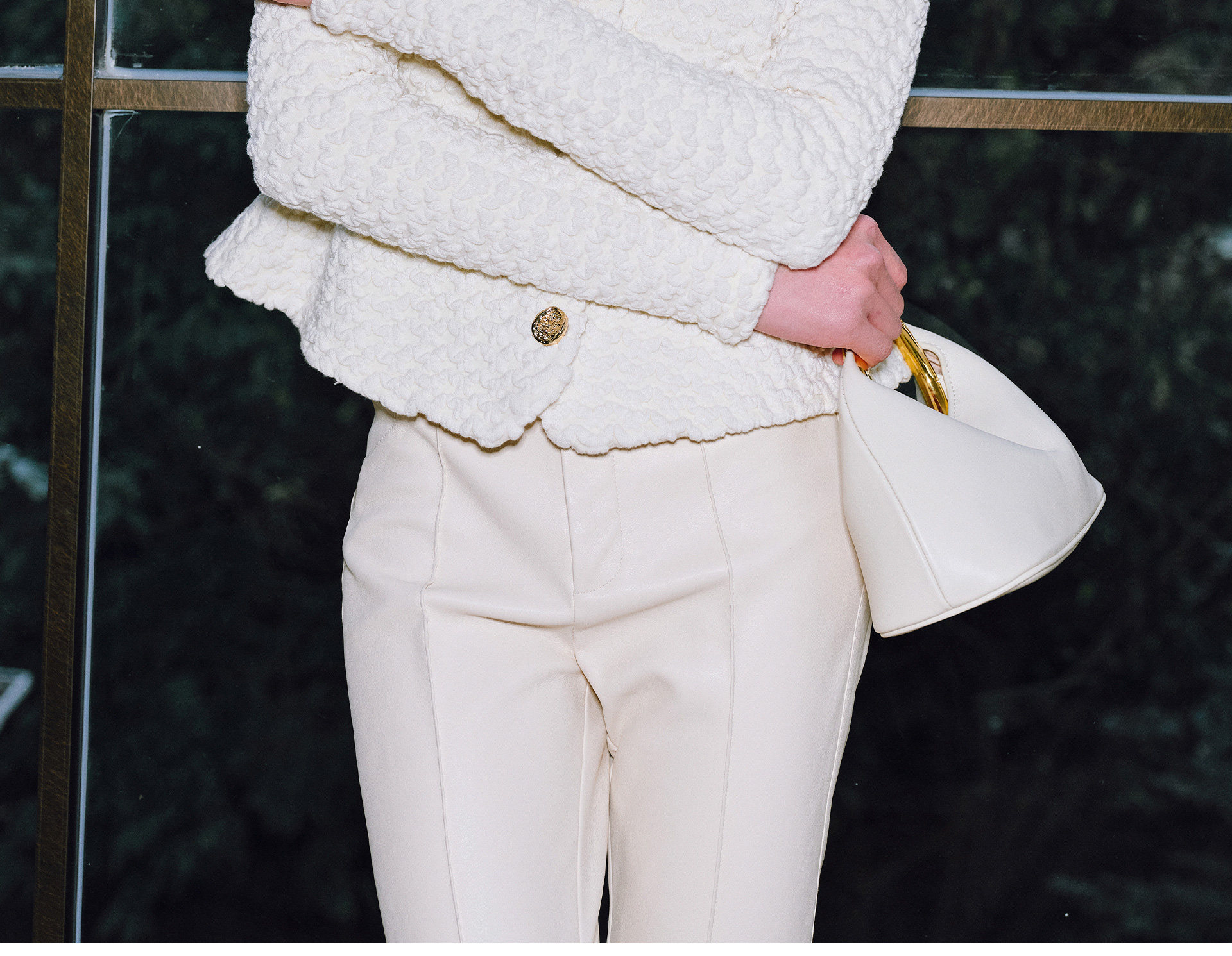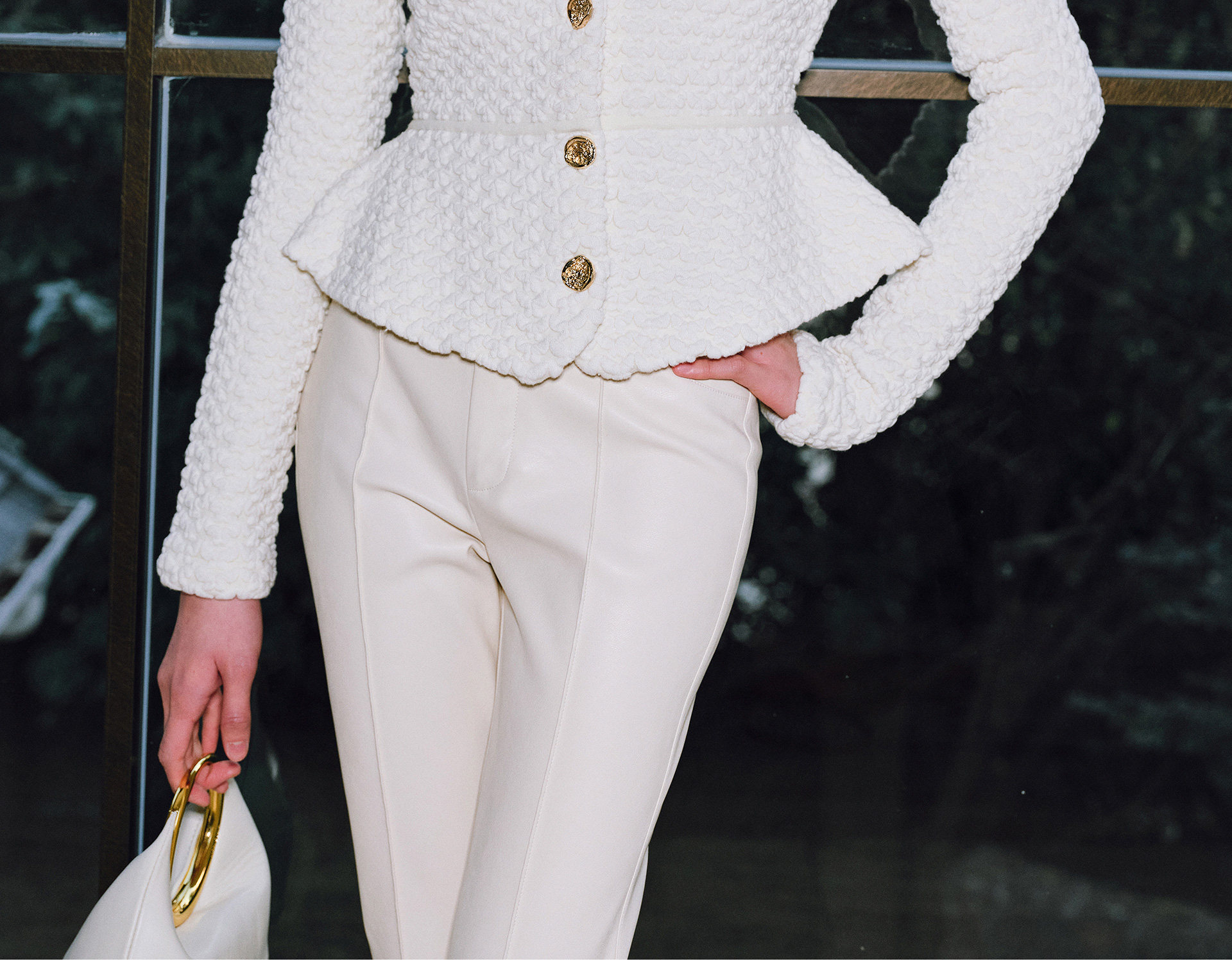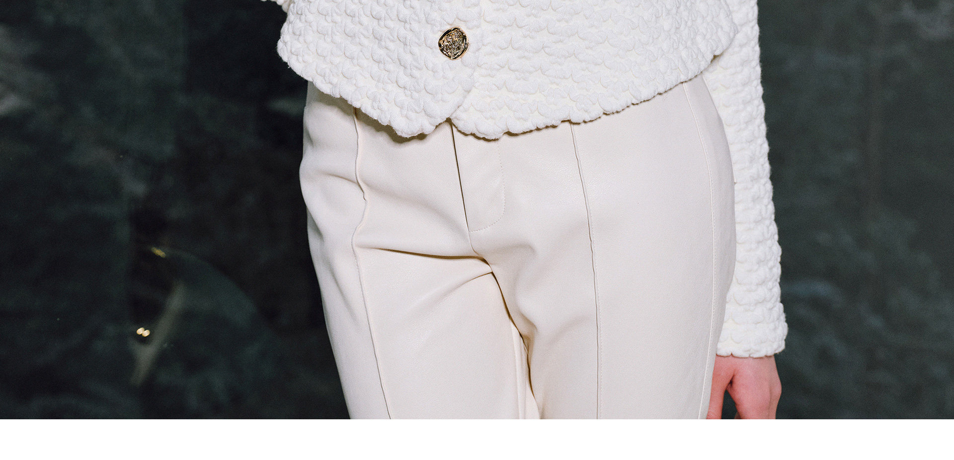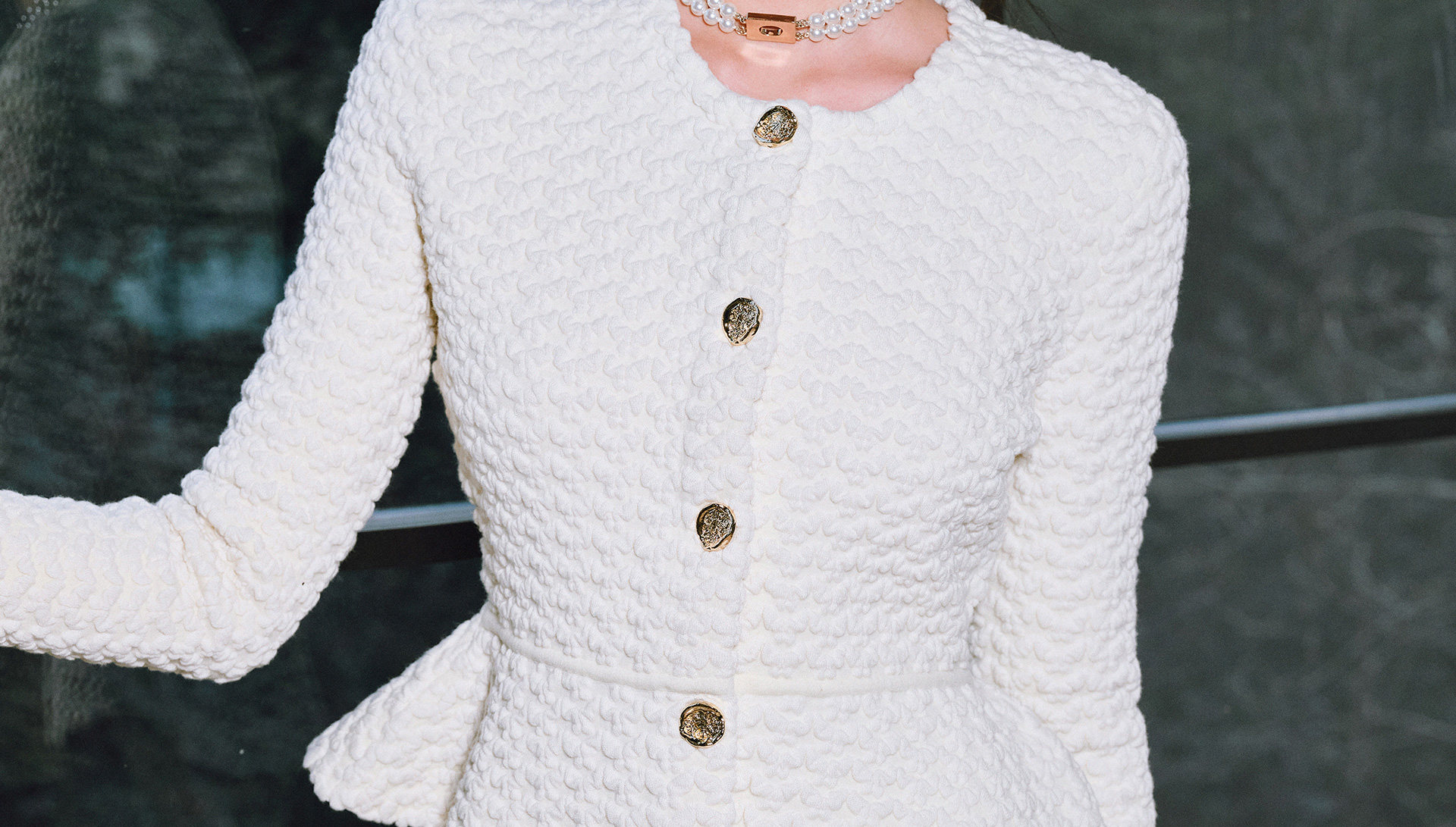 Wangxo | Luxurious Wool Heavy Industry Butterfly Embossed Texture | Vertical Cut Waist Ruffled Short Round Neck Top
