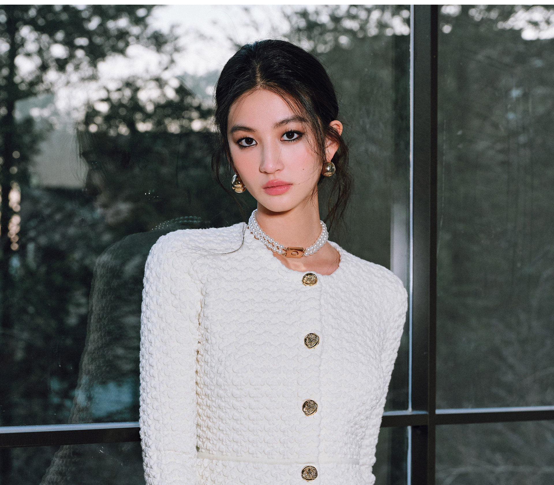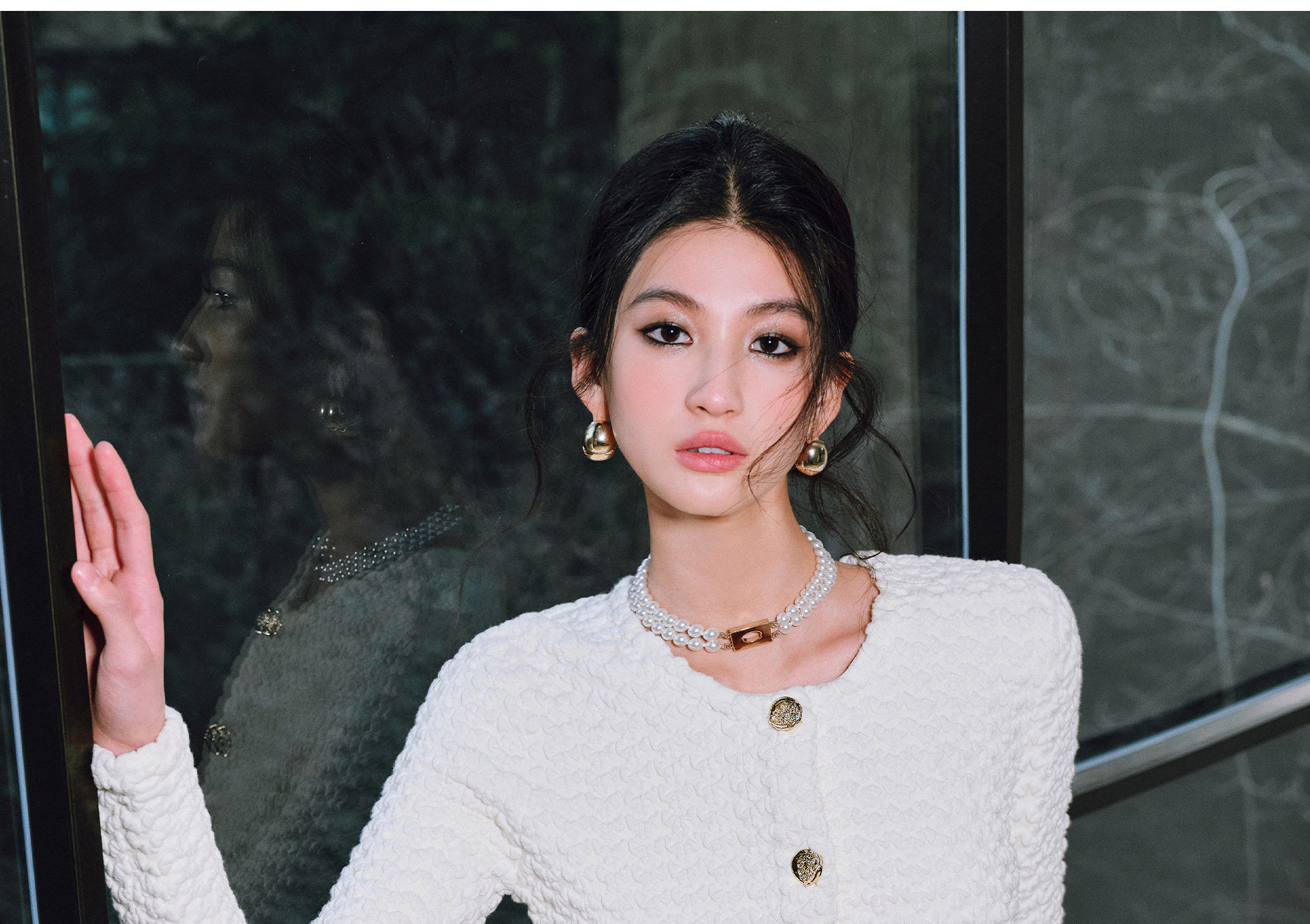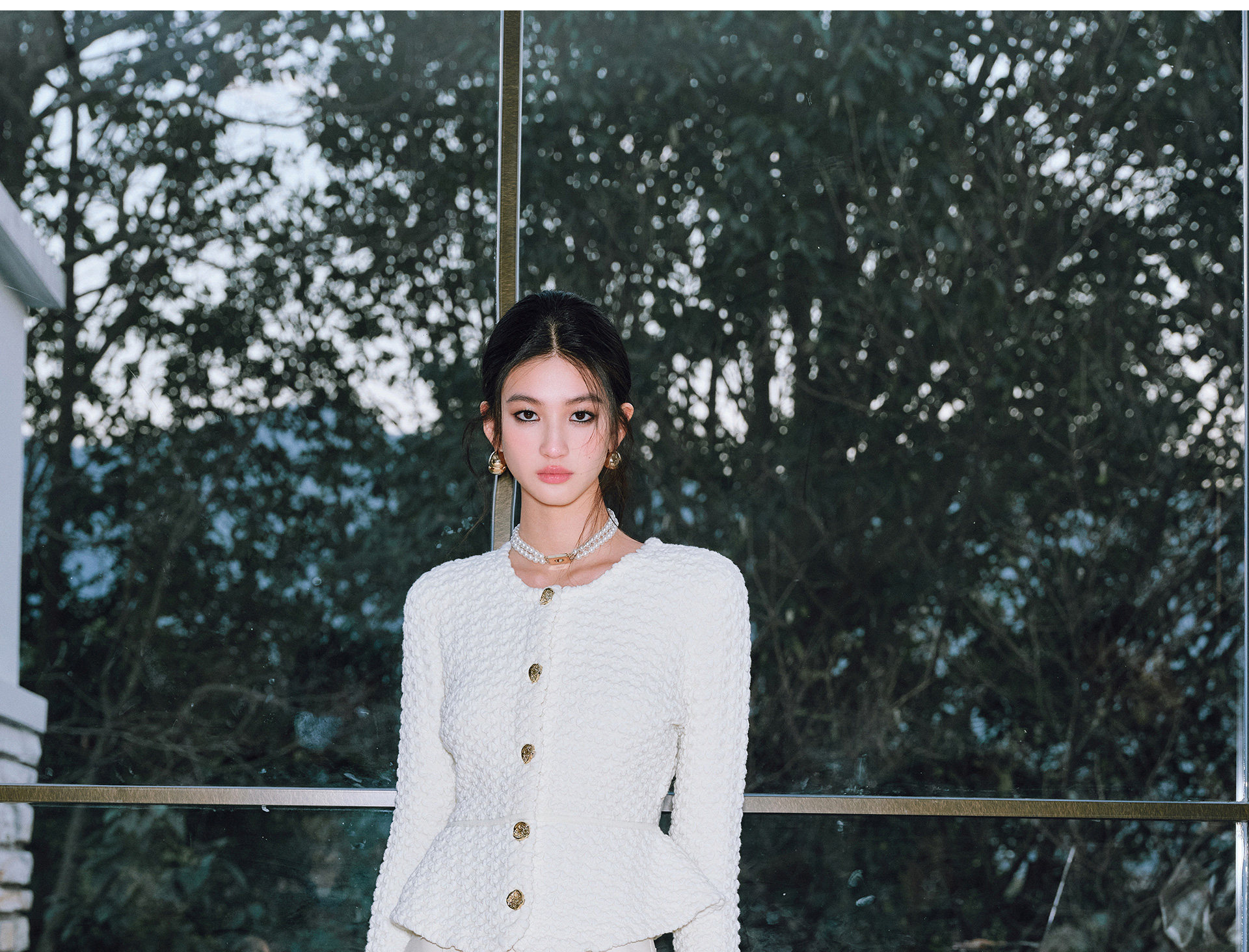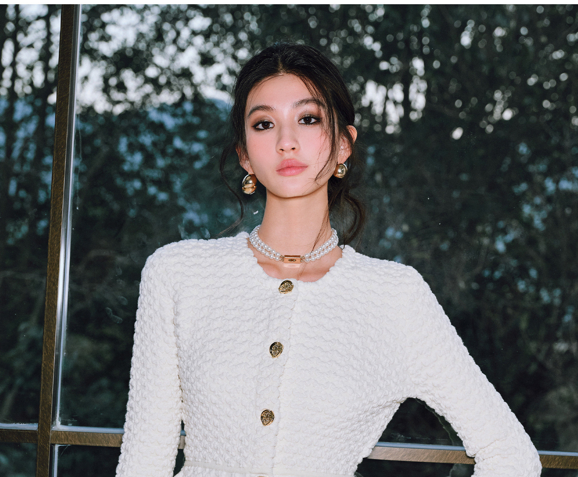 Wangxo | Luxurious Wool Heavy Industry Butterfly Embossed Texture | Vertical Cut Waist Ruffled Short Round Neck Top