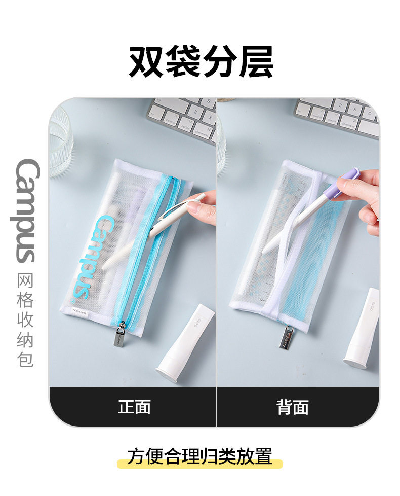 Пенал Kokuyo, японский бренд, с сетчатым дизайном, на двойной молнии, многофункциональная портативная сумка, дорожная сумка для хранения, свежий стиль.