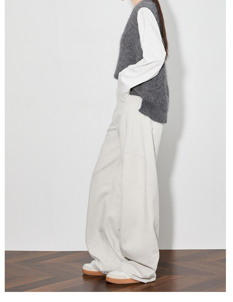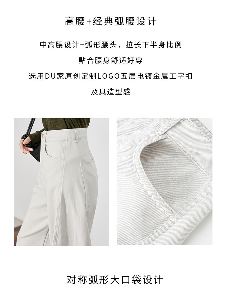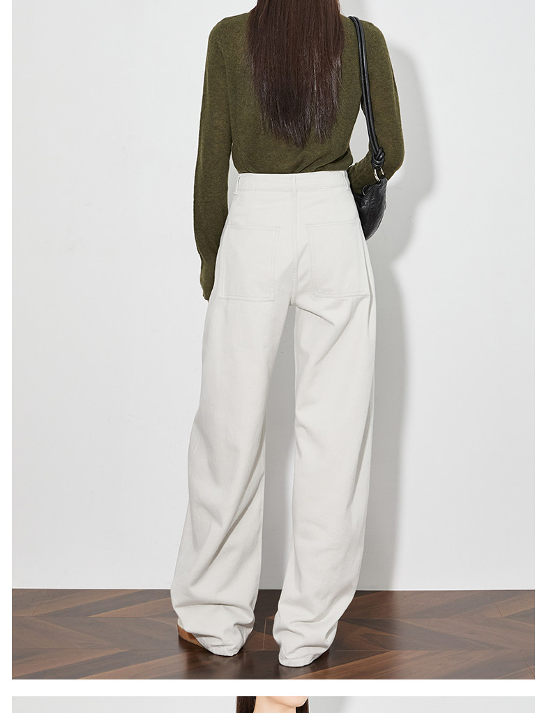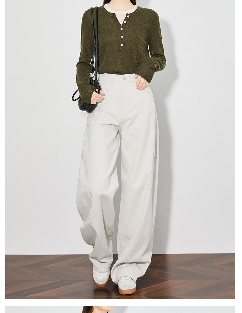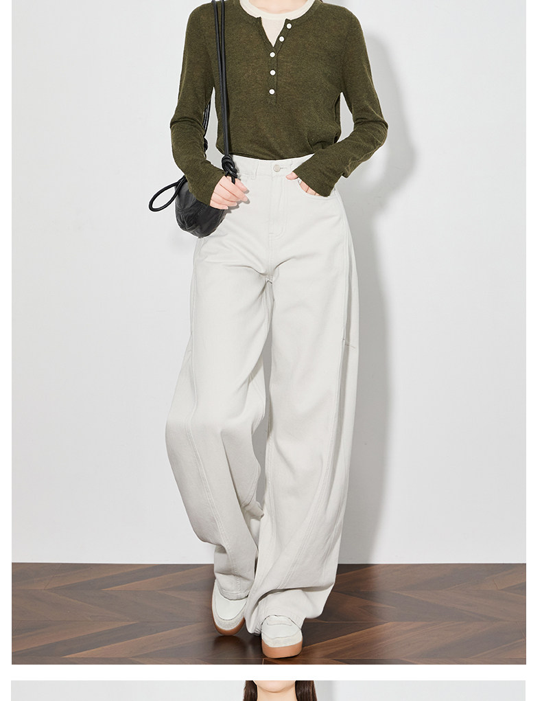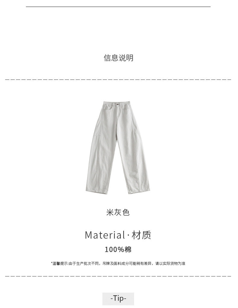 Les conseils de FAESSLIN vous étonneront. Jean pour femme en coton beige à taille haute, pantalon banane long et polyvalent à jambes larges.
