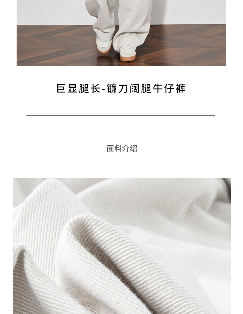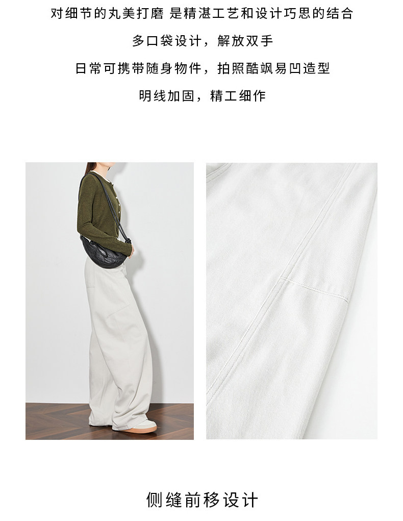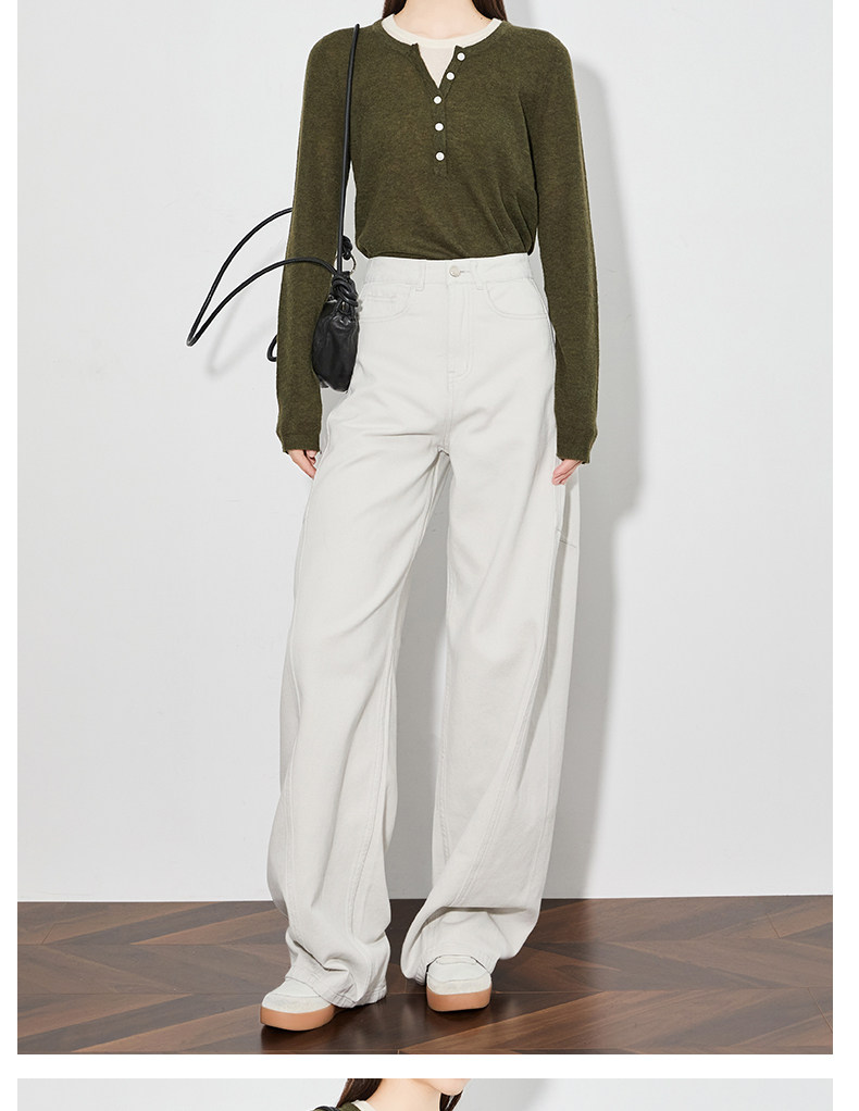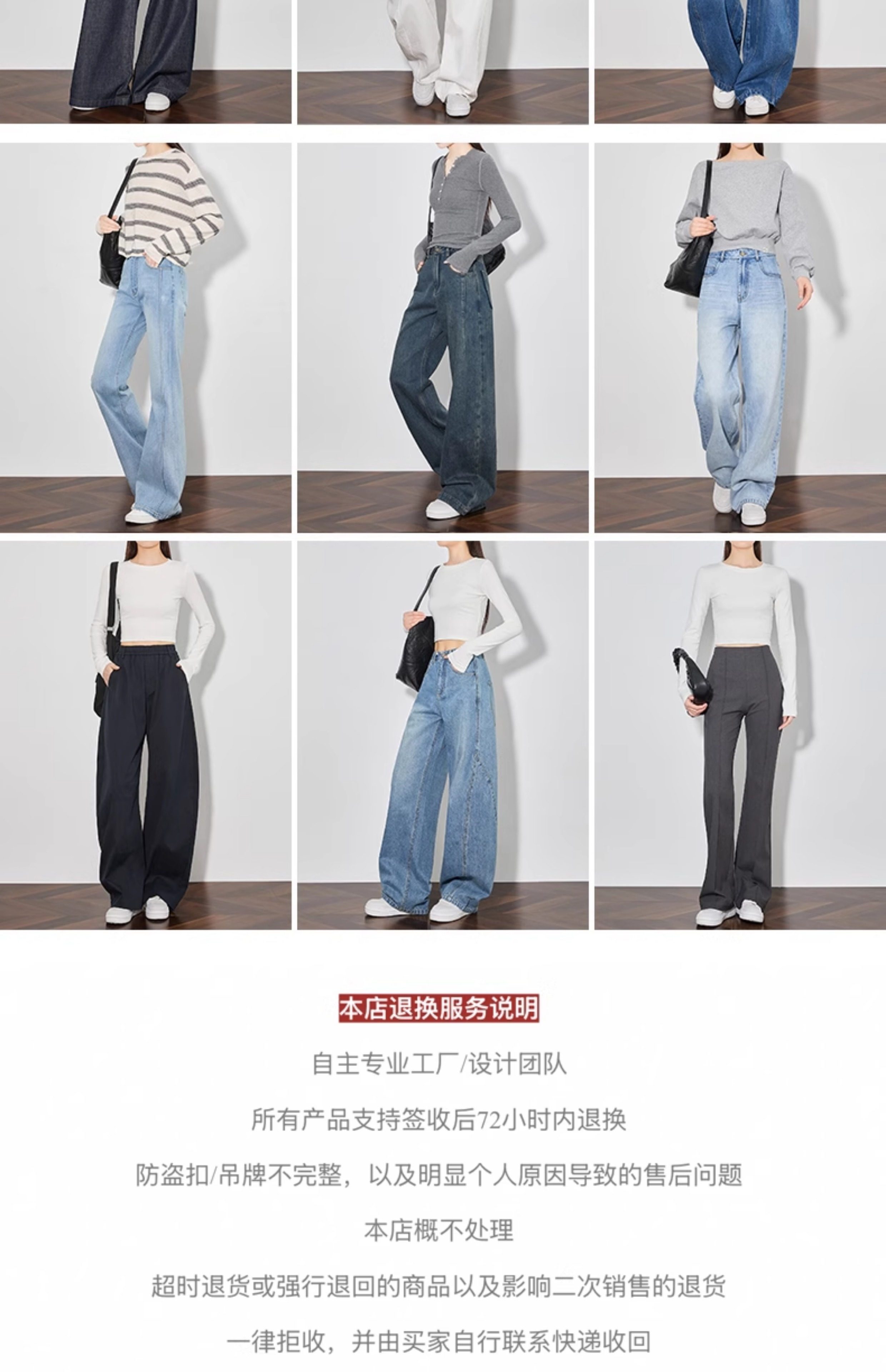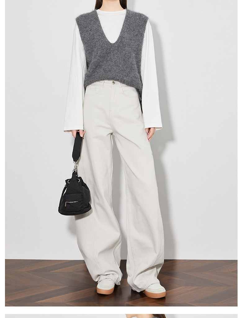 Les conseils de FAESSLIN vous étonneront. Jean pour femme en coton beige à taille haute, pantalon banane long et polyvalent à jambes larges.