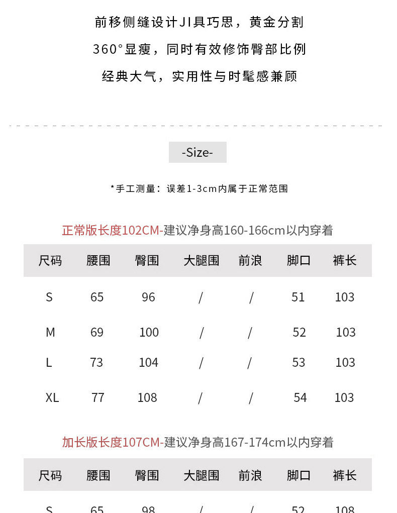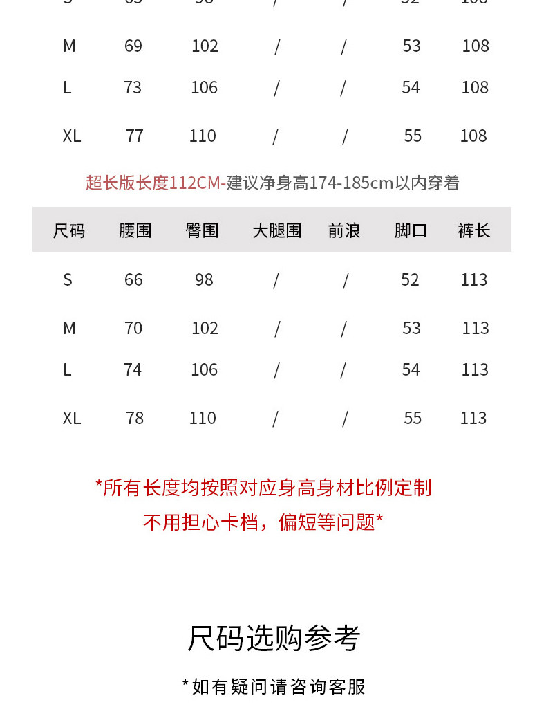 Outseam (cm) 99 cm 101.5 cm 104 cm 106.5 cm 109 cm