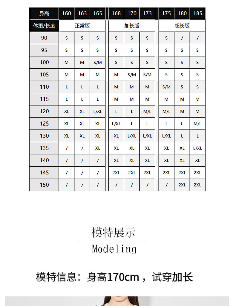 China (cm) 160-165/84-86 165-170 / 88-90 167-172 / 92-96 168-173 / 98-102 170-176 / 106-110