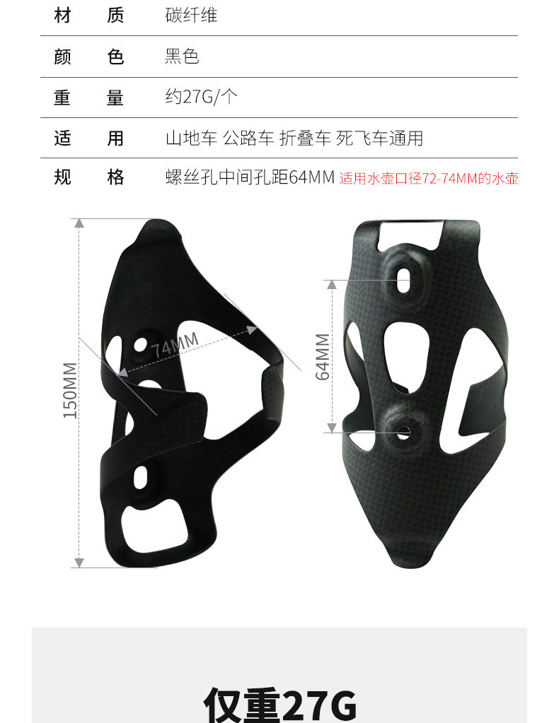 Hudud无标全碳纤维水壶架公路山地自行车3K单车水瓶托超轻水杯架