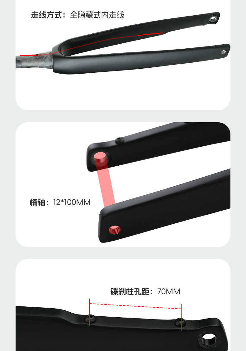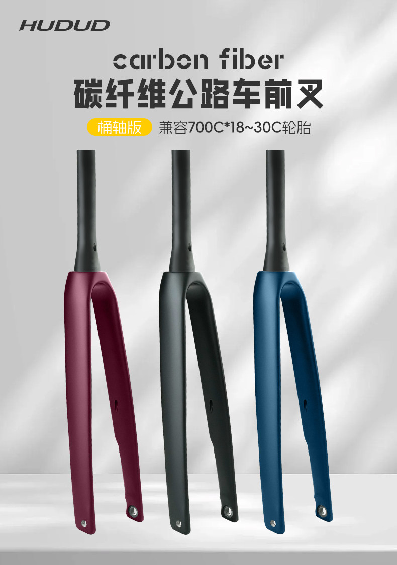 Hudud公路车全碳纤维前叉700C外内走线前叉100mm筒轴锥管碟刹R21