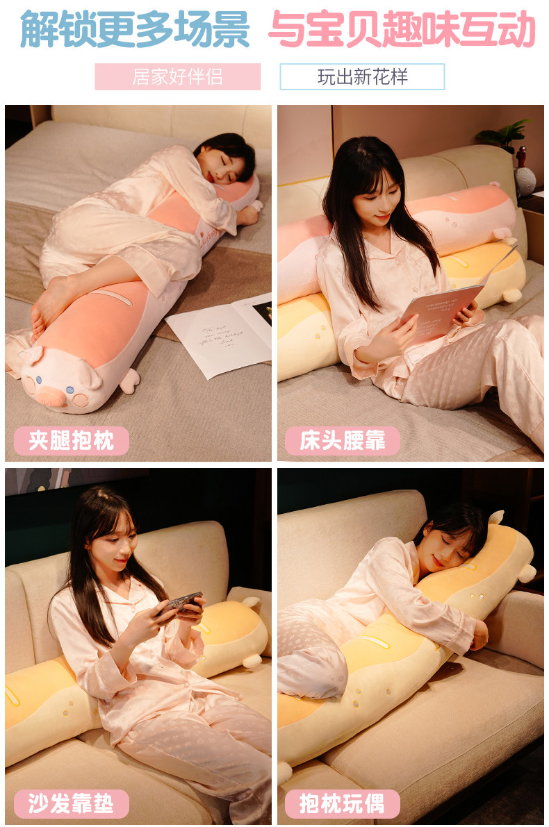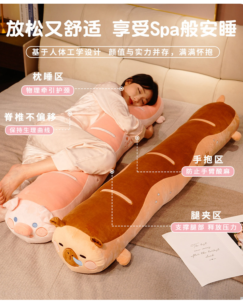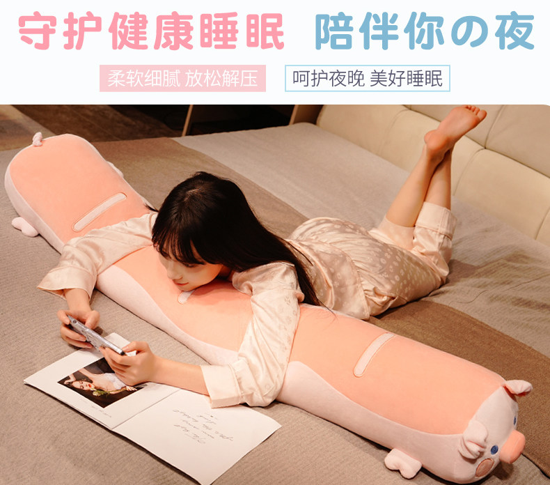 可爱猪猪毛绒玩具长条枕女生睡觉夹腿抱枕超软玩偶布娃娃生日礼物