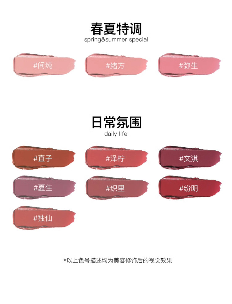 Sort by color NEW! New color! Jianzhen-warm fig,NEW! New color! New - milk cherry powder,NEW! New color! Haoying-Shrinking Meat Powder,NEW! New color! Huizhi-Qi and blood light brown,Christmas Limited Qiming-Nude Pink Milk Coffee,Christmas Limited Vicky-Retro Tomato,Best selling color for beginners Le Kui-Cinnamon Peach Tea,Best selling color for beginners Hatsumi-Burned Rose,The entry-level best-selling color Fujio-Higurashi brown coffee,The entry-level best-selling color Silk-Cheese Chestnut Paste,Spring and summer color Meng Xia-Thai nude powder,Spring and summer color Zhili-ebony rose,Contouring and Shrinking Color Kurimoto-Gray Mist Bitter Tea,Age-reducing nude/peach color Ogata-hazy peach,Limited Butterfly Aya-Morning Mist Mulberry,Atmospheric Color Wusheng-Soft Mist Cold Berry,Atmospheric Color Yingfan-Fig Puree,Brighten and expand color Cicada Sakura-Spring Late Sakura,Spring and summer limited edition Xiying-Blazing Orange,Spring and summer limited edition Hanyin-very low ice blue,Crystal Limited Suying-Rose Nude Powder,Crystal Limited Wagyu-Mist Naked Apricot,Crystal Limited Early Temperature-Hong Kong Style Red Brown,Hanikezi's same style Jieying-grapefruit naked orange,Chengdong Limited Shile-Water Powder and Peony,Chengdong Limited Suitong-Dead Leaves Pink Brown