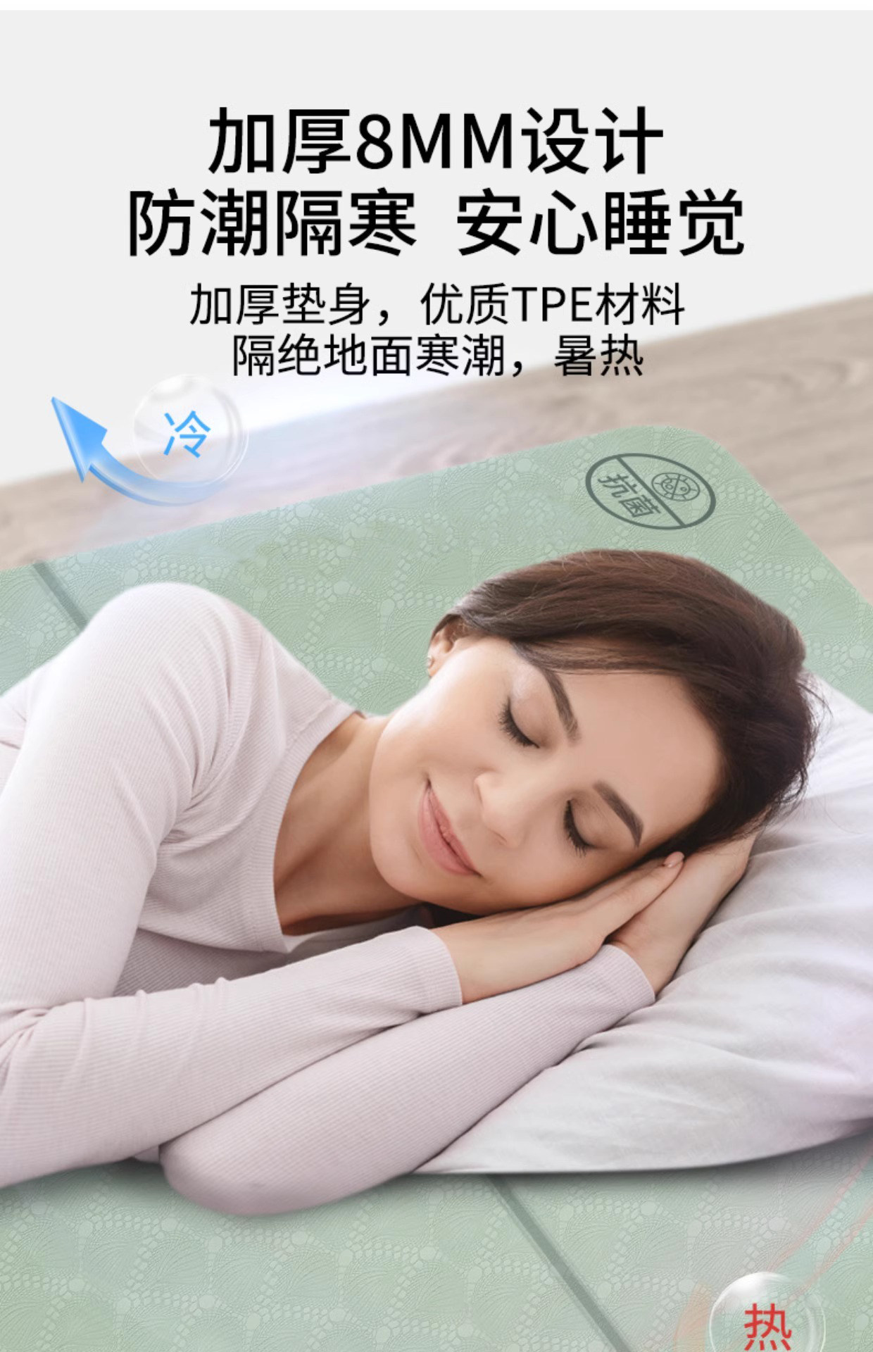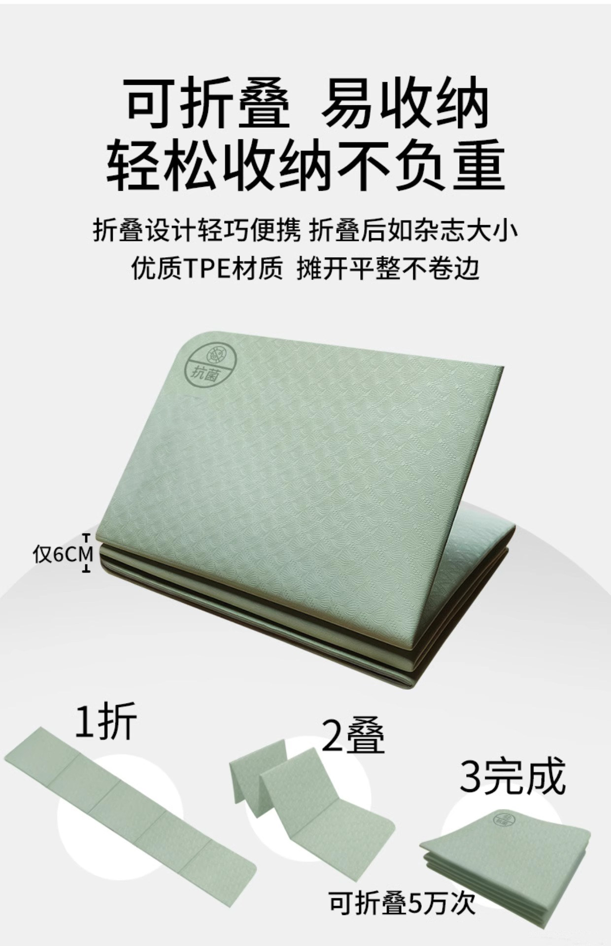 Diwonor Yogamatte, faltbar, tragbar, leicht, für Zuhause, antibakteriell, rutschfest, Fitness, verdickte Büro-Schlafmatte