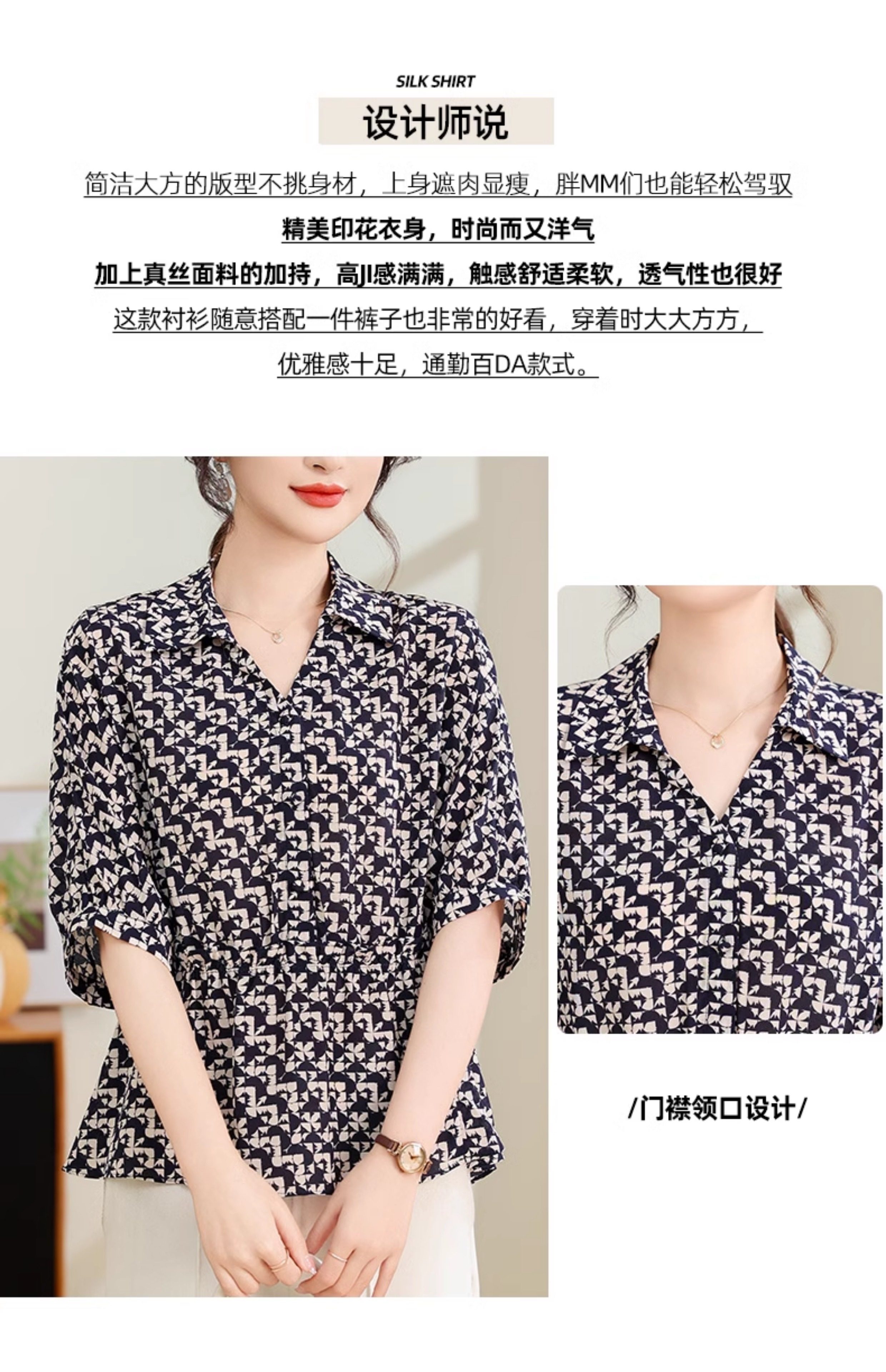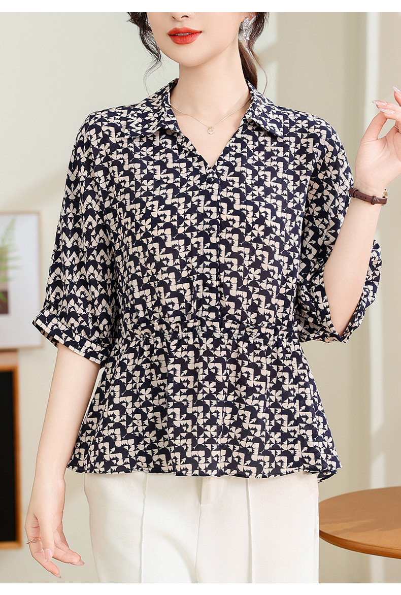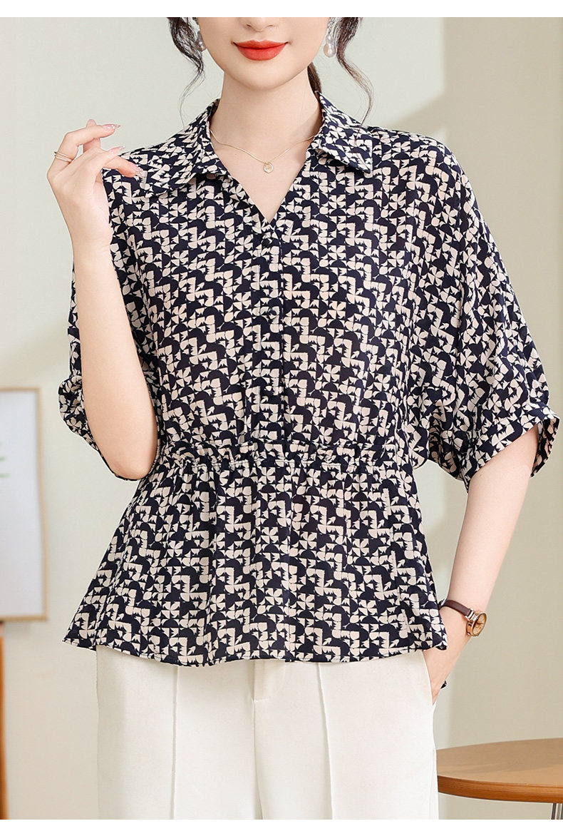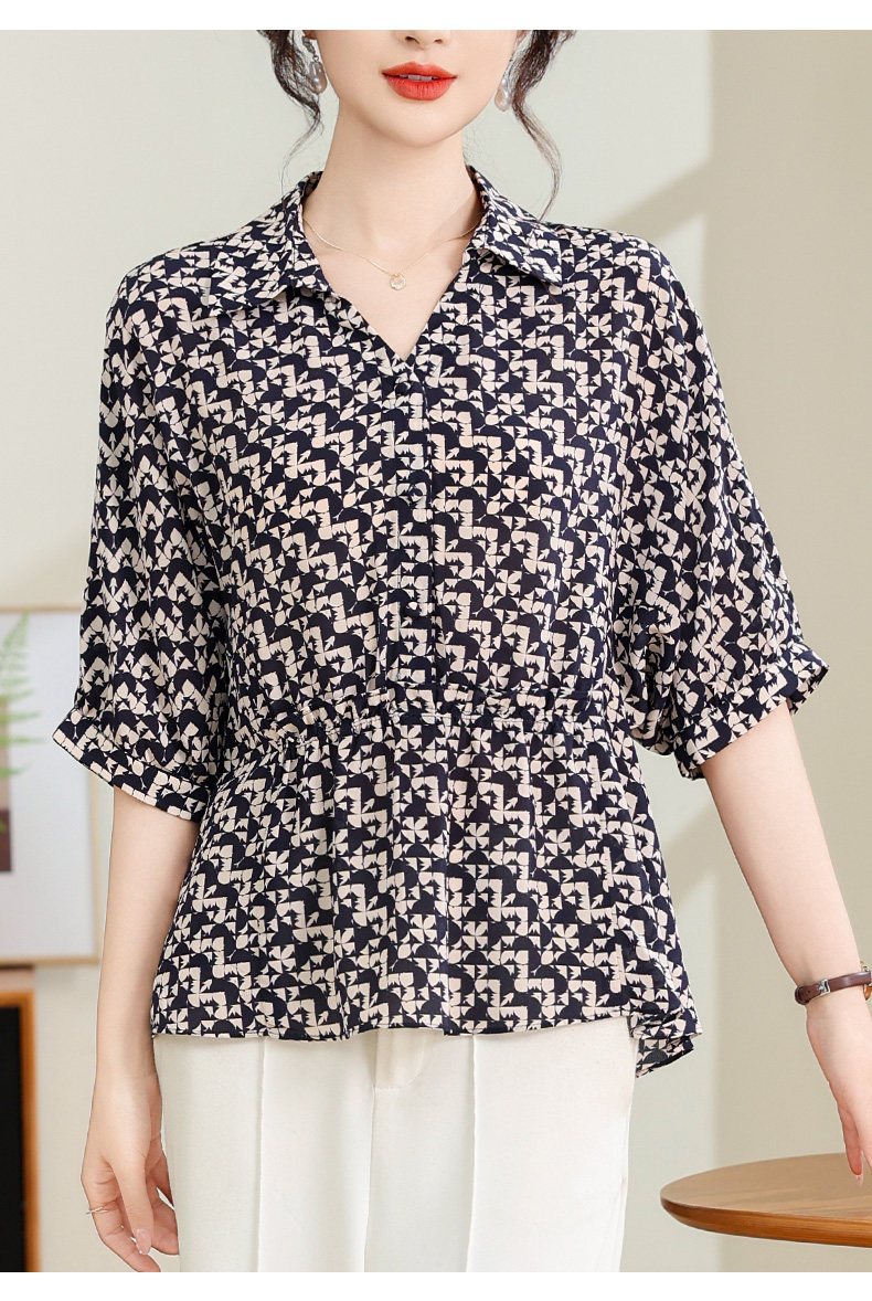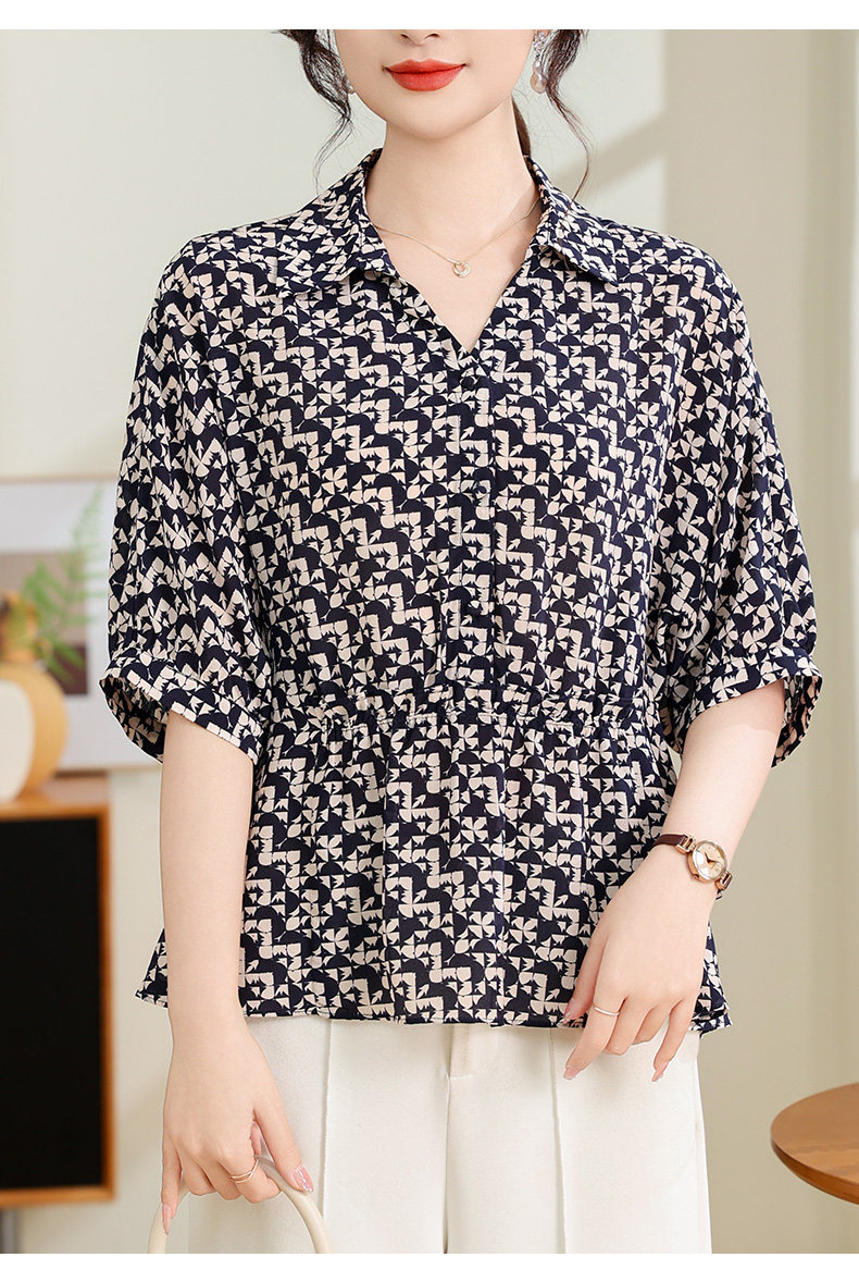 Silk Shirt Women's High-End T-Shirt Top New Style Waist Skirt Small Shirt Mother's Age-Reducing Belly-Covering Floral Floral