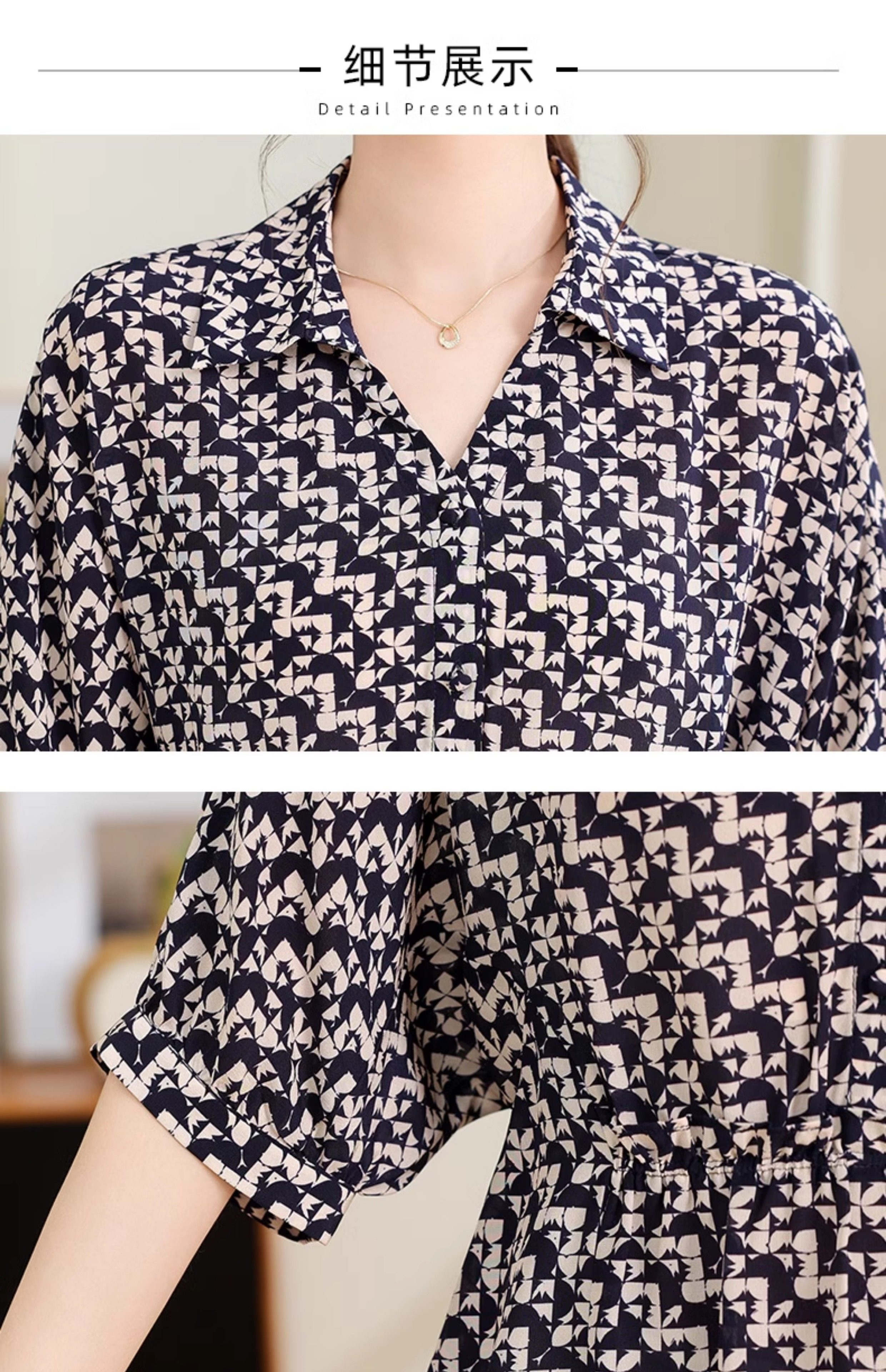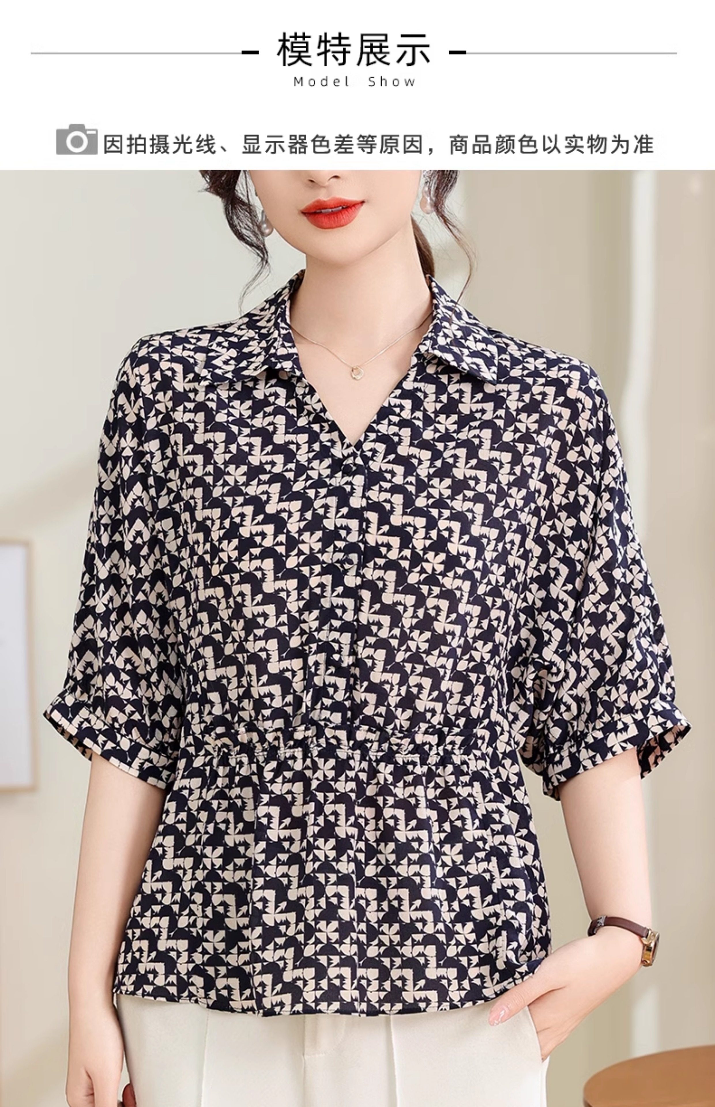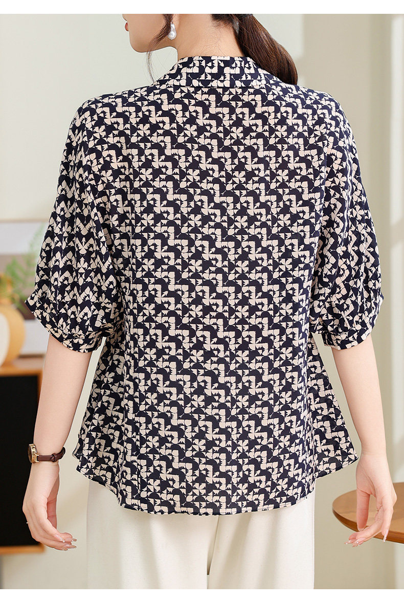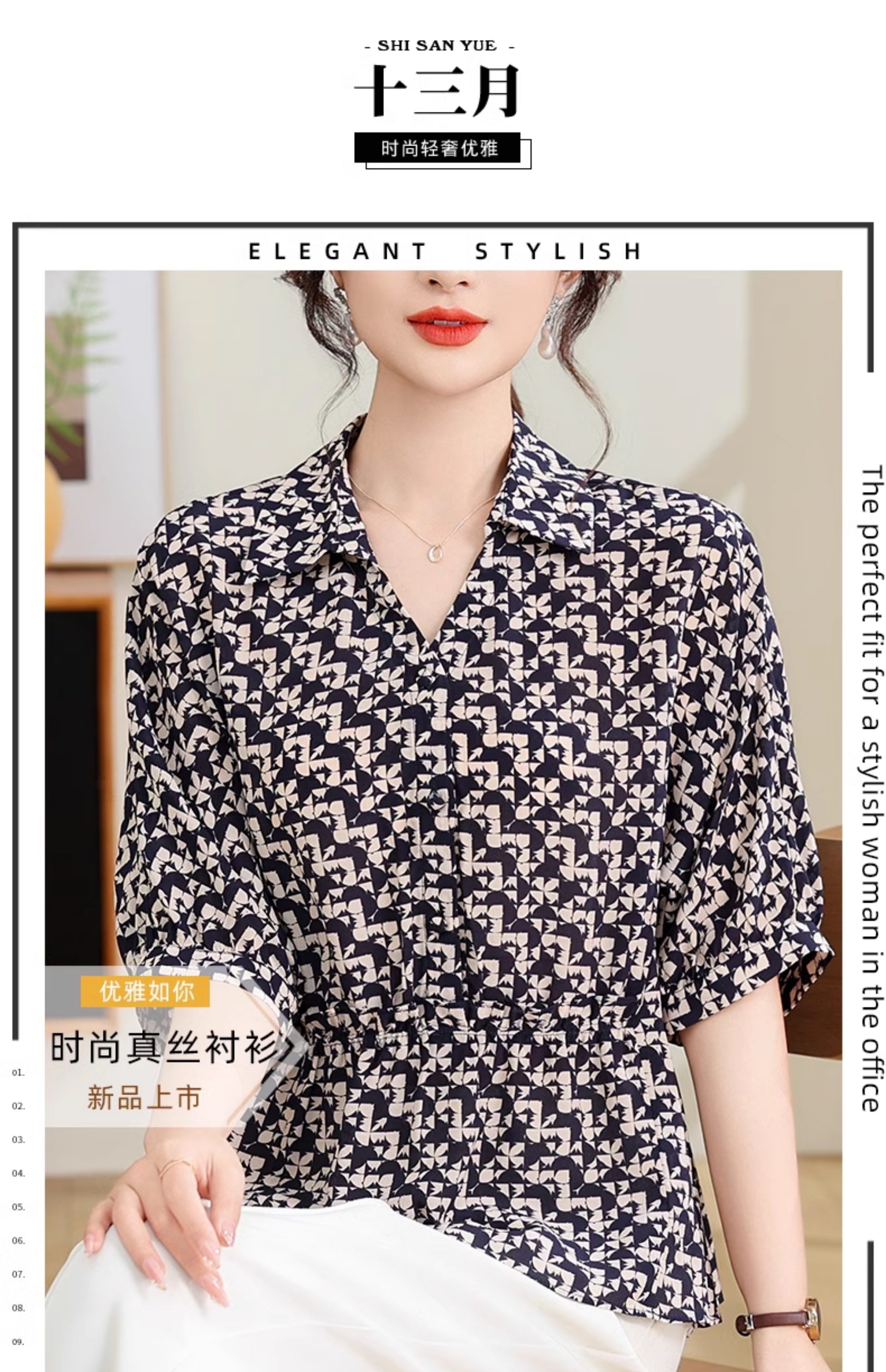 Silk Shirt Women's High-End T-Shirt Top New Style Waist Skirt Small Shirt Mother's Age-Reducing Belly-Covering Floral Floral