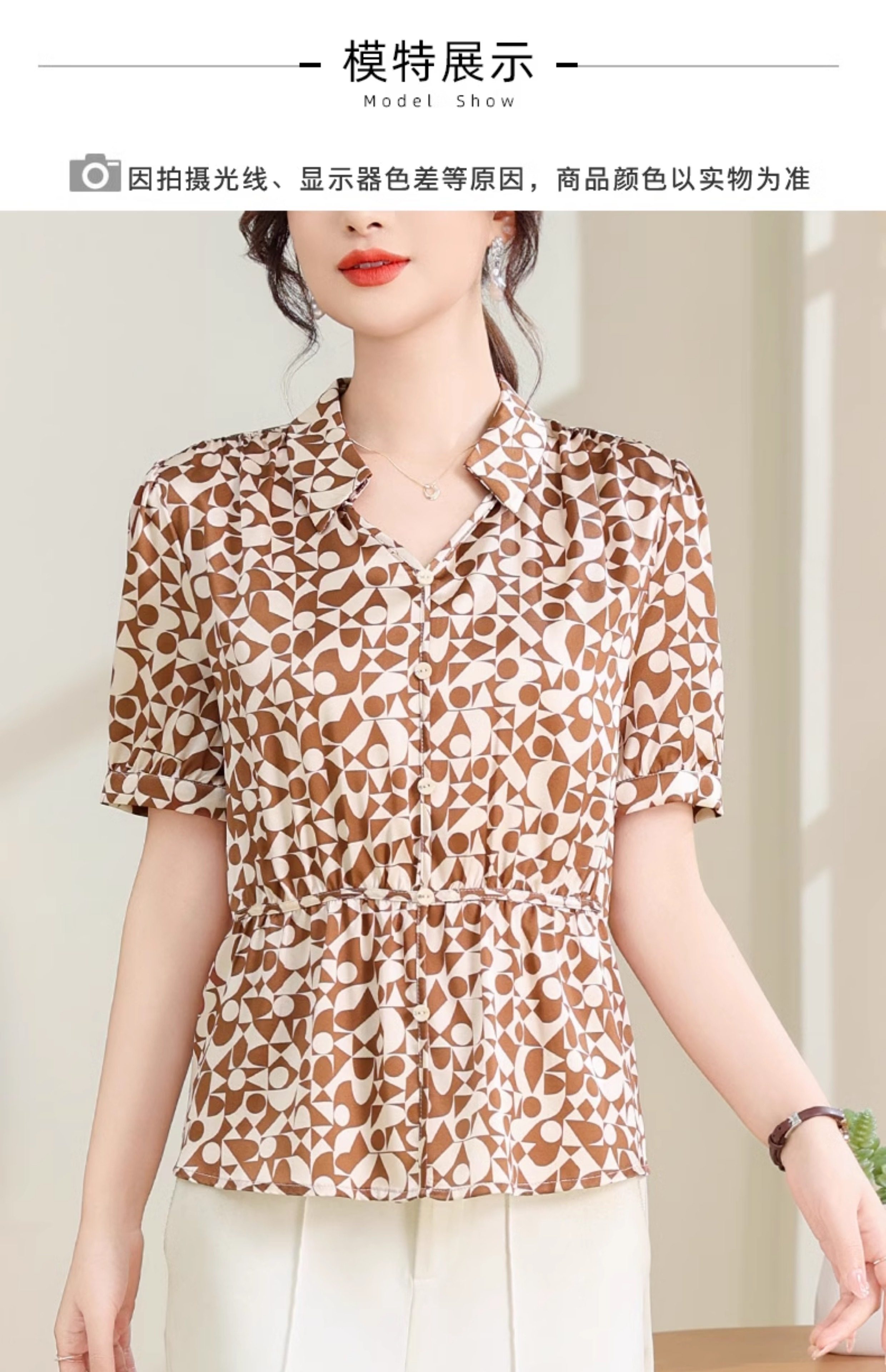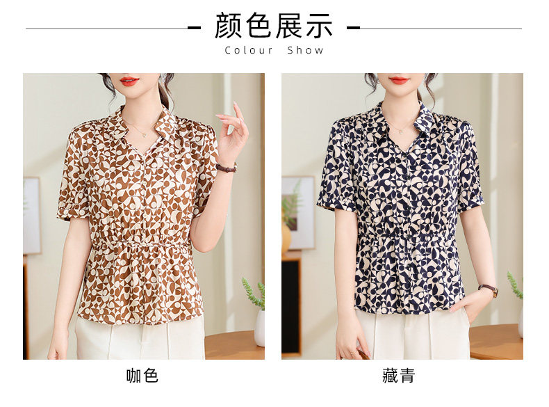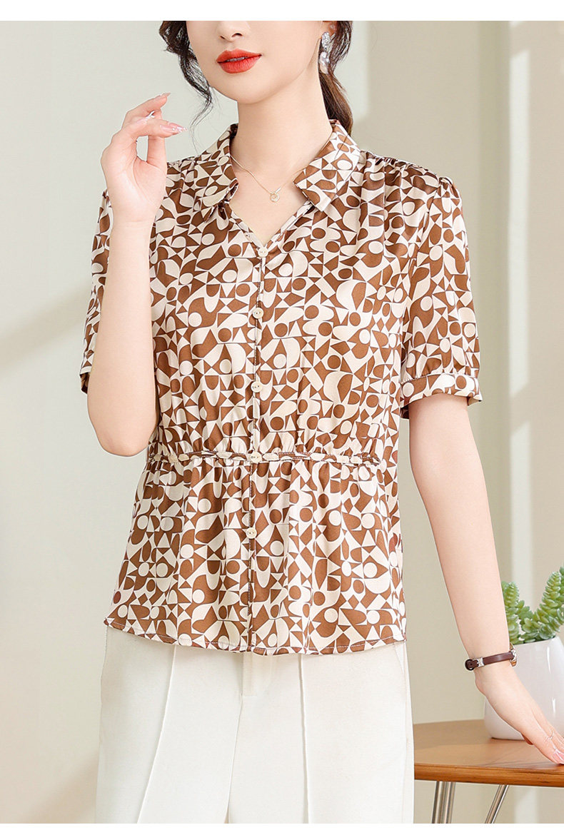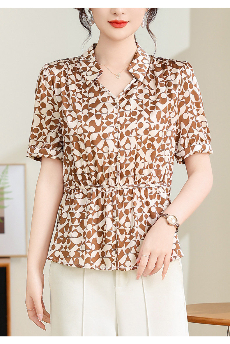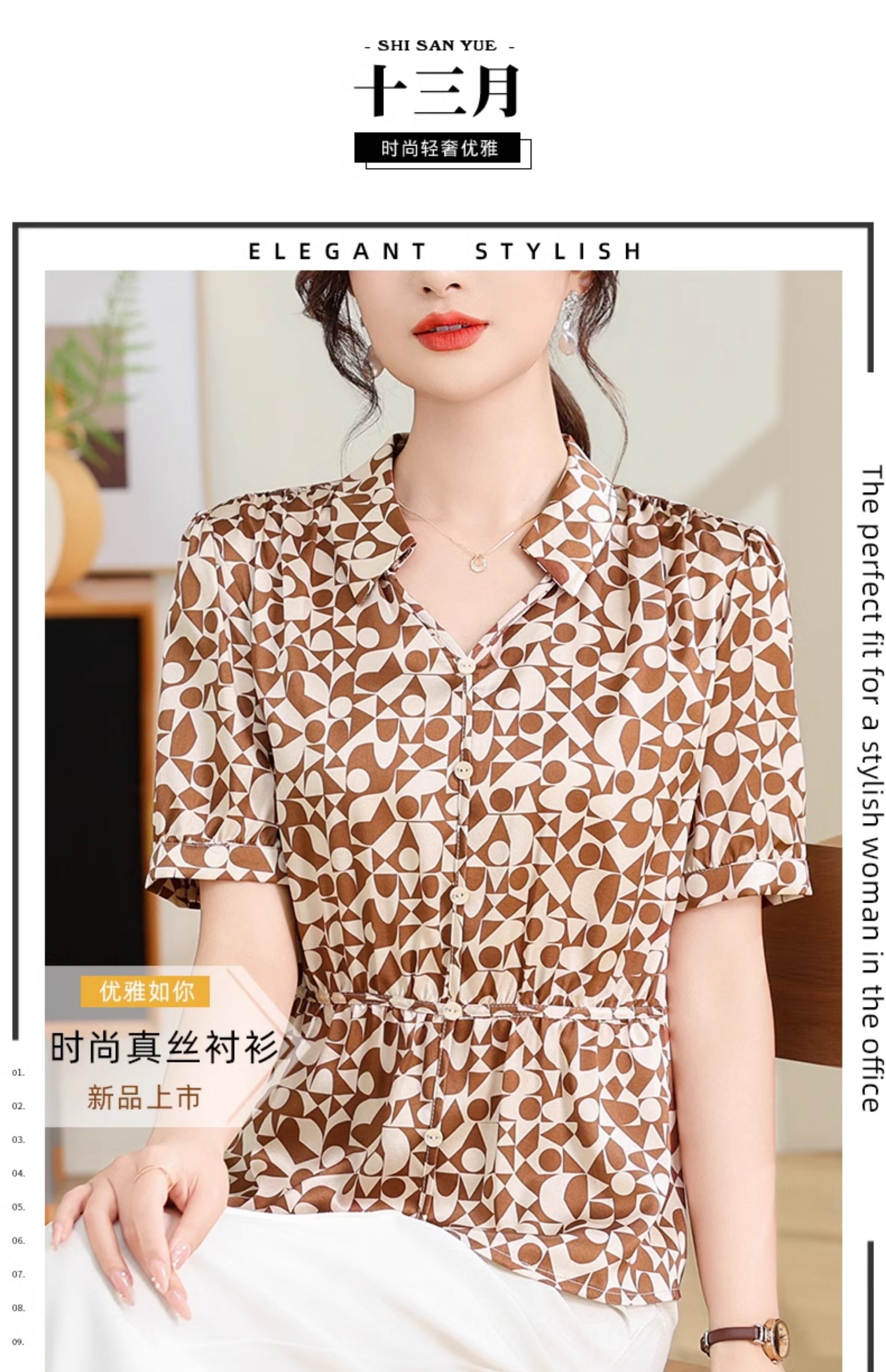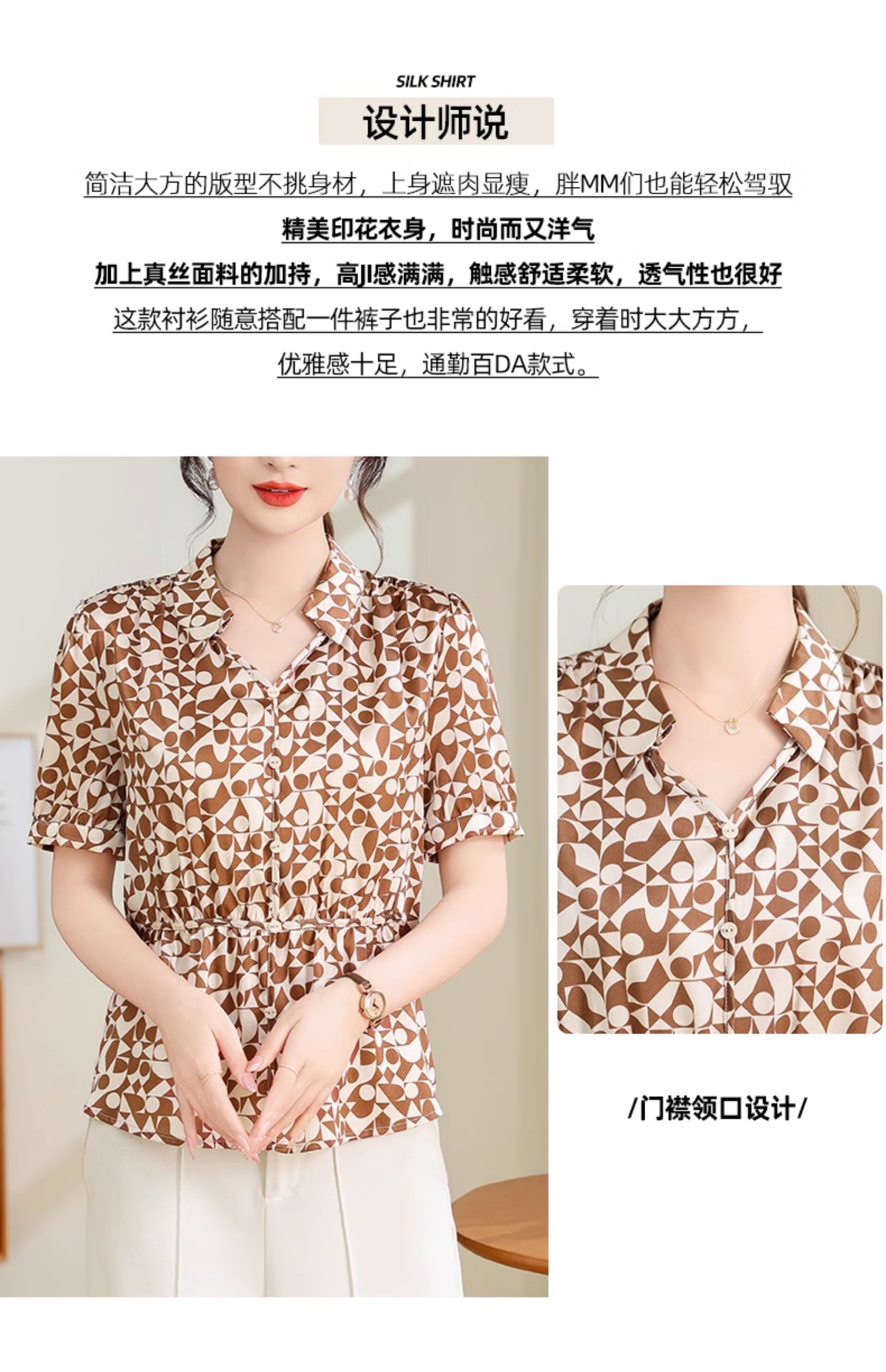 Heavyweight Silk Shirt for Women, Short-Sleeved, 2025 Summer New Style, Mother's Wear, Elegant Retro Print, Mulberry Silk Top