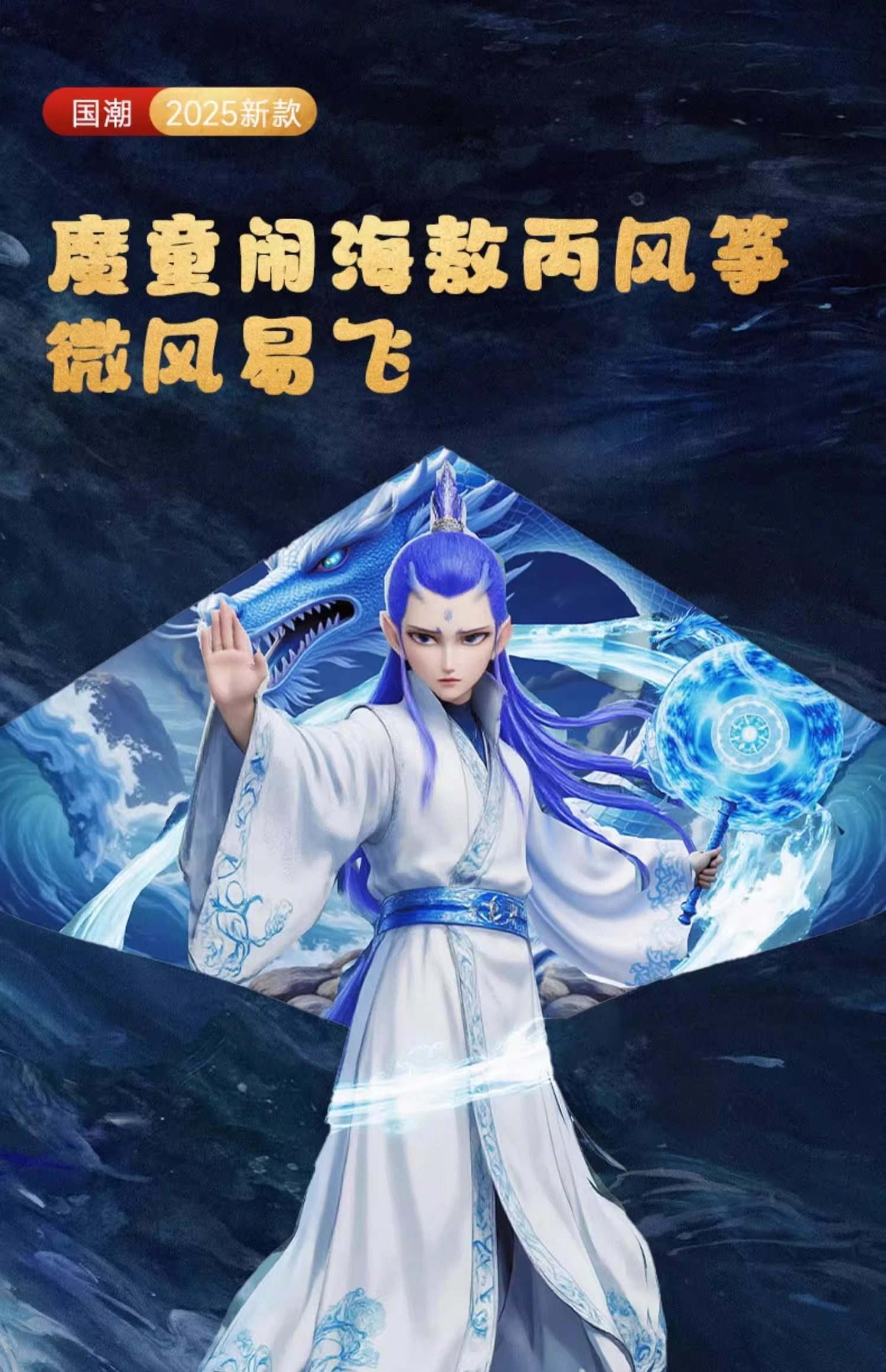 Ao Bing Kite Nezha Magic Child Rides the Sea New Model 2026 Children's Easy-To-Fly Kite Weifang Lotus Cake Cartoon Handheld Internet Sensation