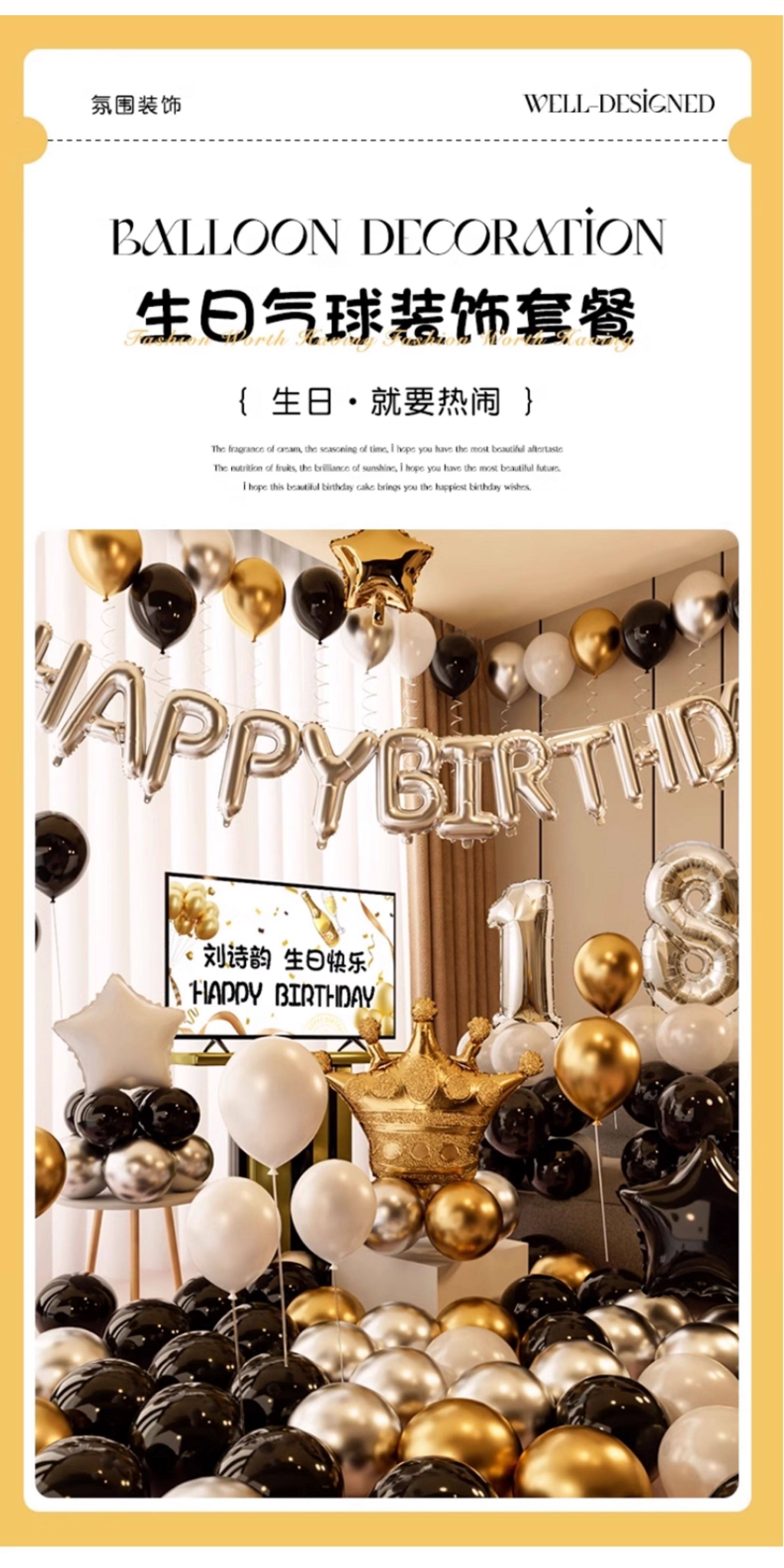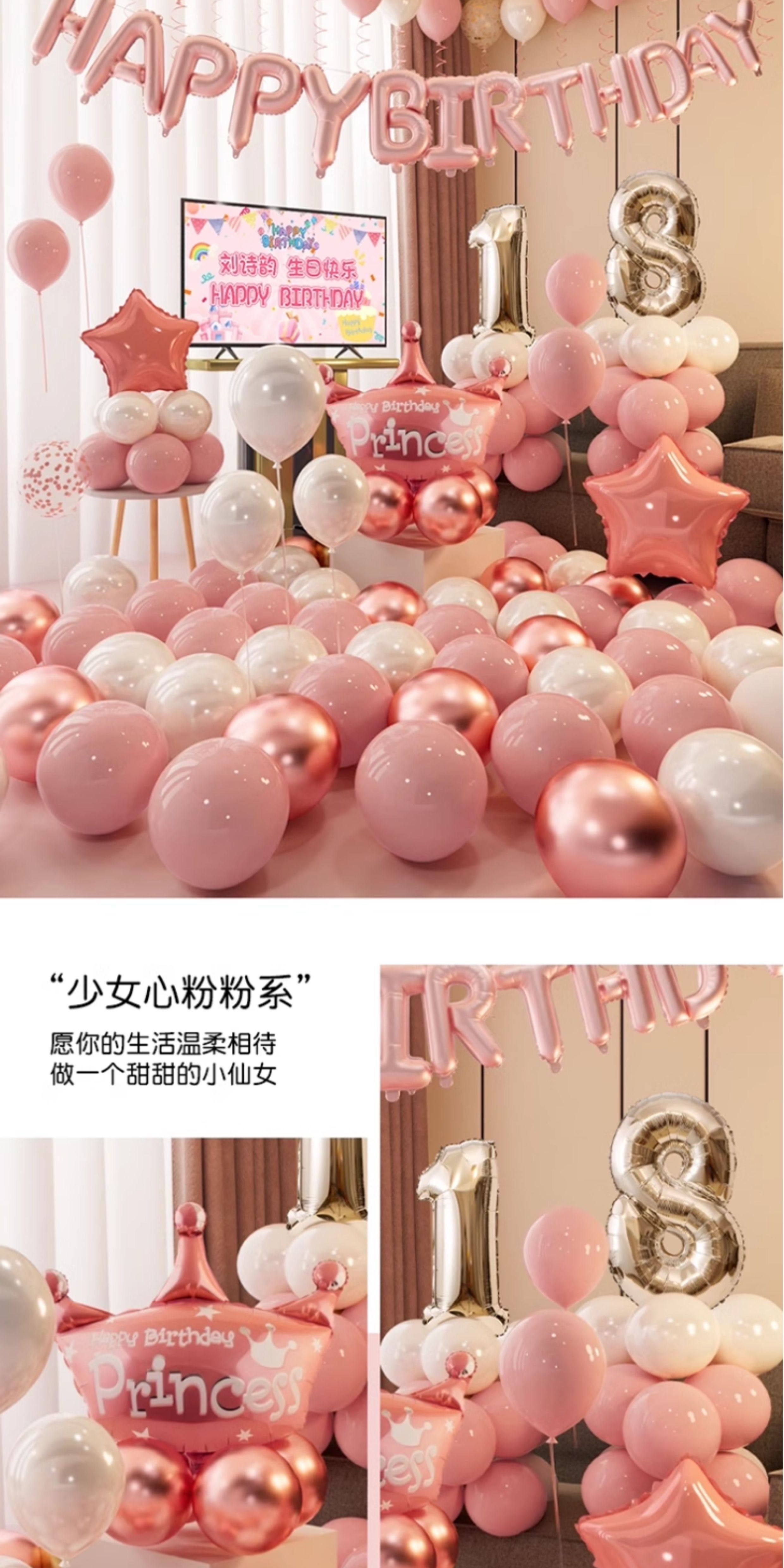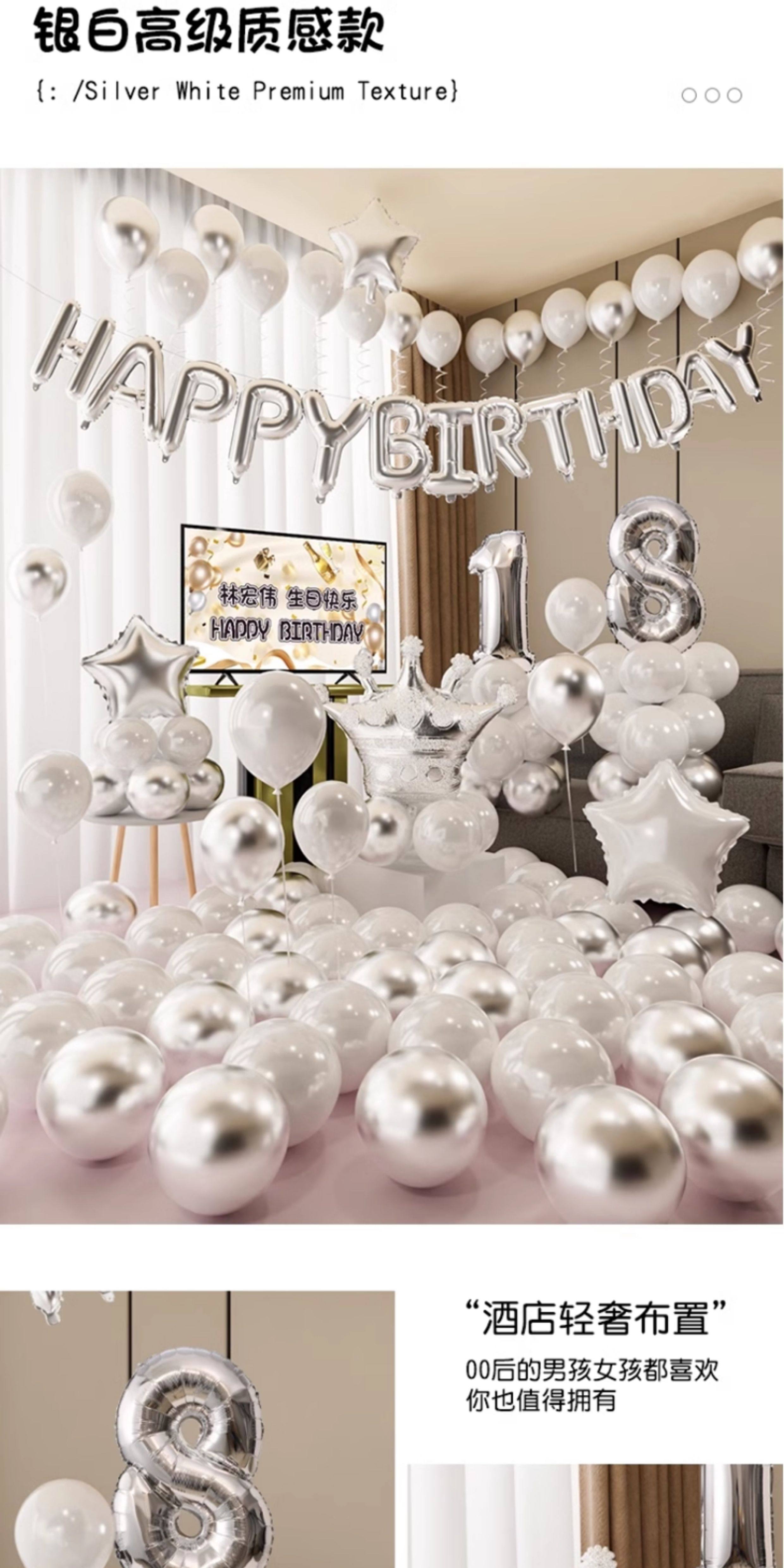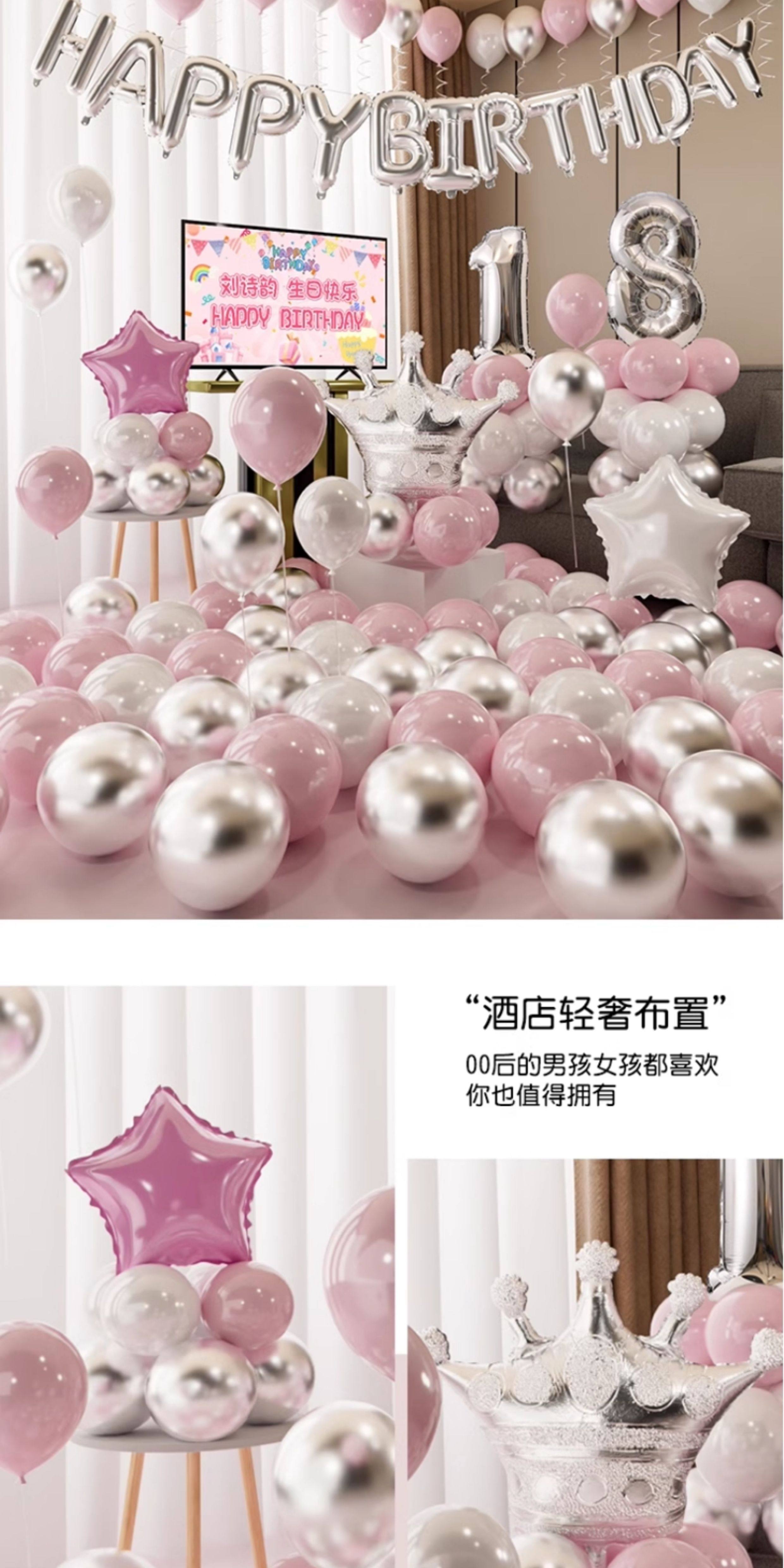 Birthday Scene Decoration for 18-Year-Old Adults to Take Photos at Home, with a Sense of Ceremony, Wall Decorations, Happy Birthday Balloons, and a Sense of Atmosphere