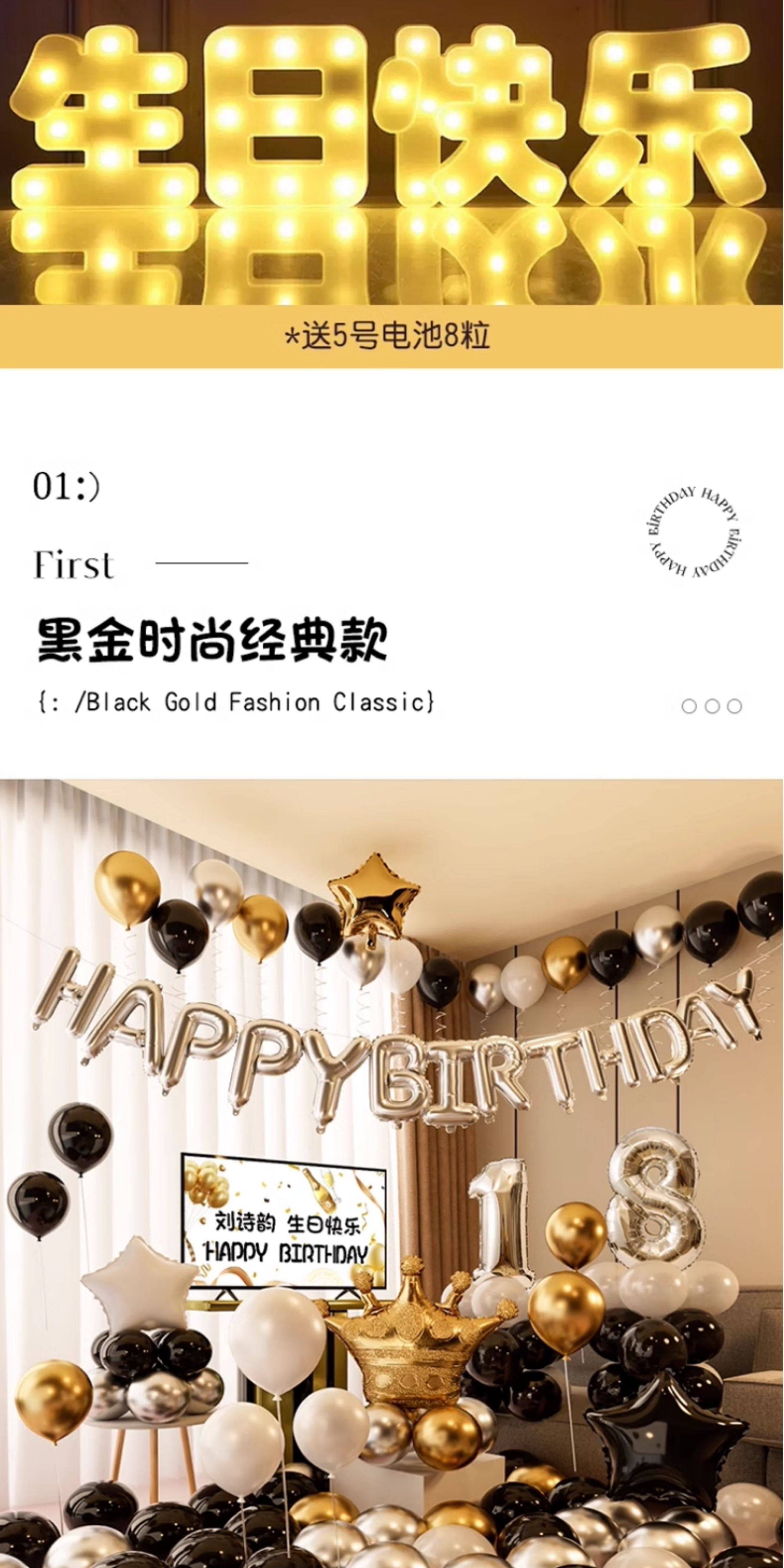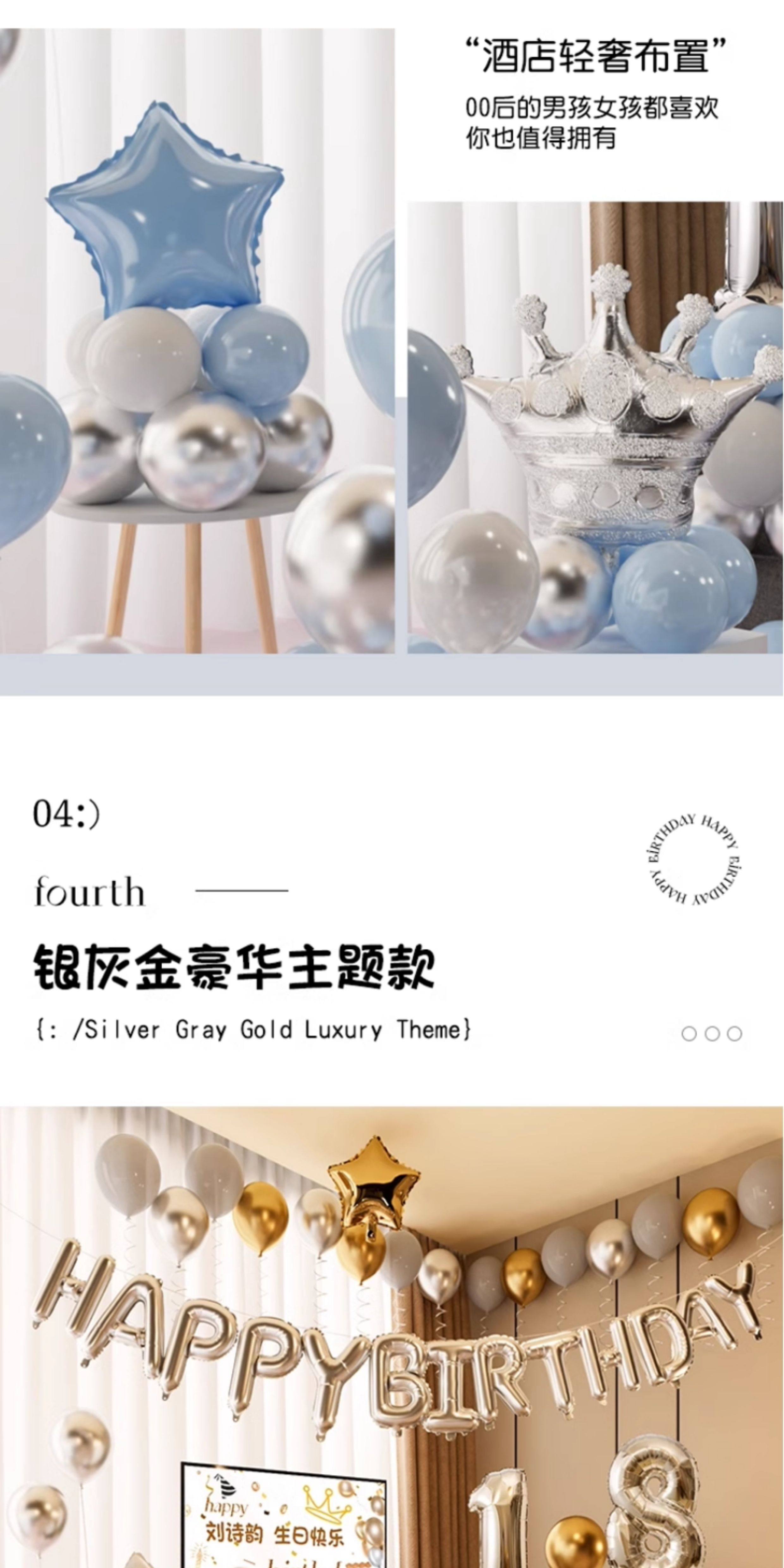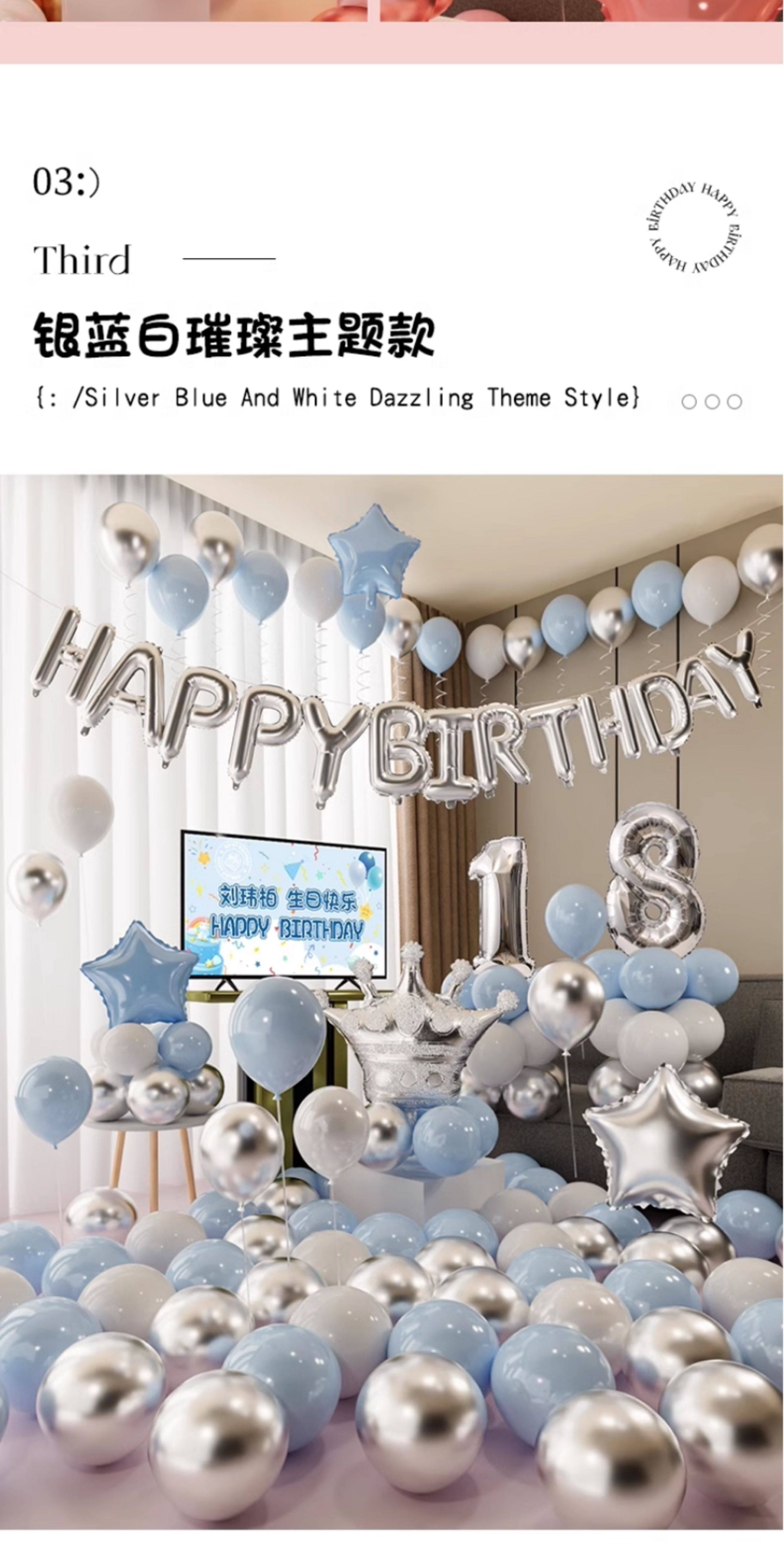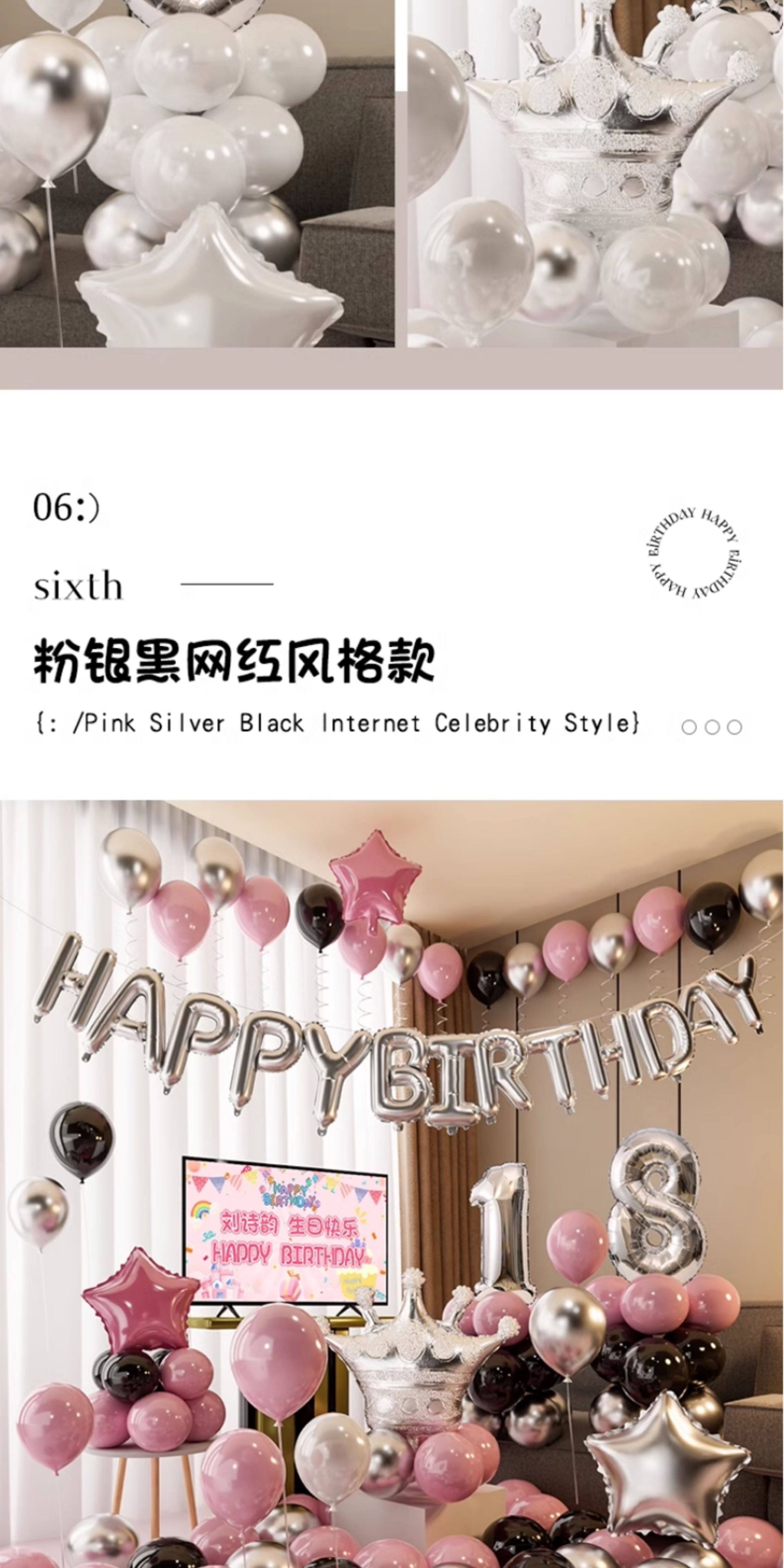 Birthday Scene Decoration for 18-Year-Old Adults to Take Photos at Home, with a Sense of Ceremony, Wall Decorations, Happy Birthday Balloons, and a Sense of Atmosphere