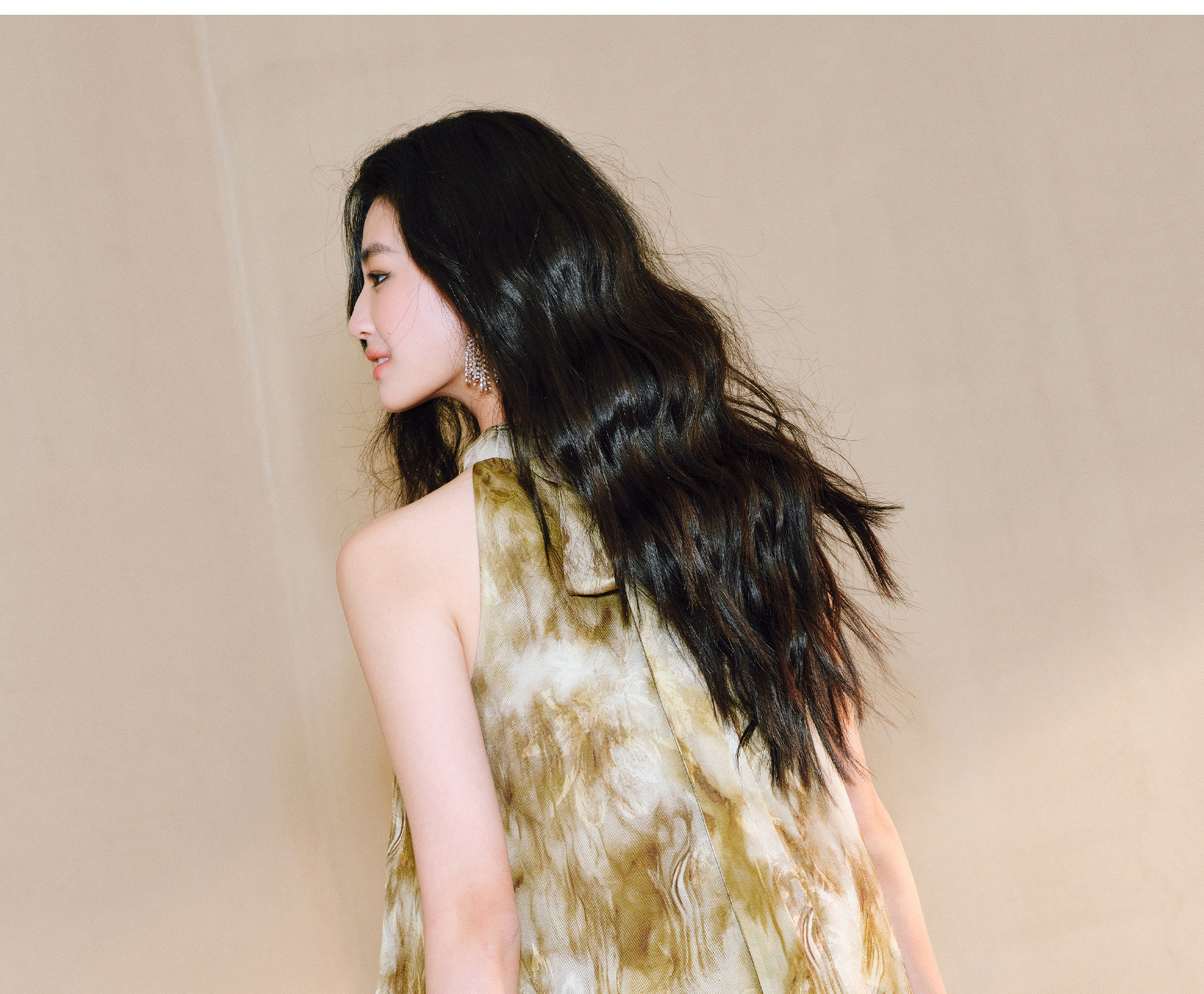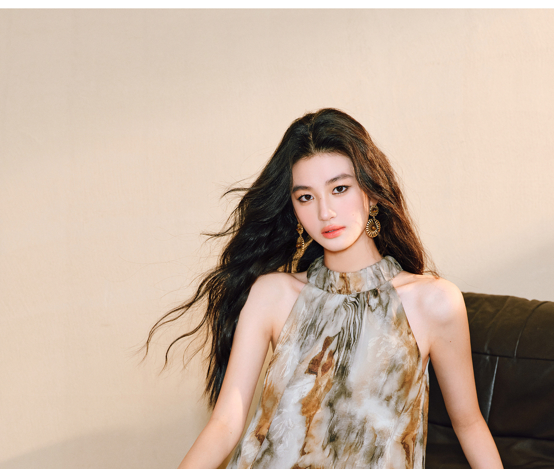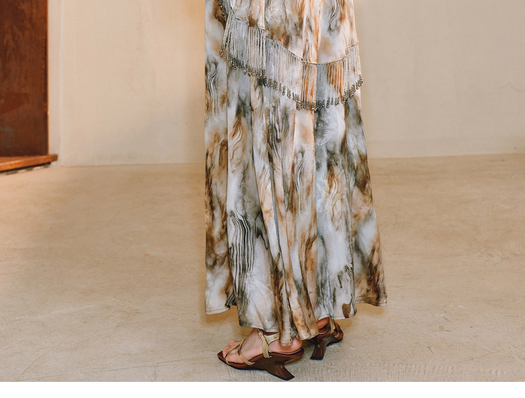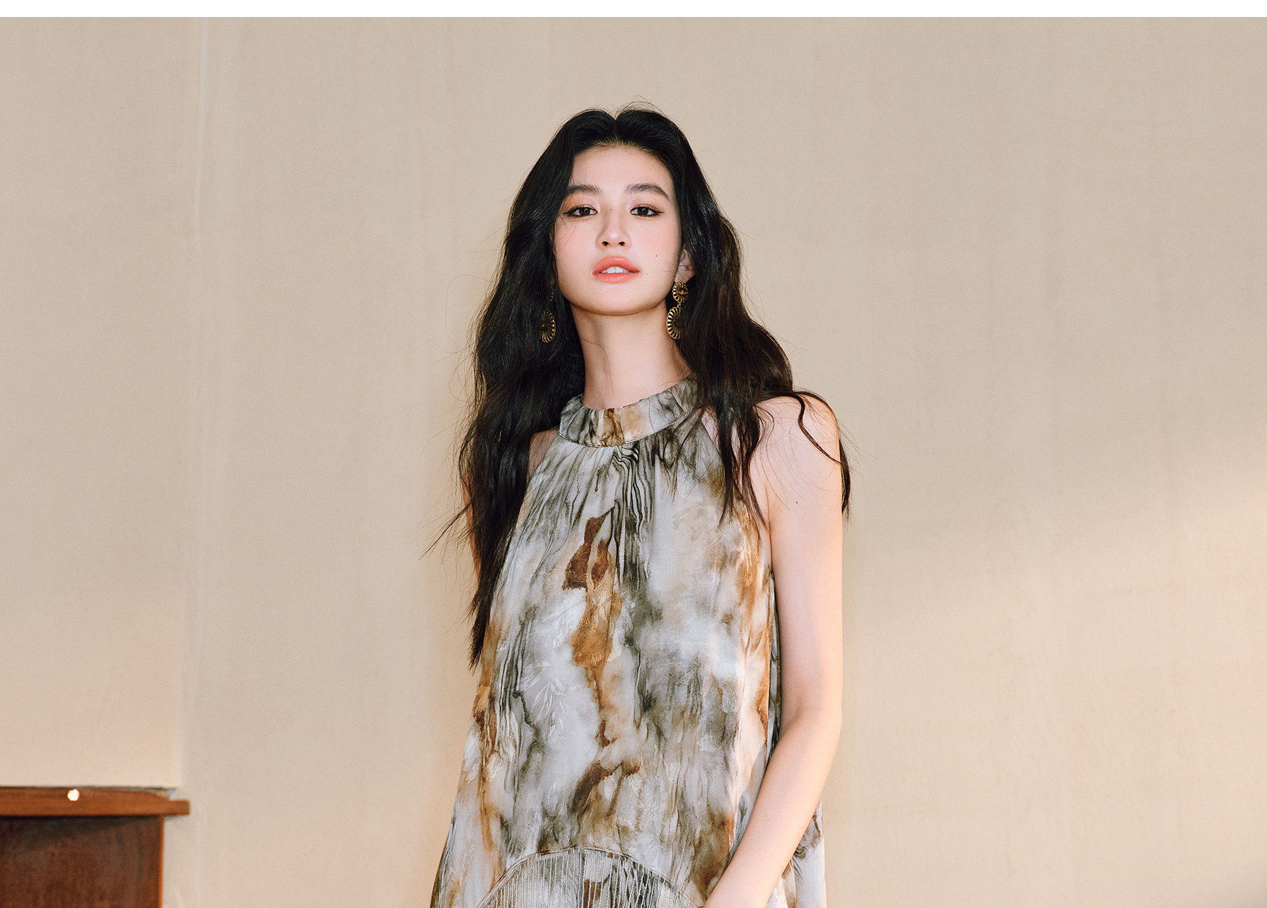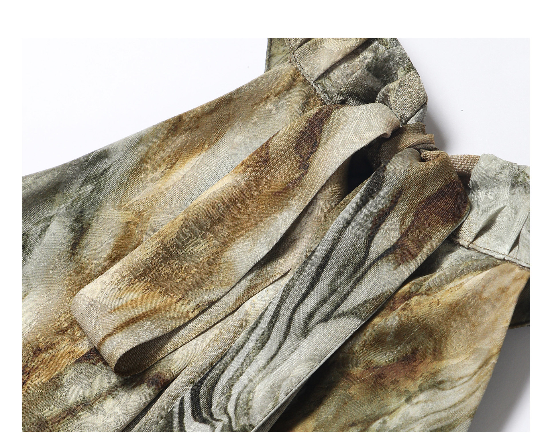 Wangxo|Oil Painting-Like Gorgeous Satin Jacquard|Beaded Tassel French and Italian Romantic Off-Shoulder Halter Dress