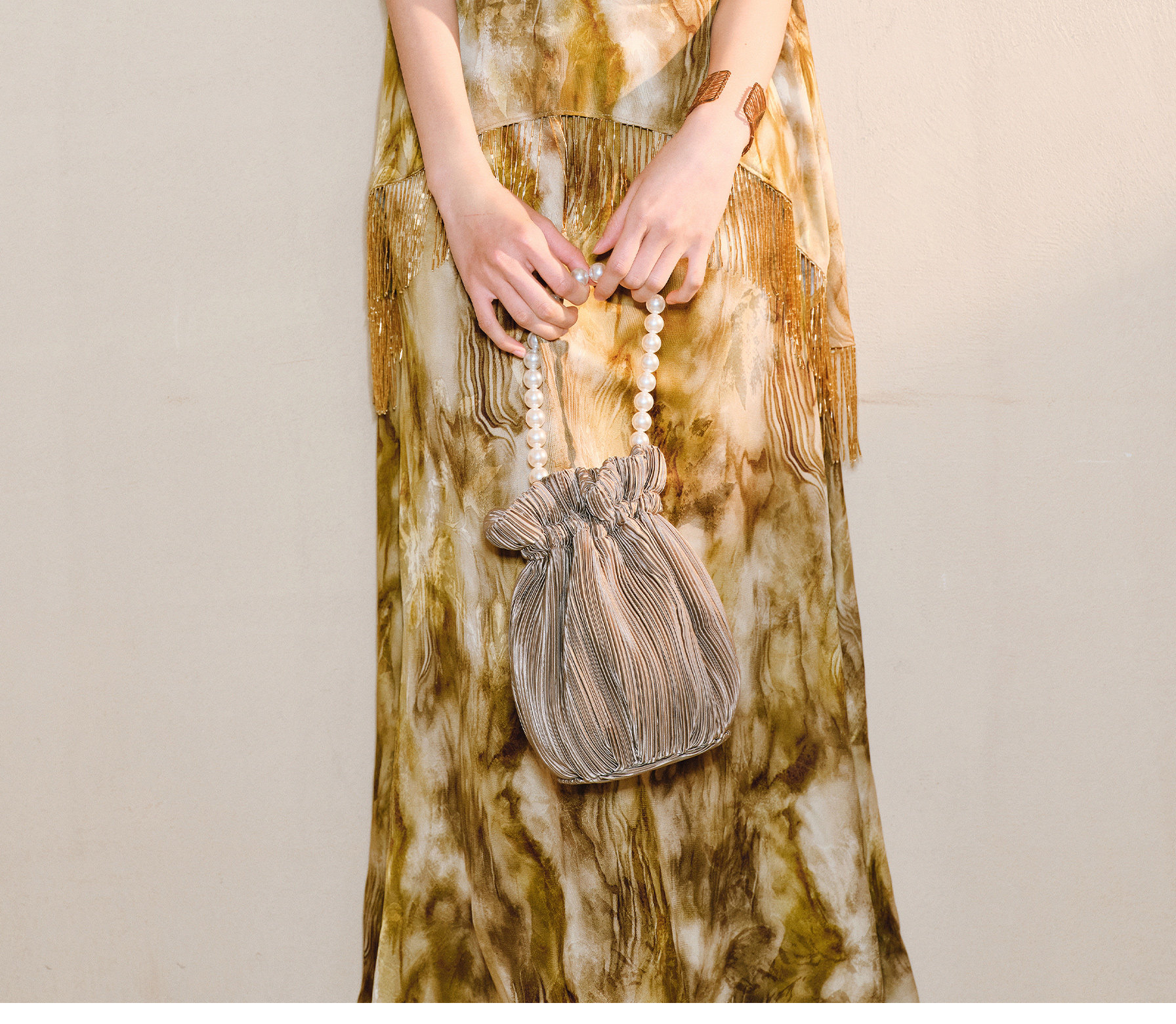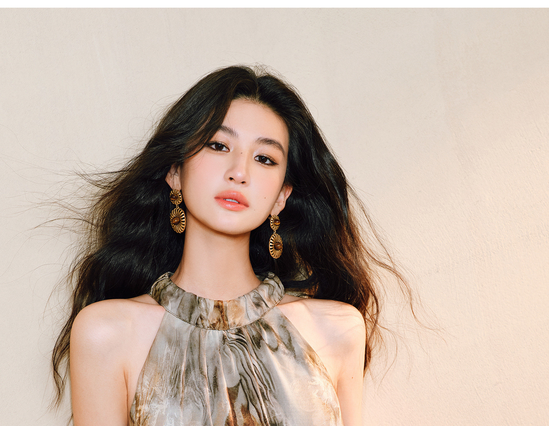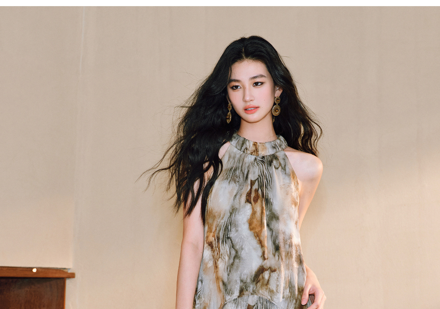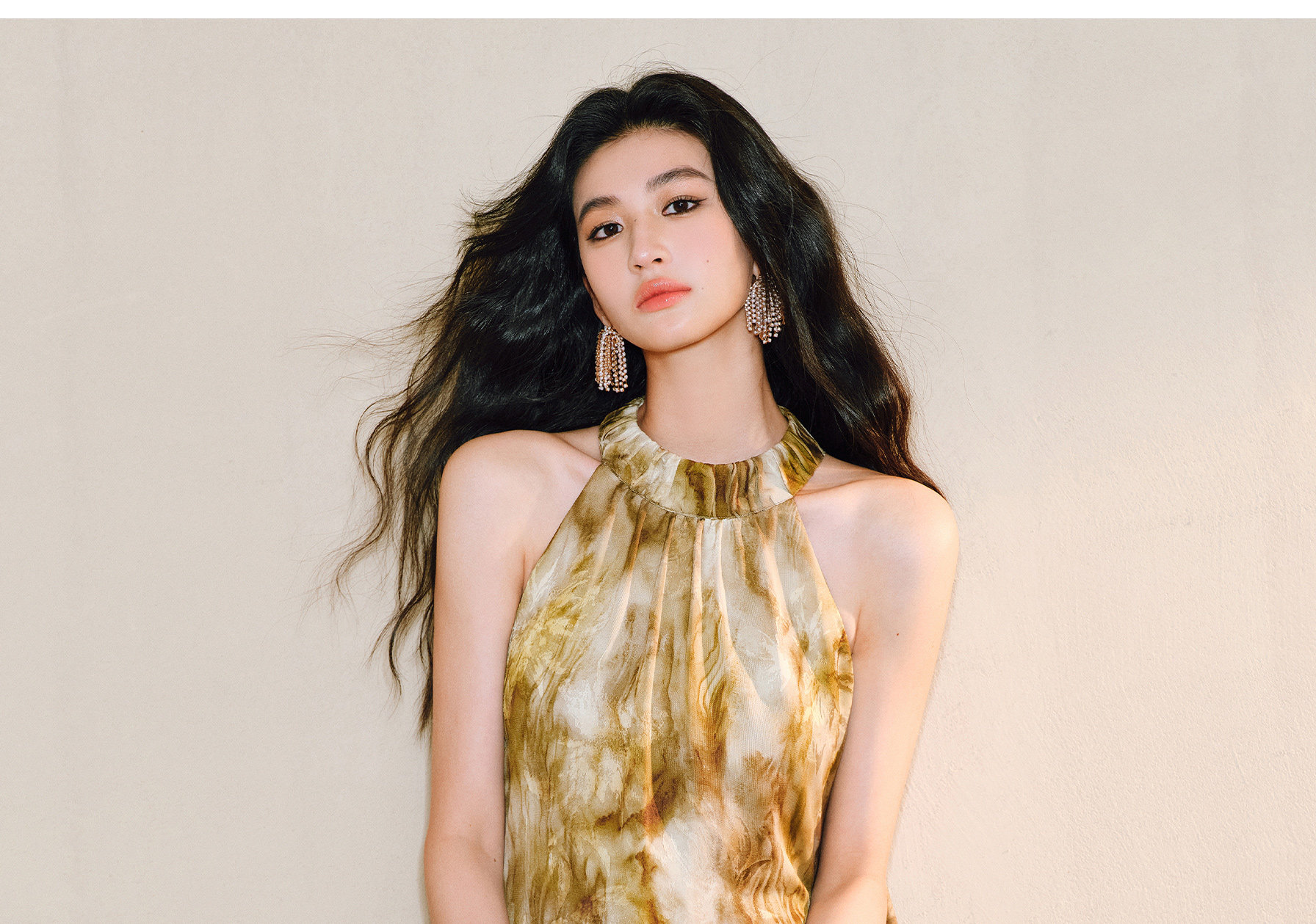 Wangxo|Oil Painting-Like Gorgeous Satin Jacquard|Beaded Tassel French and Italian Romantic Off-Shoulder Halter Dress