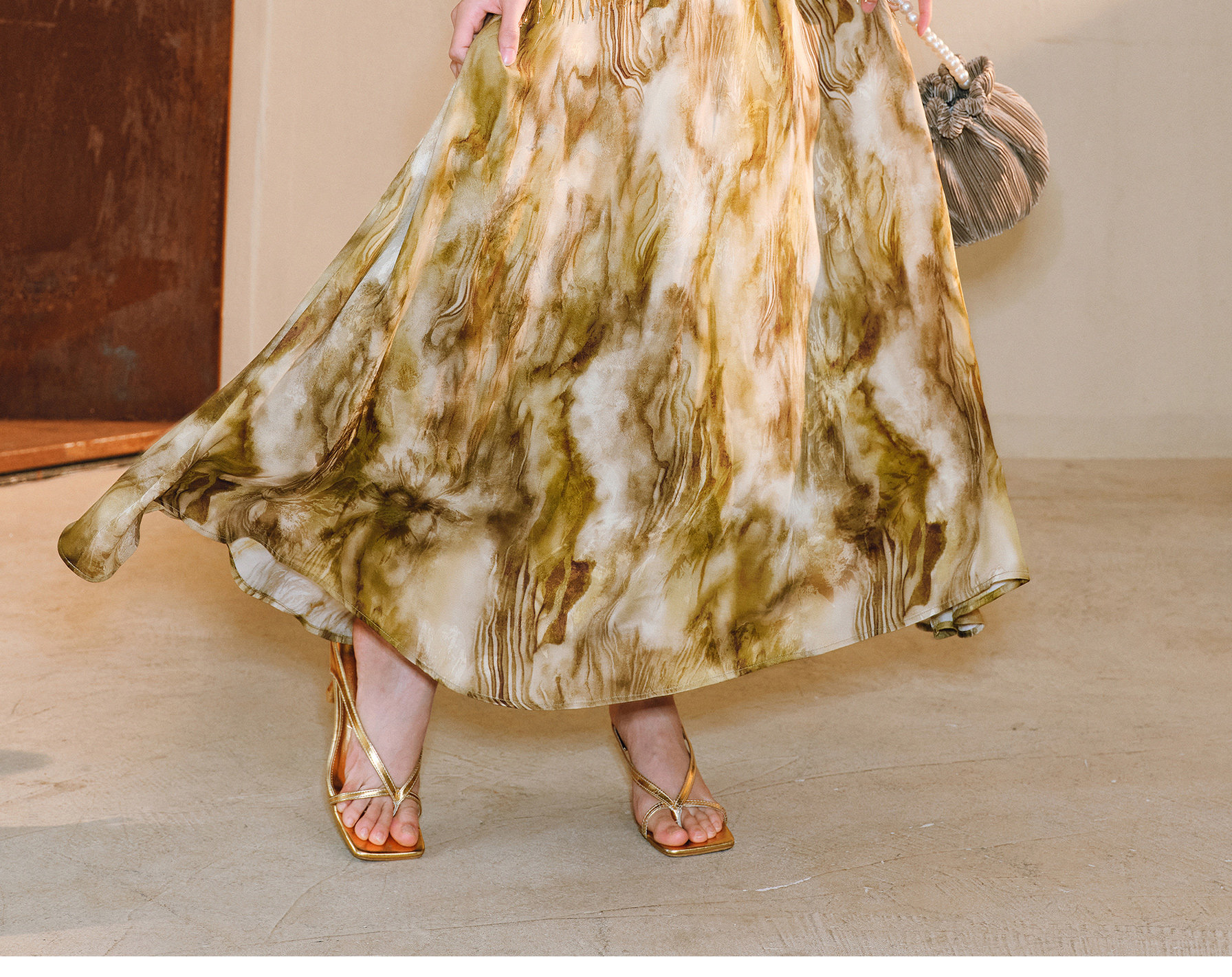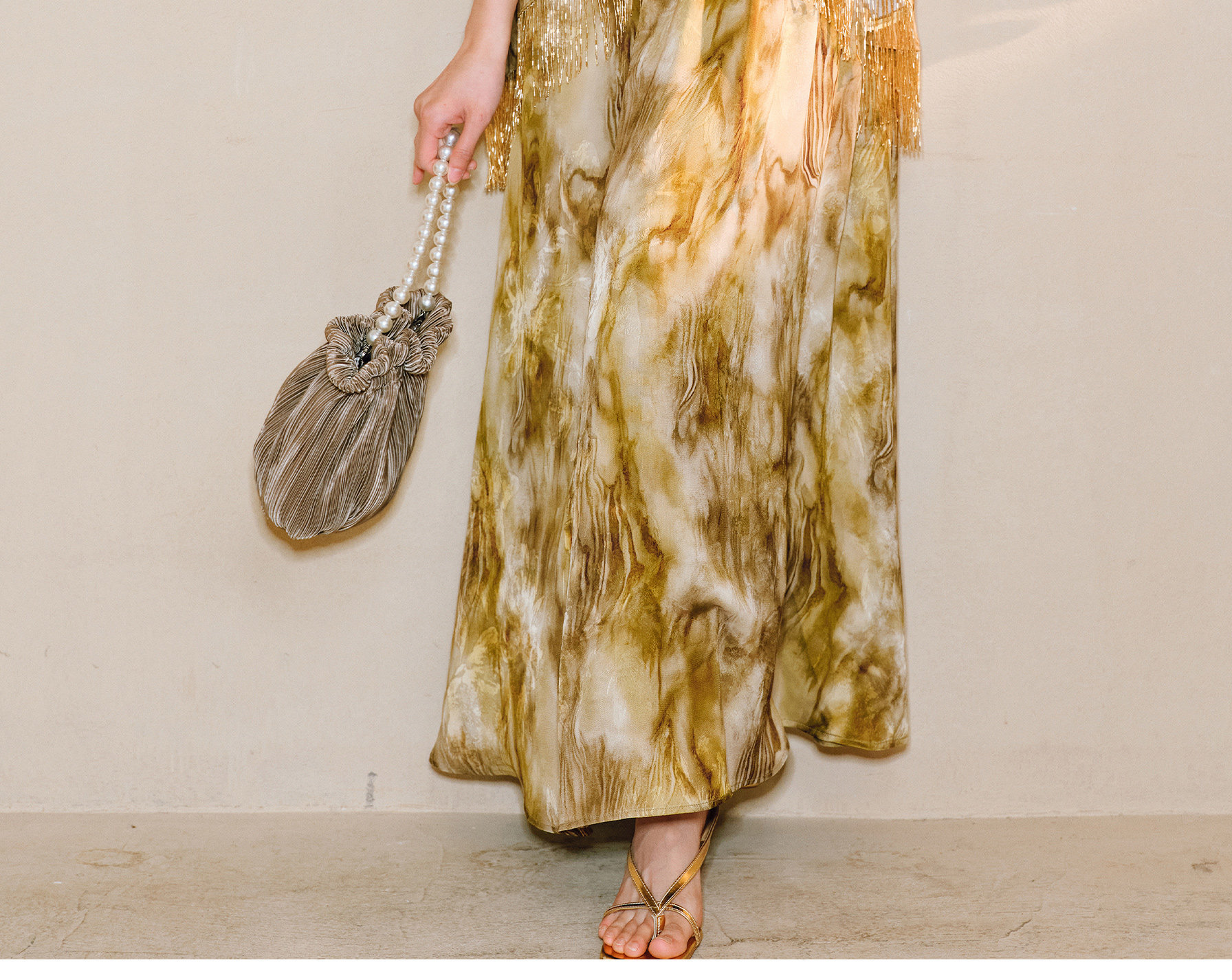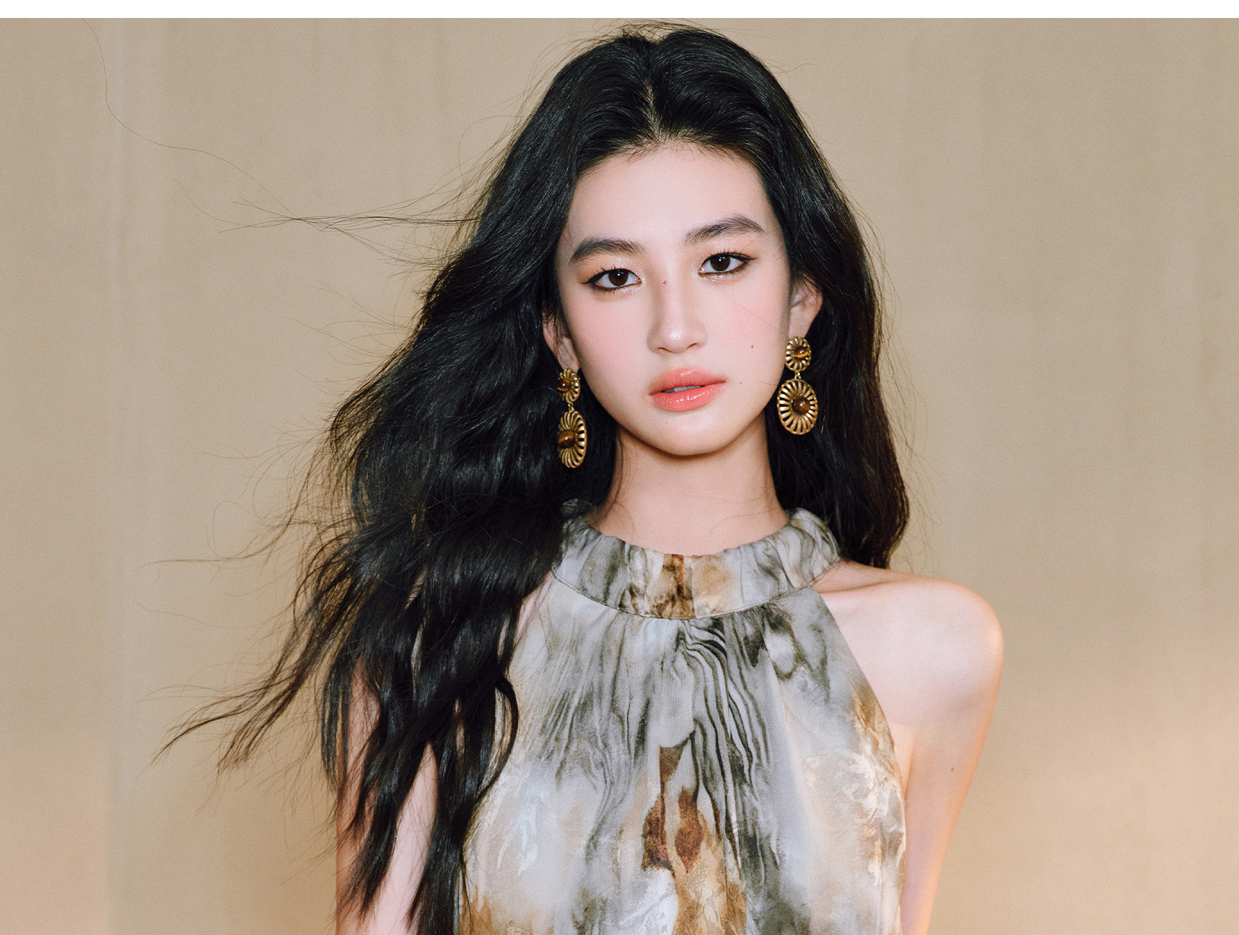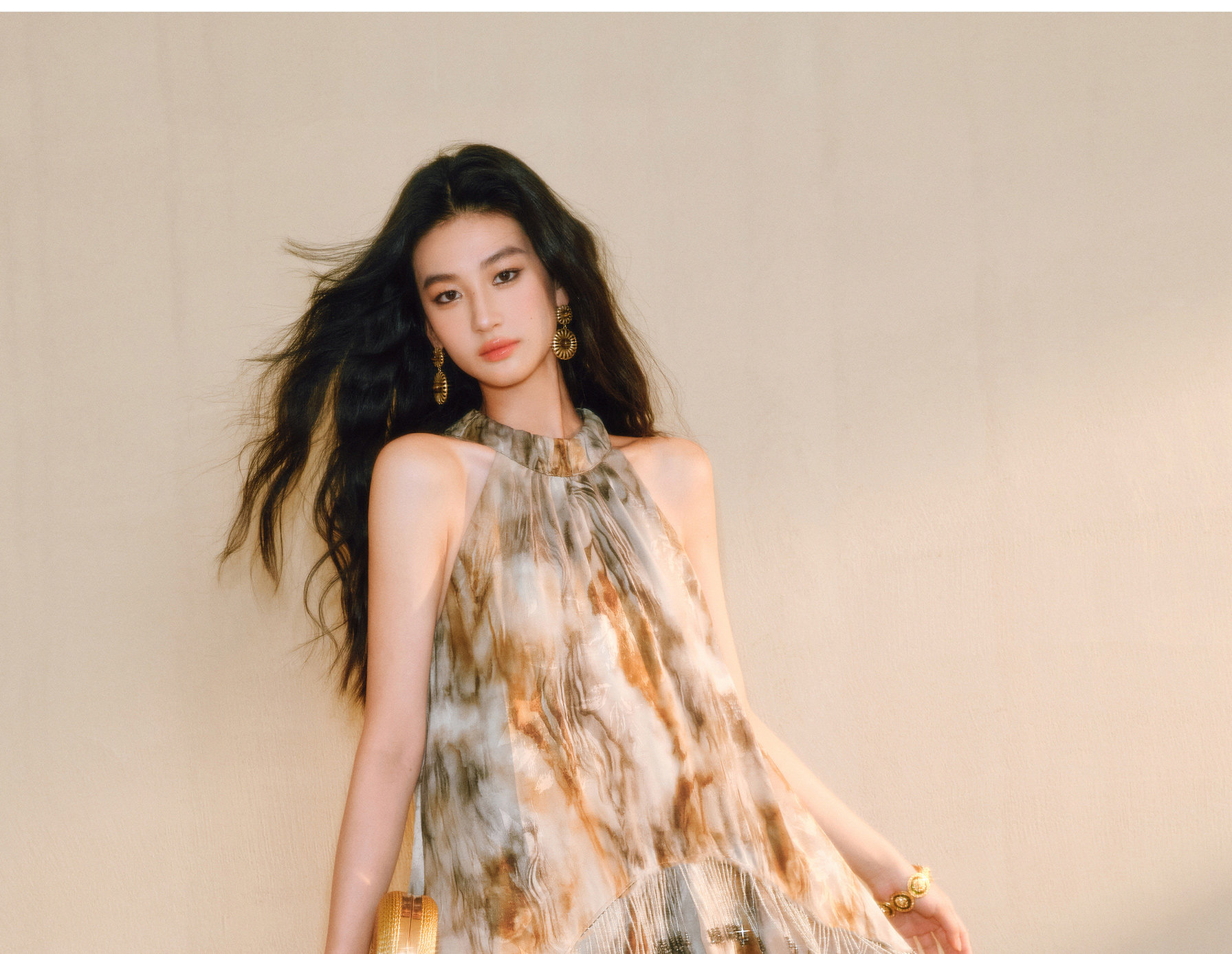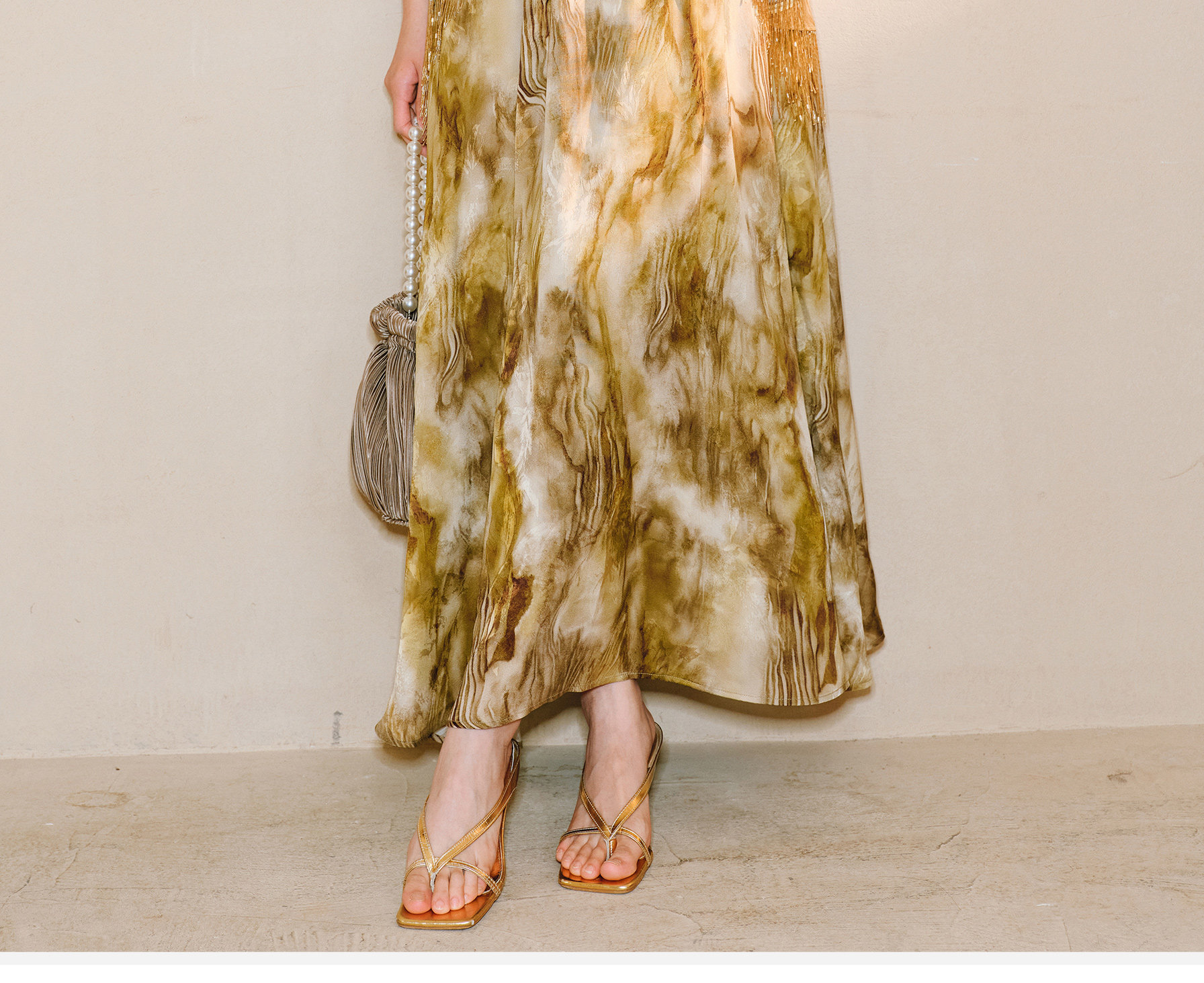 Wangxo|Oil Painting-Like Gorgeous Satin Jacquard|Beaded Tassel French and Italian Romantic Off-Shoulder Halter Dress