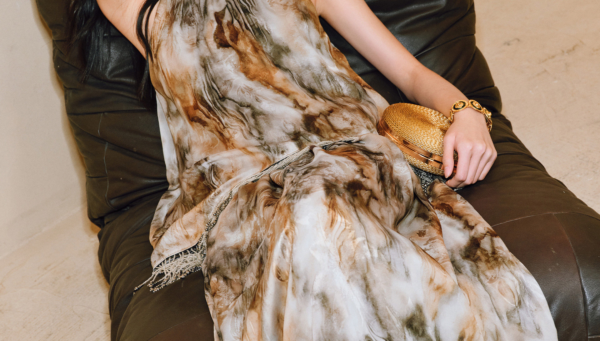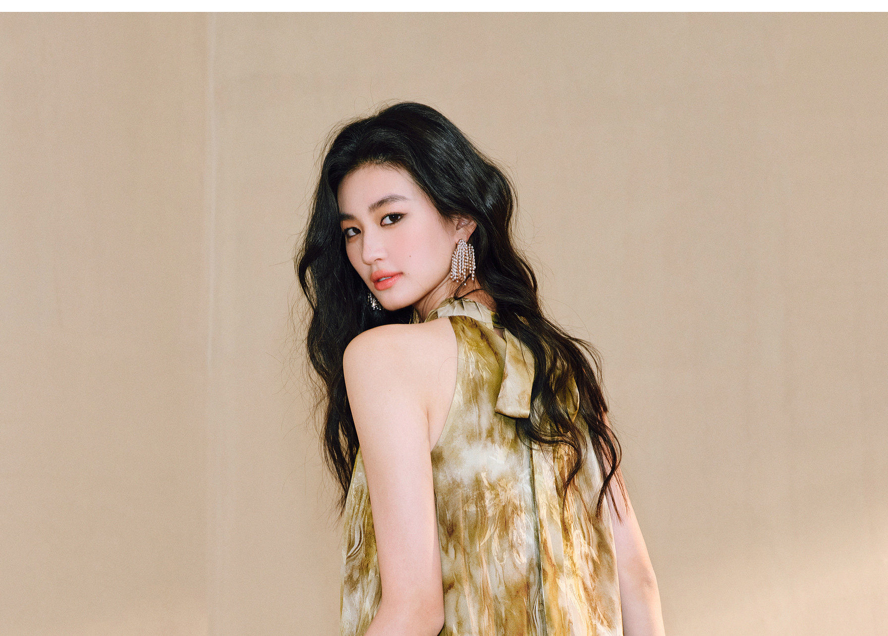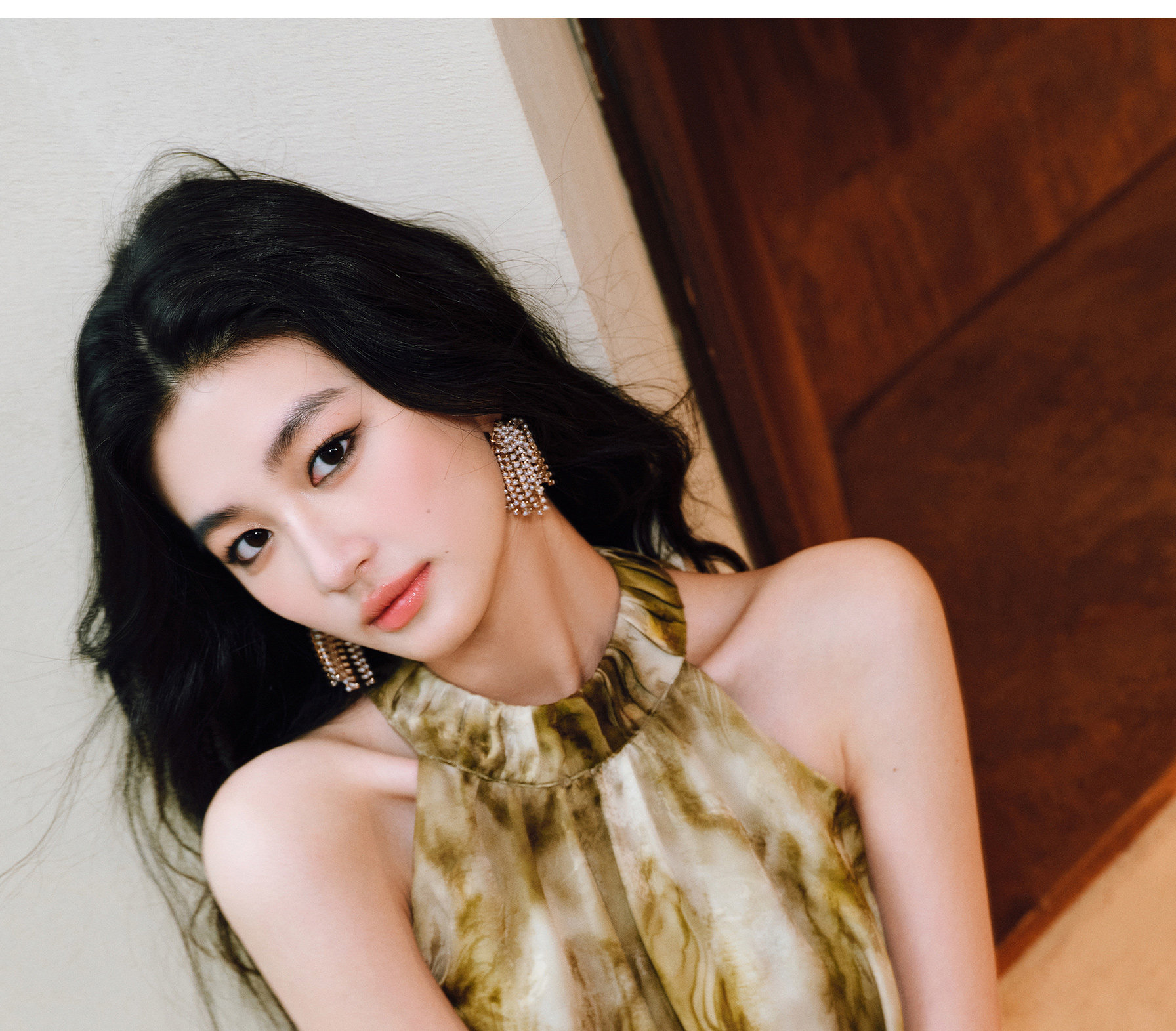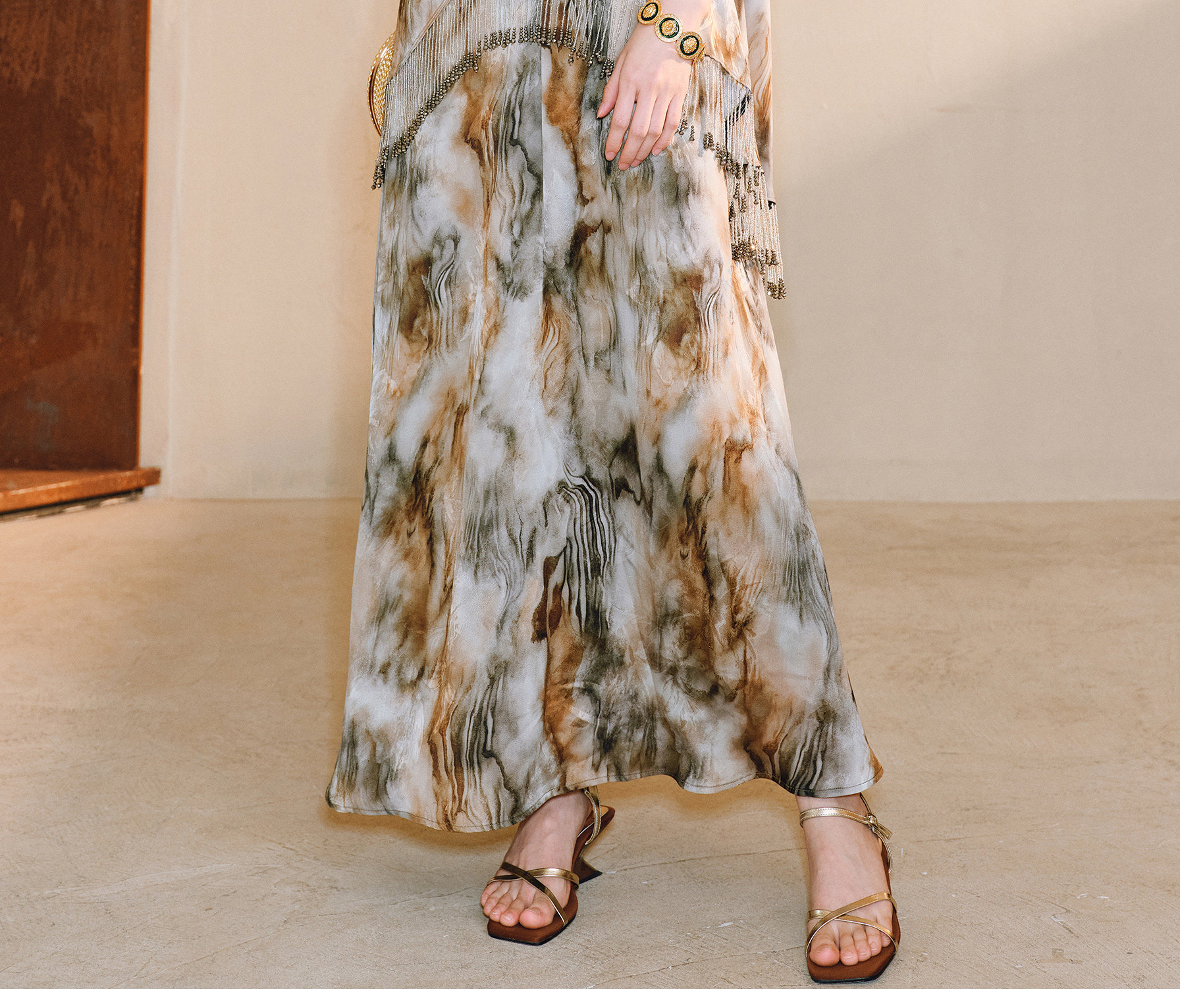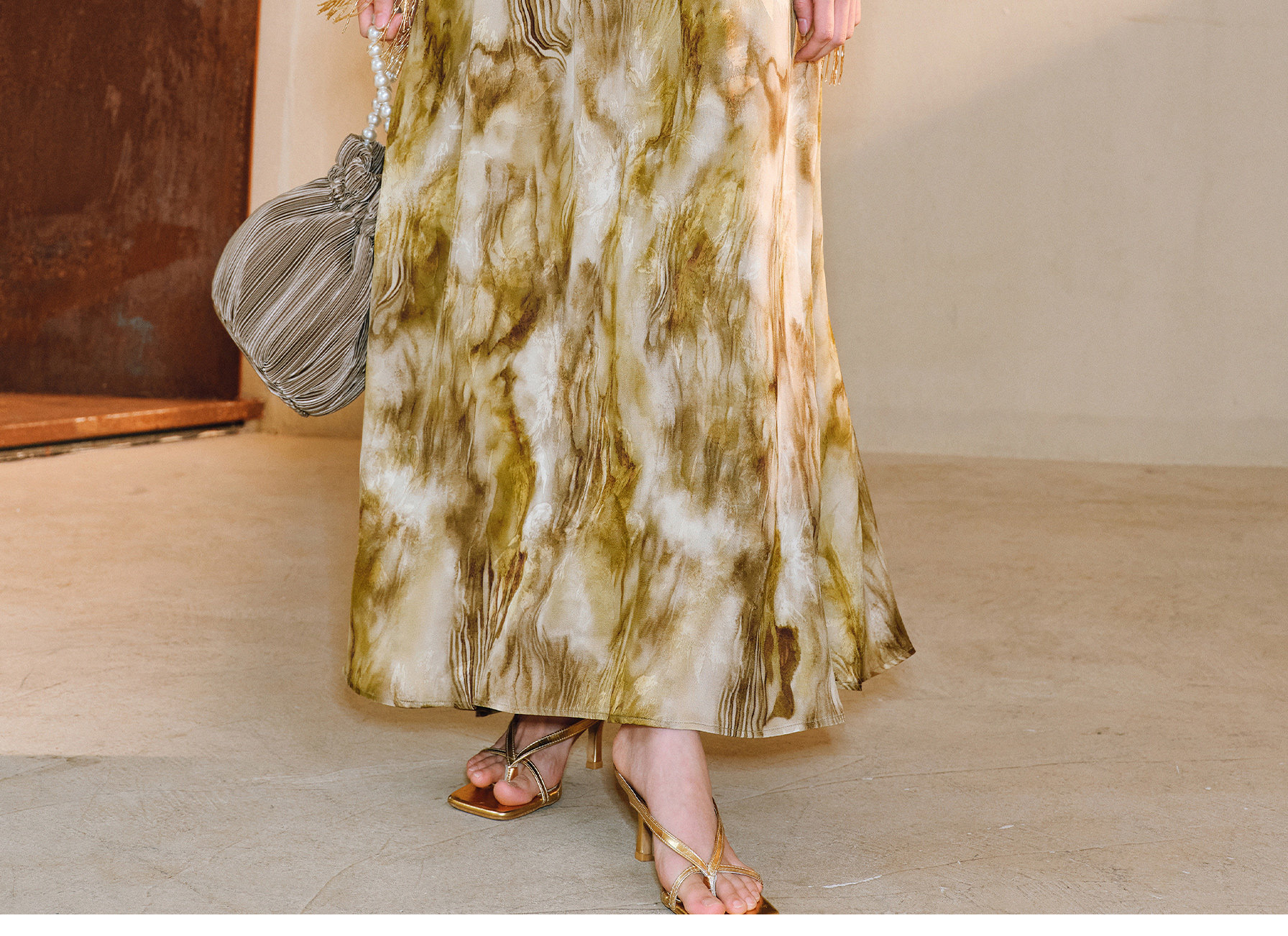 Wangxo|Oil Painting-Like Gorgeous Satin Jacquard|Beaded Tassel French and Italian Romantic Off-Shoulder Halter Dress