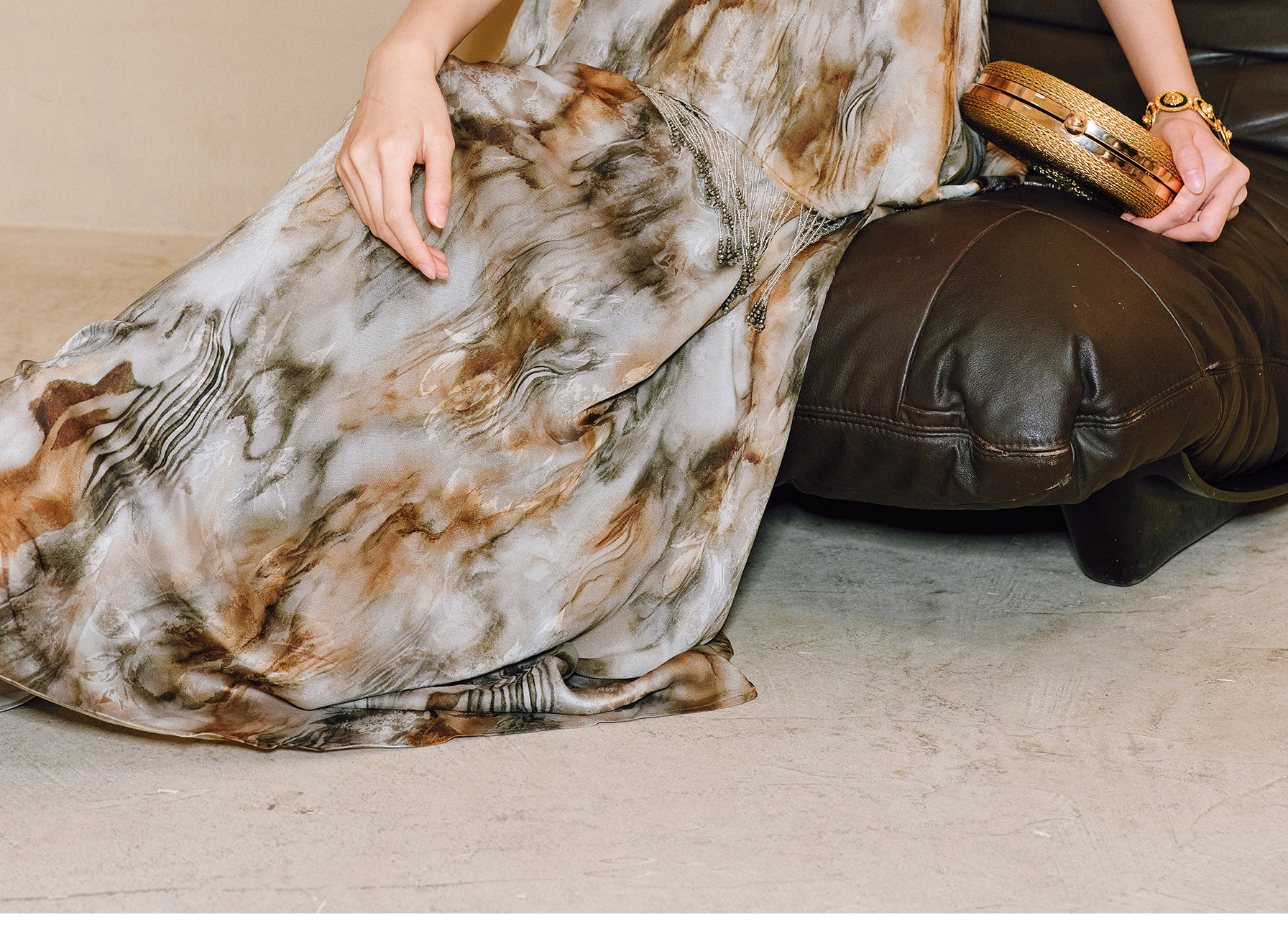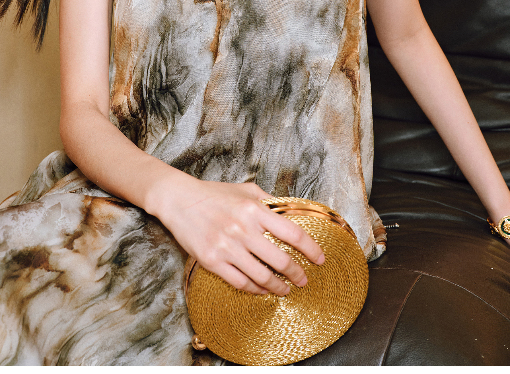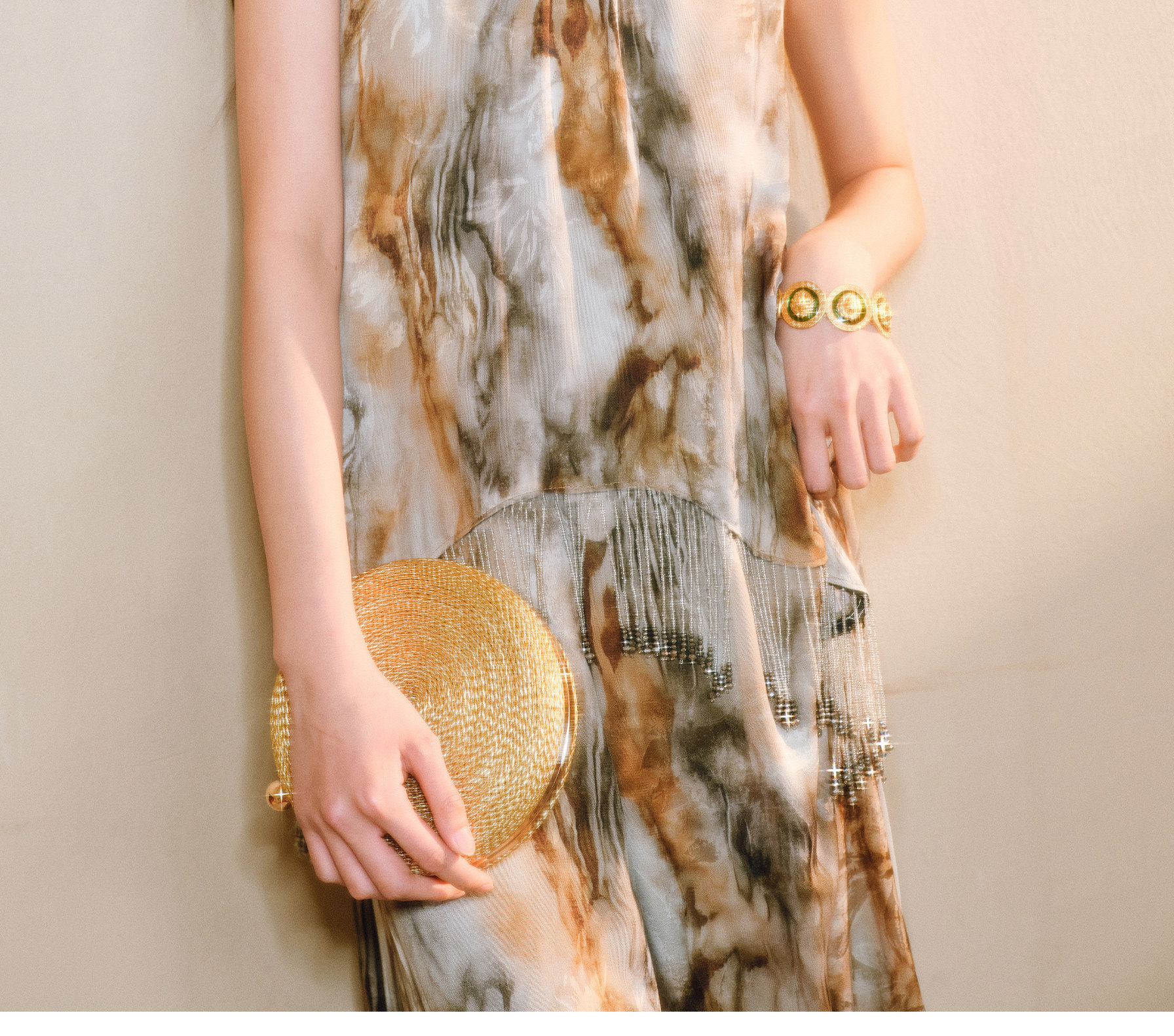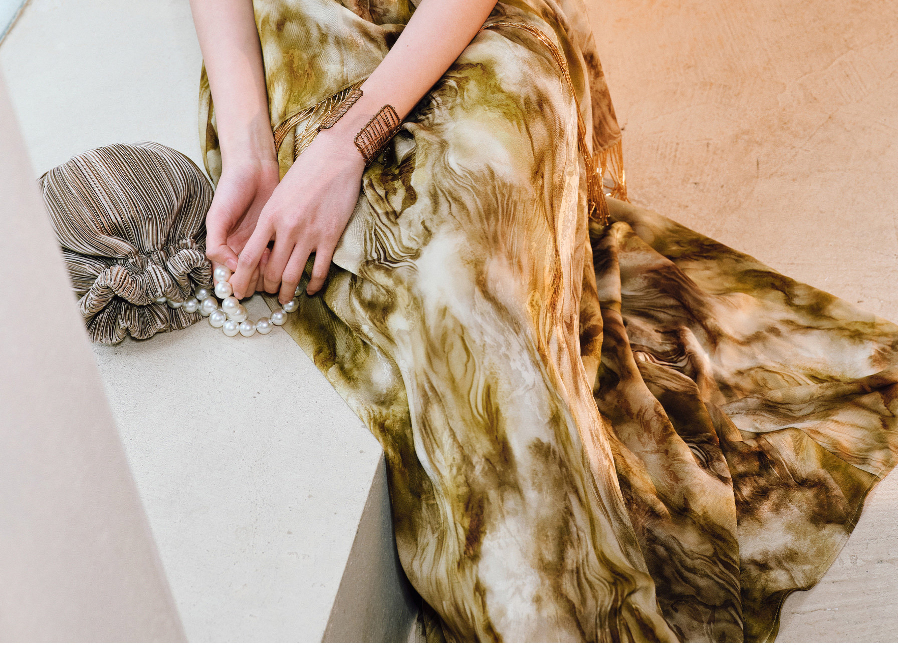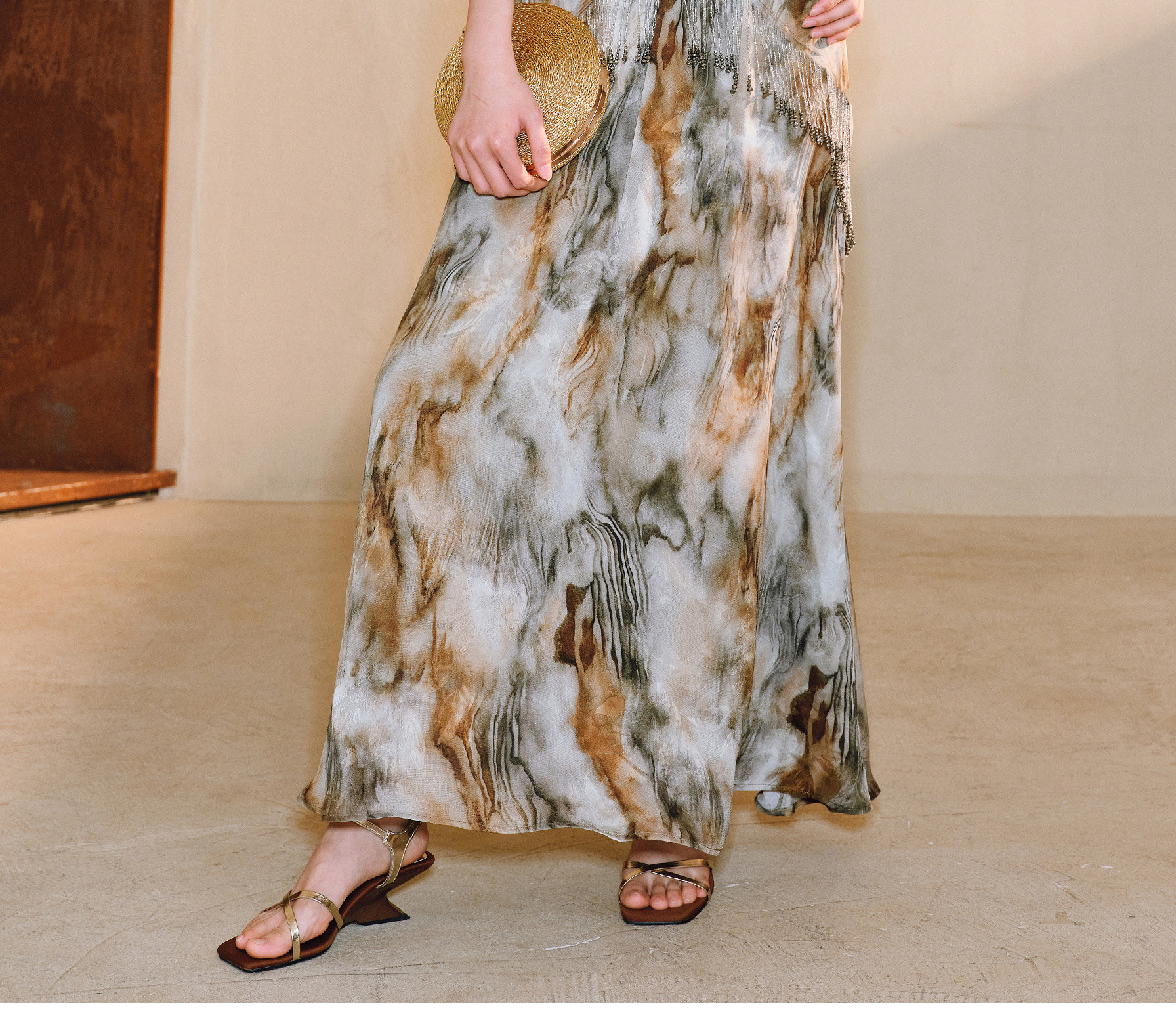 Wangxo|Oil Painting-Like Gorgeous Satin Jacquard|Beaded Tassel French and Italian Romantic Off-Shoulder Halter Dress