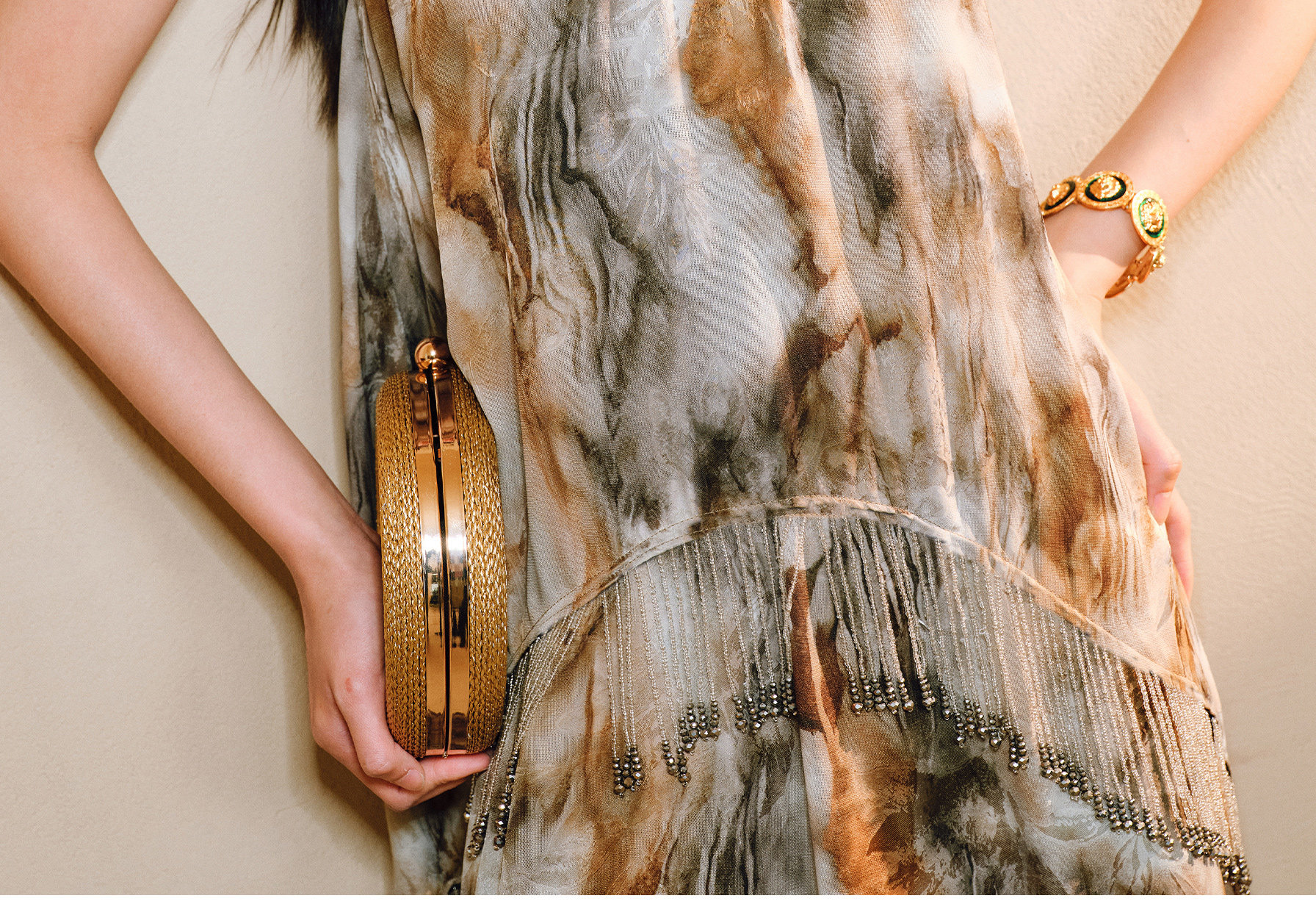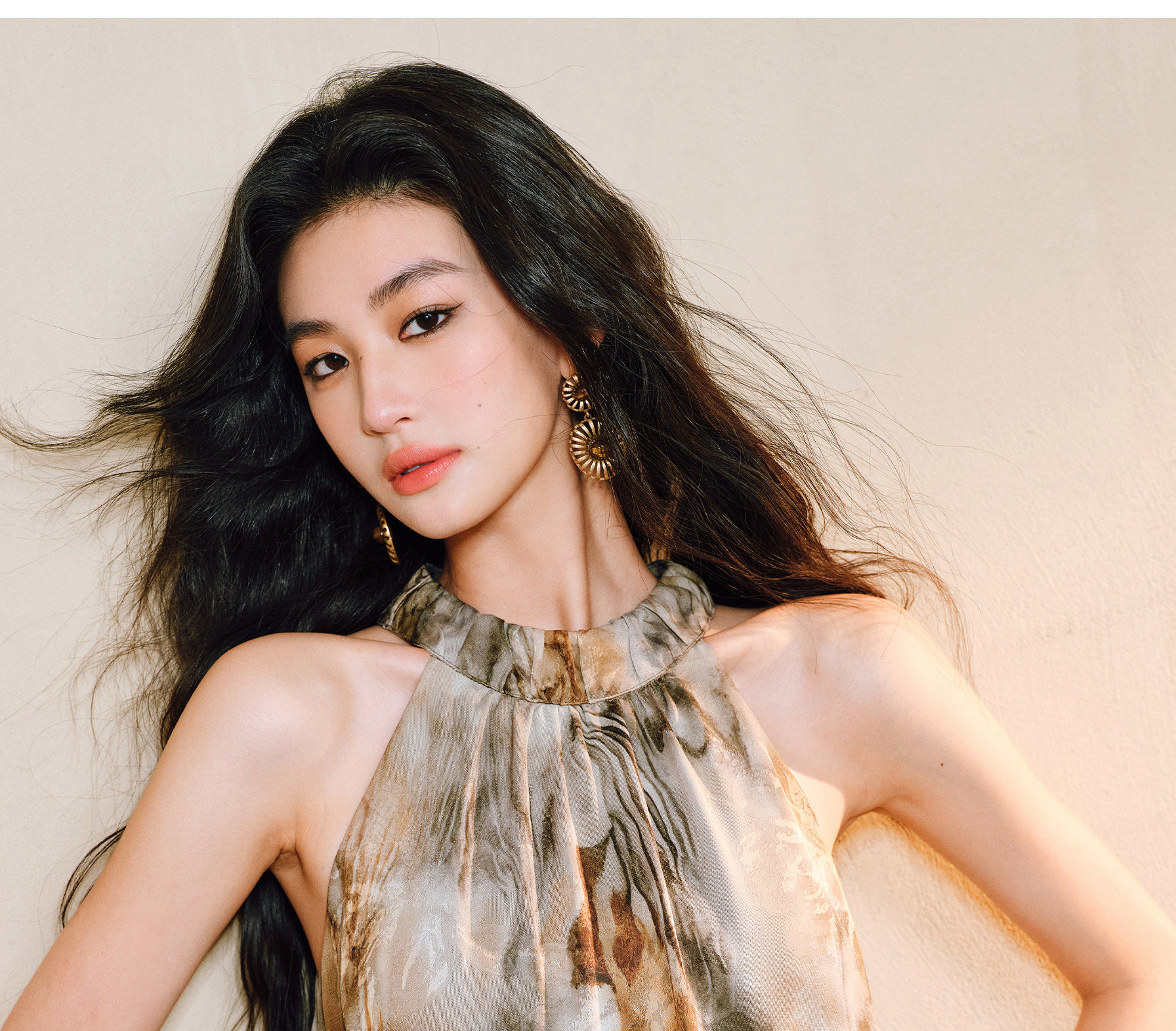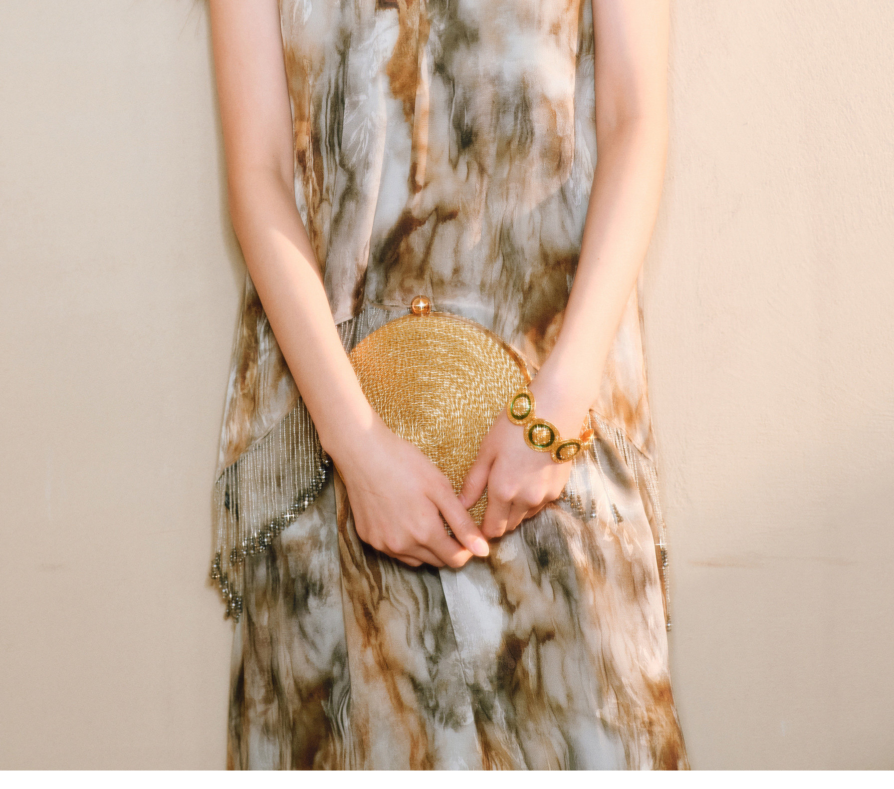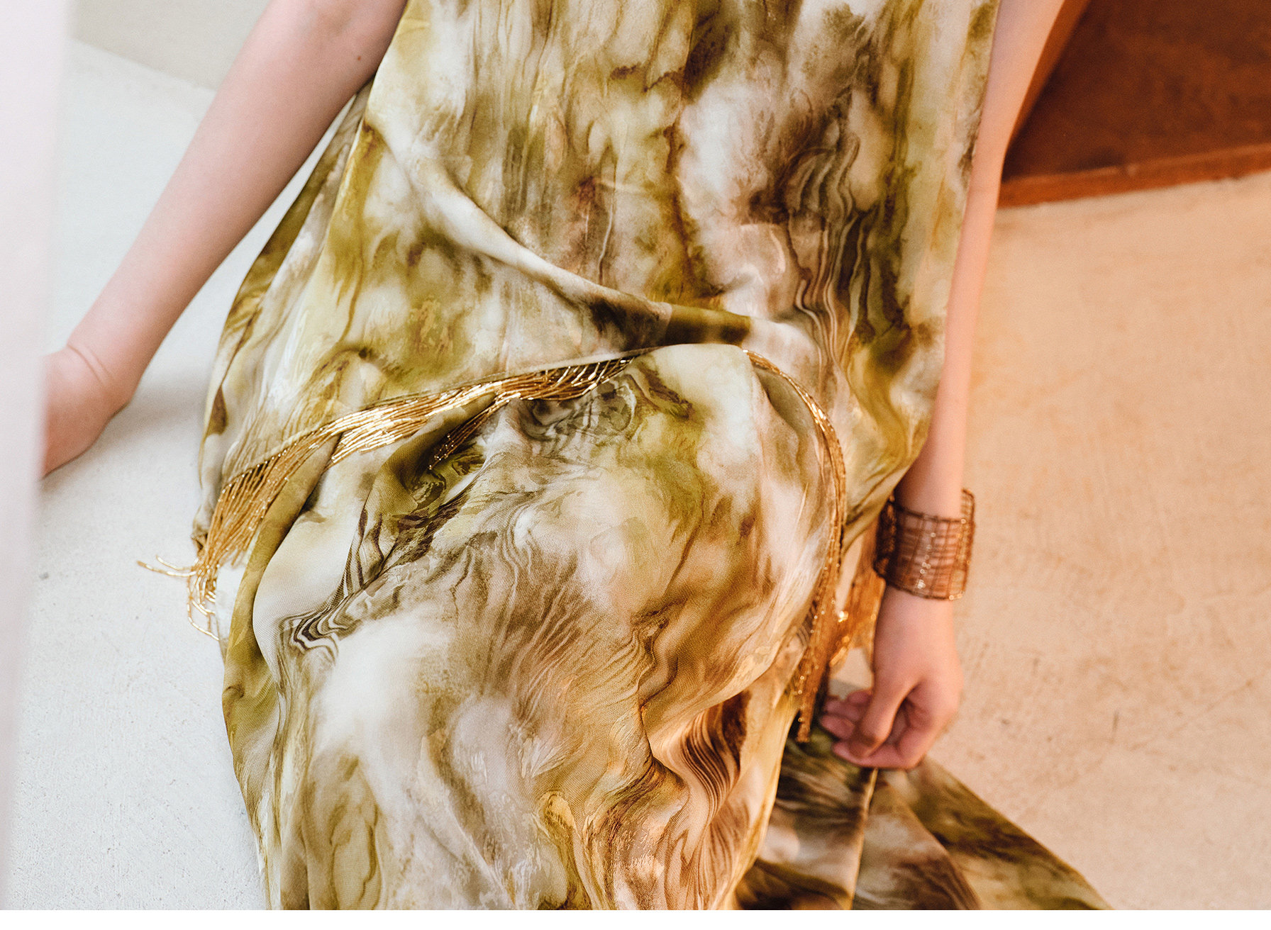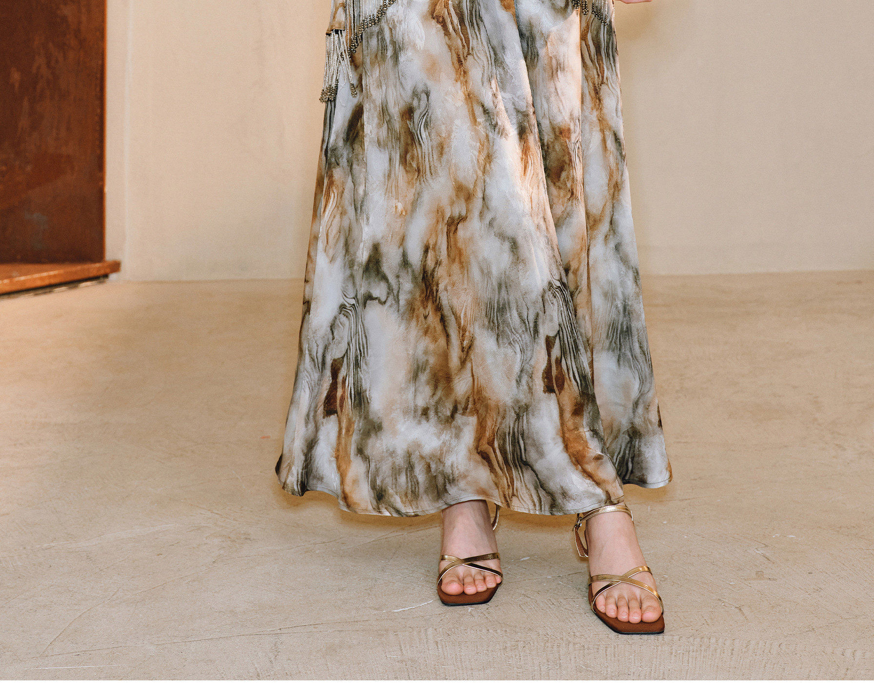 Wangxo|Oil Painting-Like Gorgeous Satin Jacquard|Beaded Tassel French and Italian Romantic Off-Shoulder Halter Dress