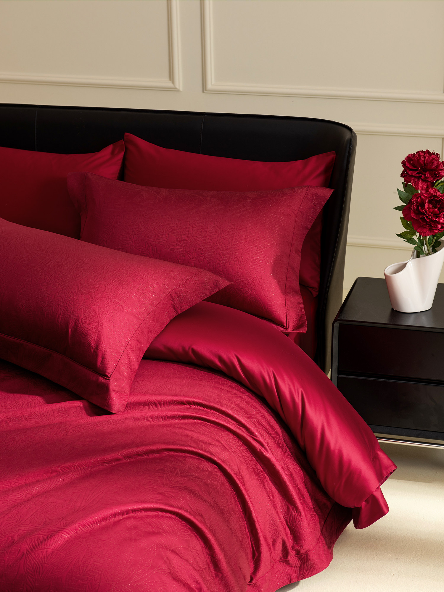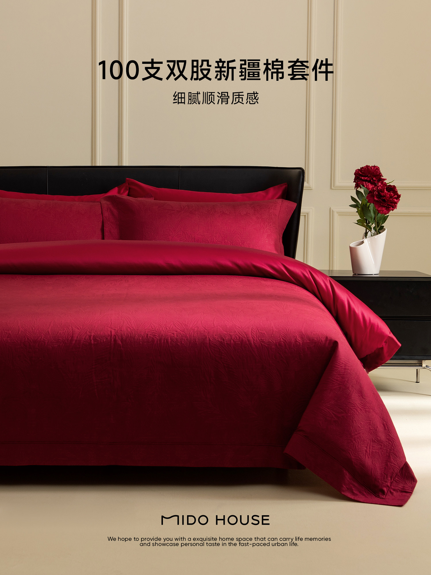 铭都结婚四件套婚庆纯棉100支新款喜庆高级红色婚嫁床上用品套件