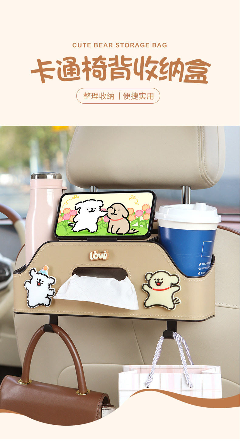 Autositz-Rücken-Aufbewahrungsbox, hinteres Aufbewahrungsregal, Auto-Taschentuch-Box, Linie für Welpen, hintere Drainage, Getränkehalter, Göttin-Gerät