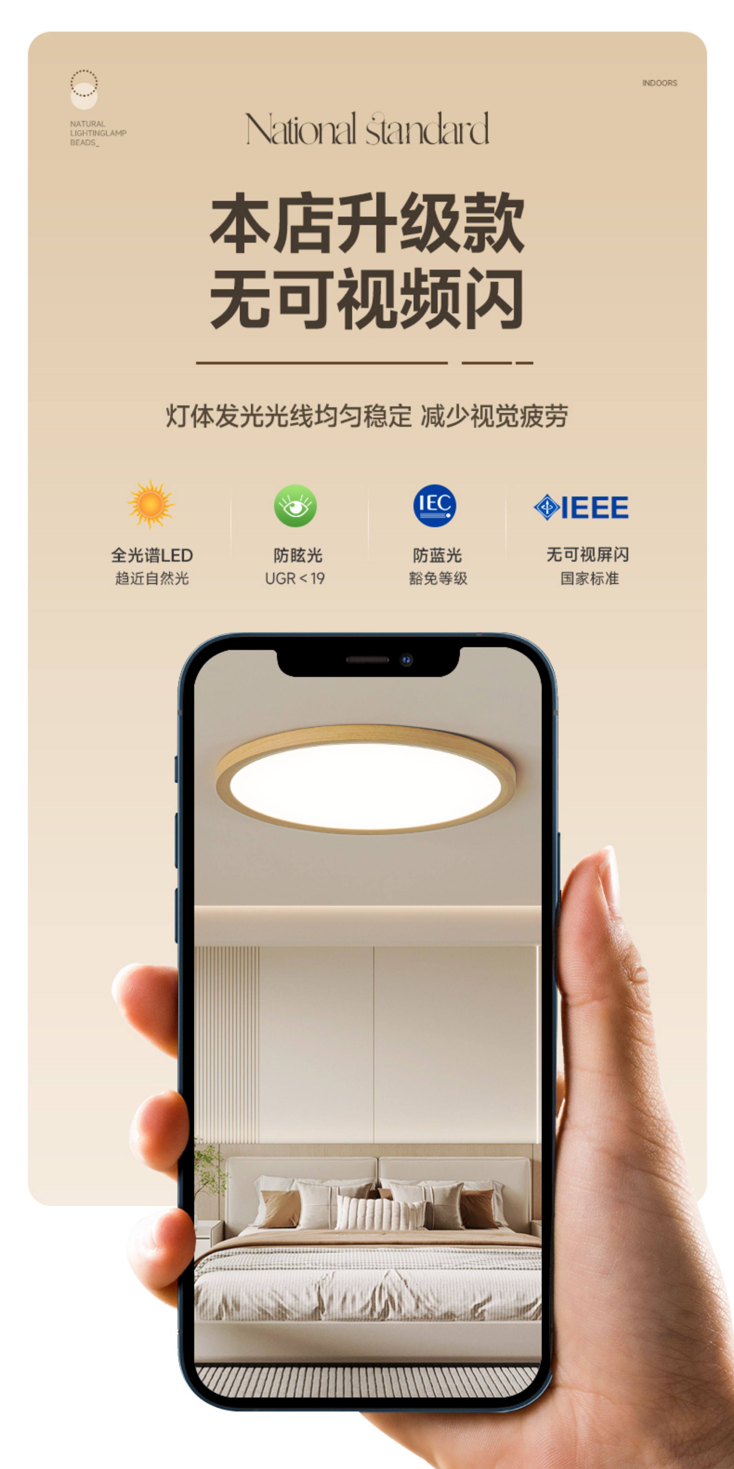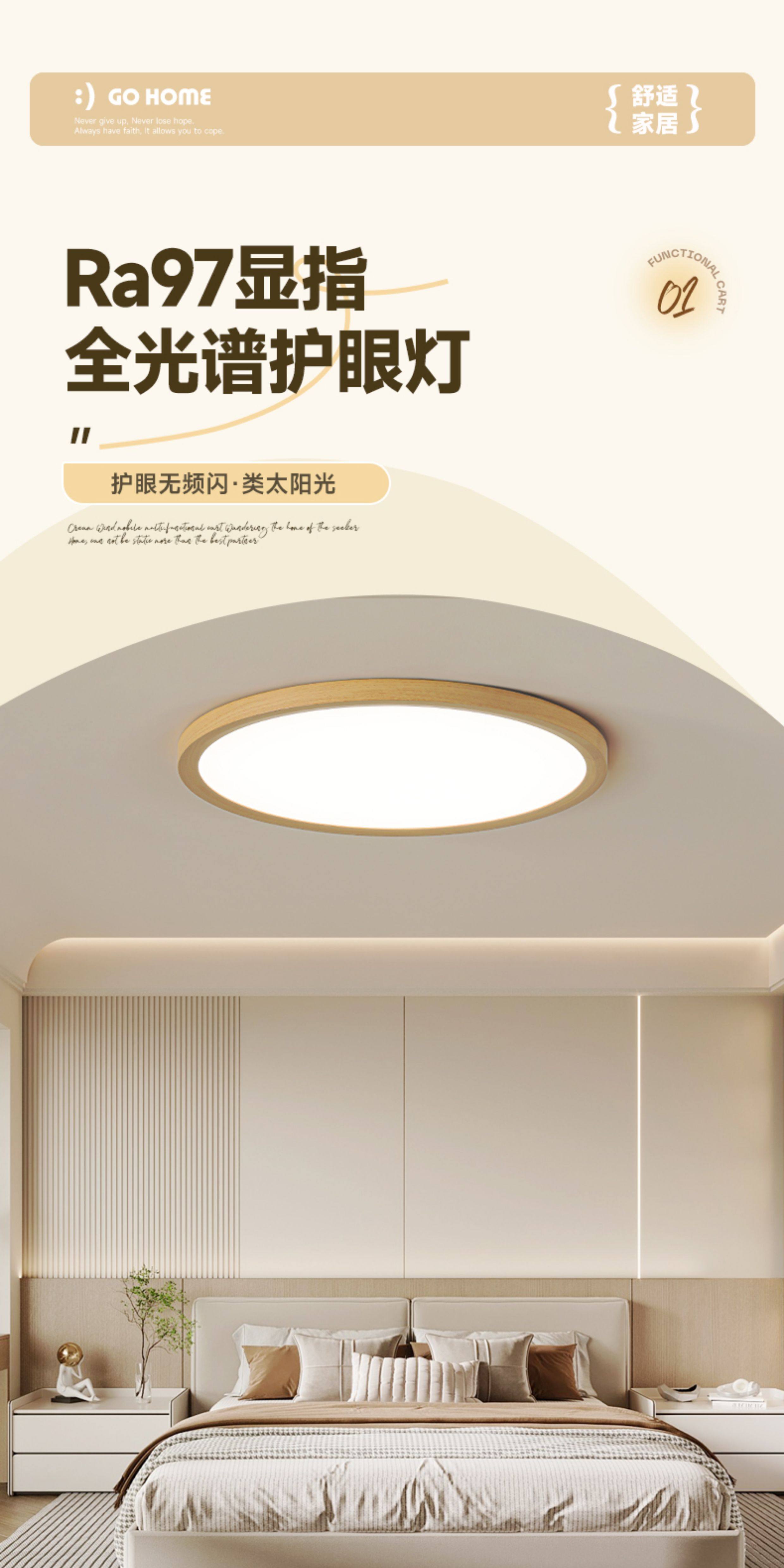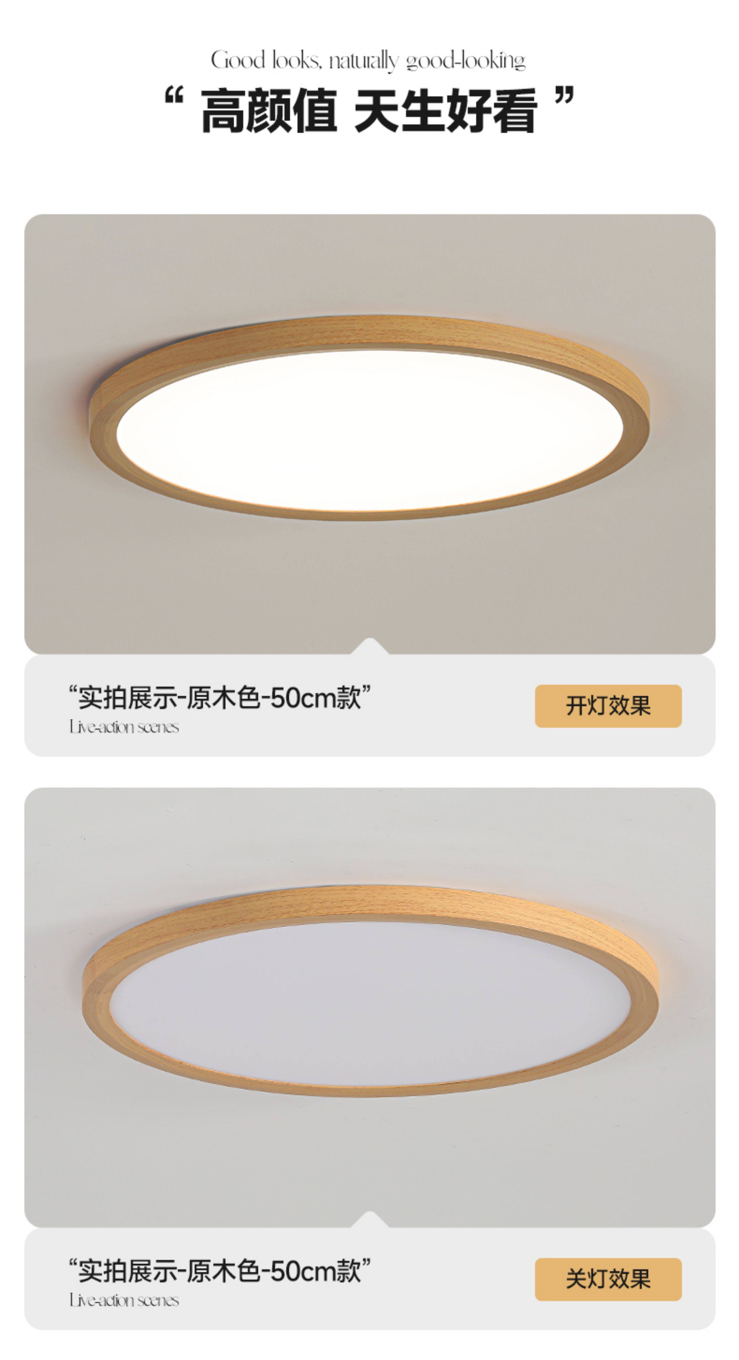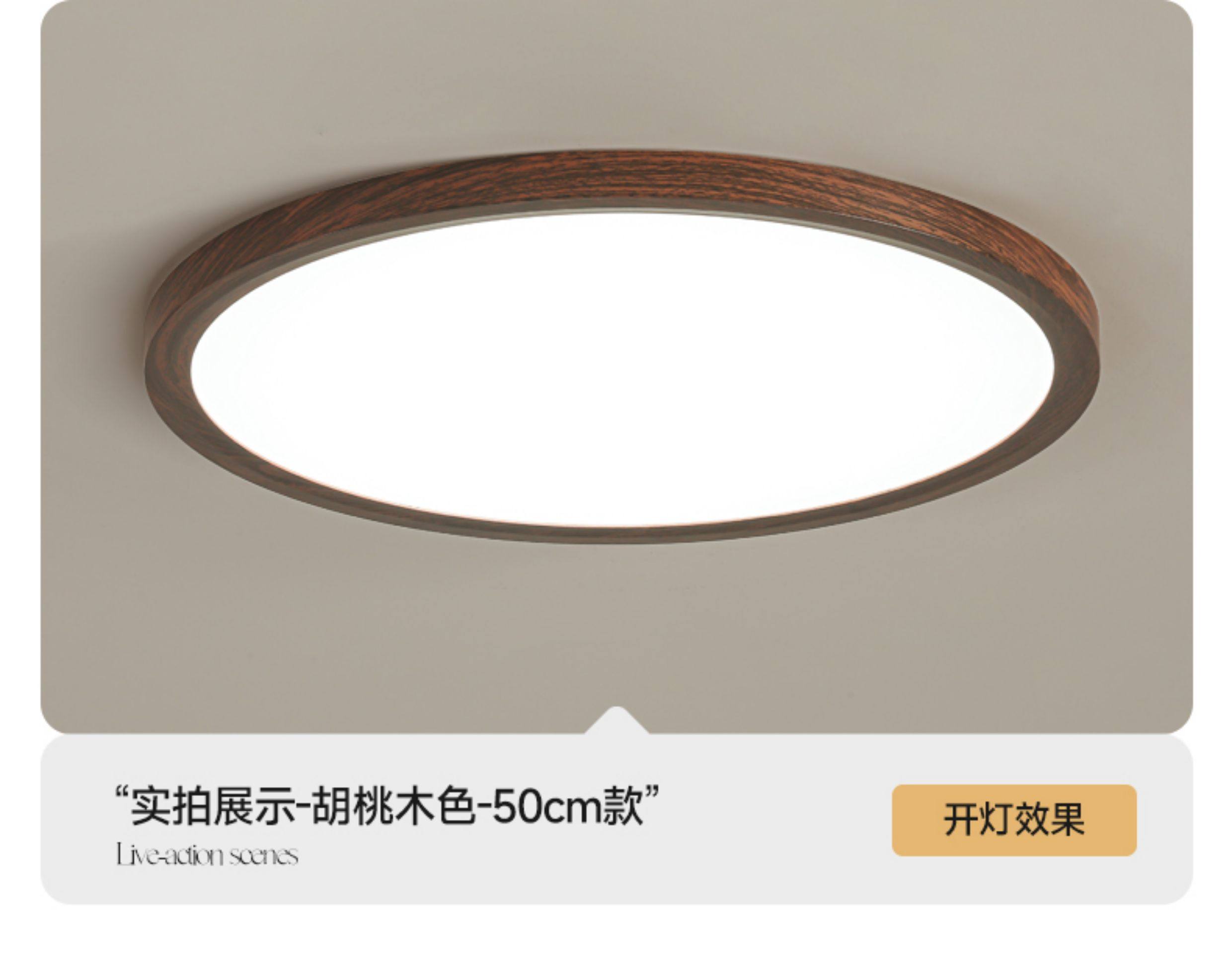 2.5cm Ultra-Thin Wood-Style Bedroom Lamp, Eye-Protecting Children's Room Solid Wood Lighting, Simple Study Room Japanese-Style Ceiling Lamp