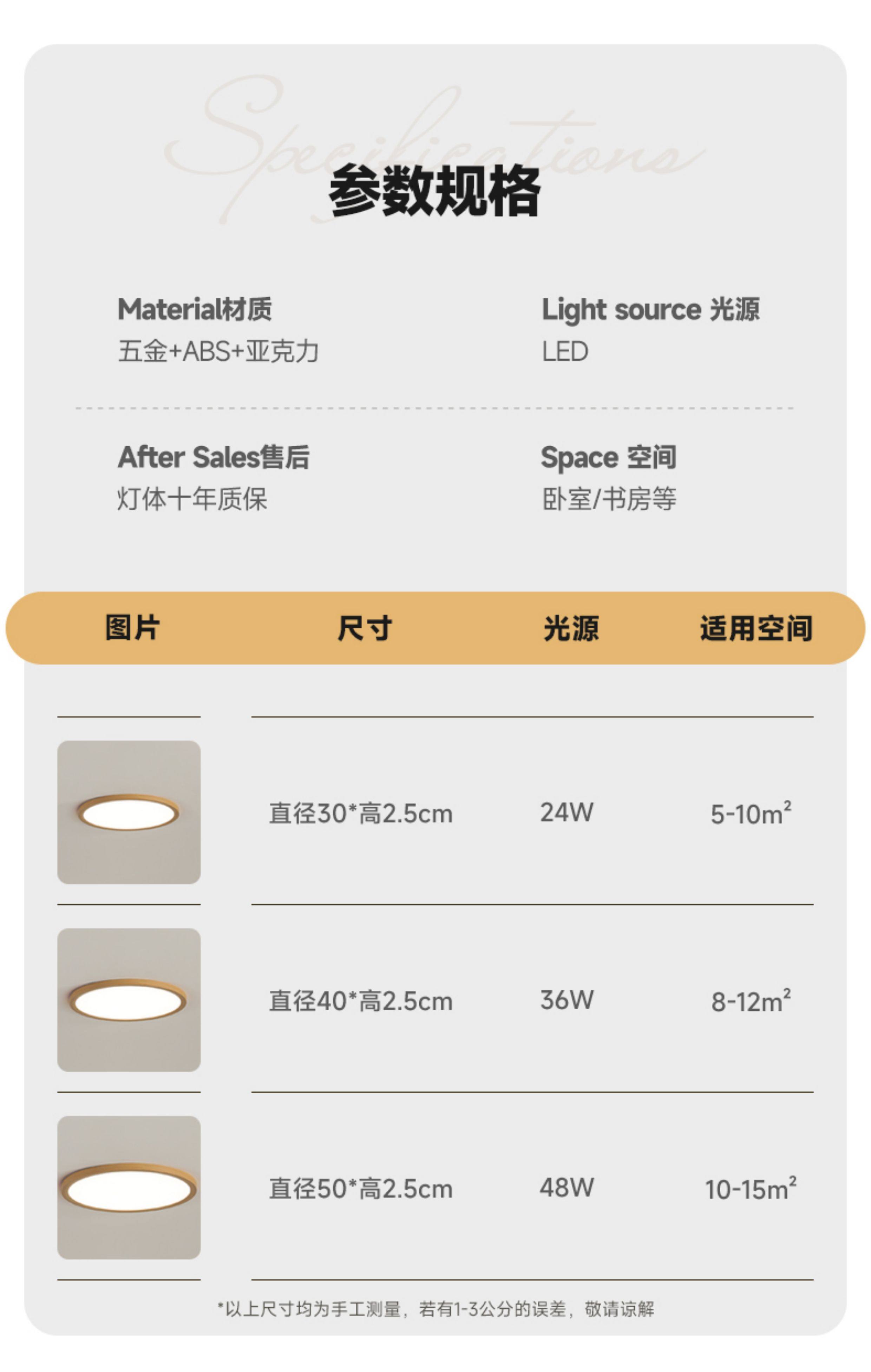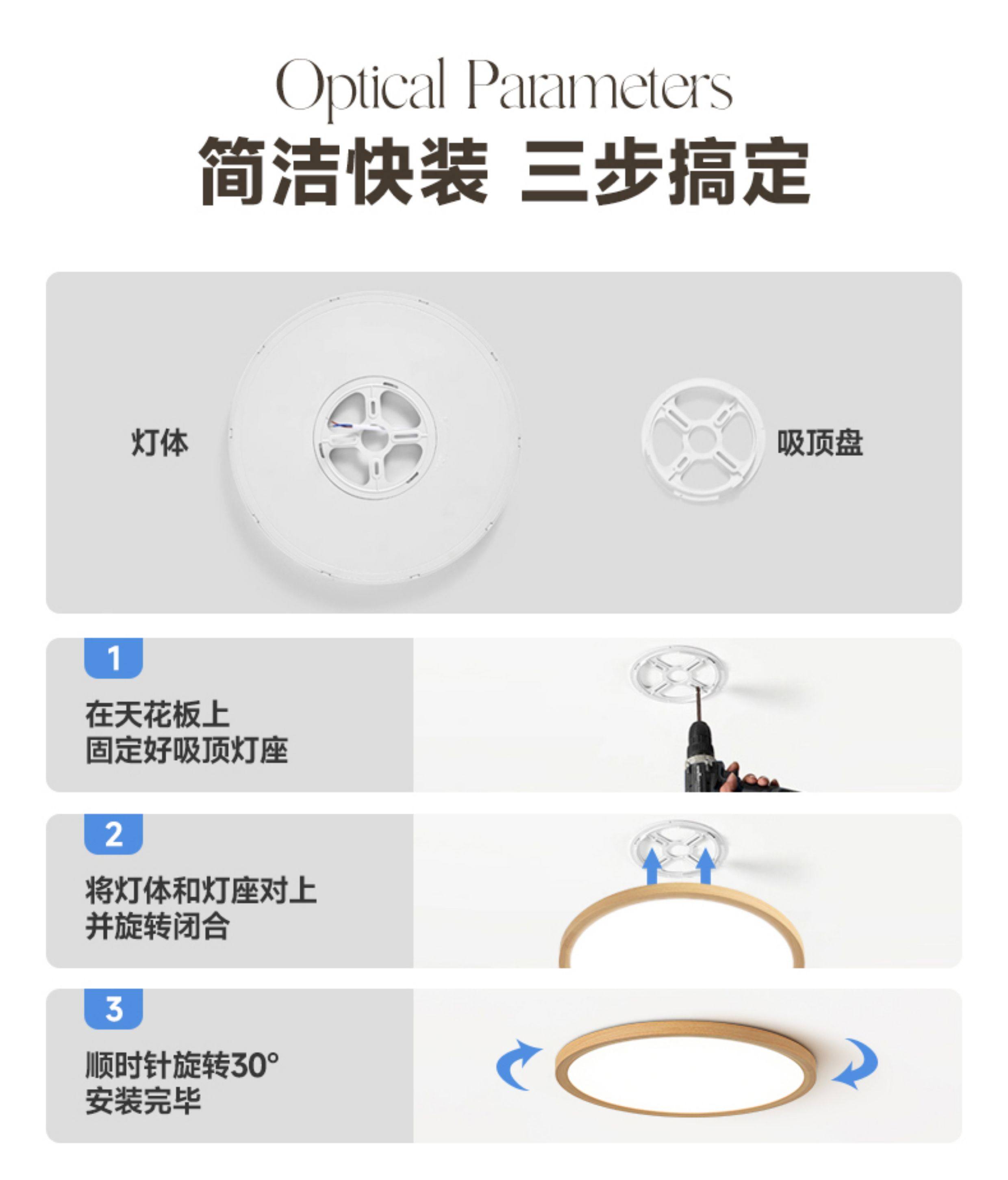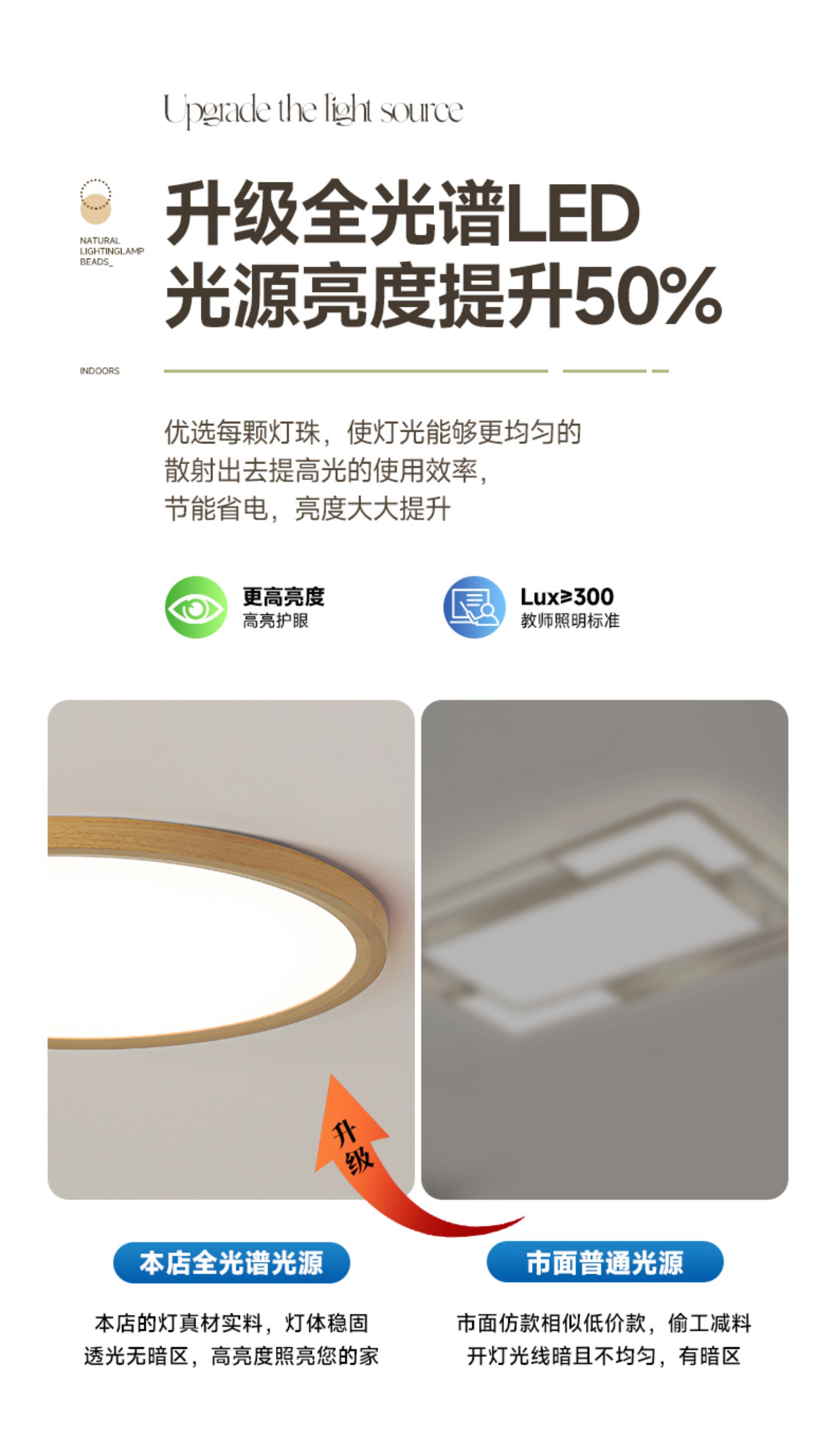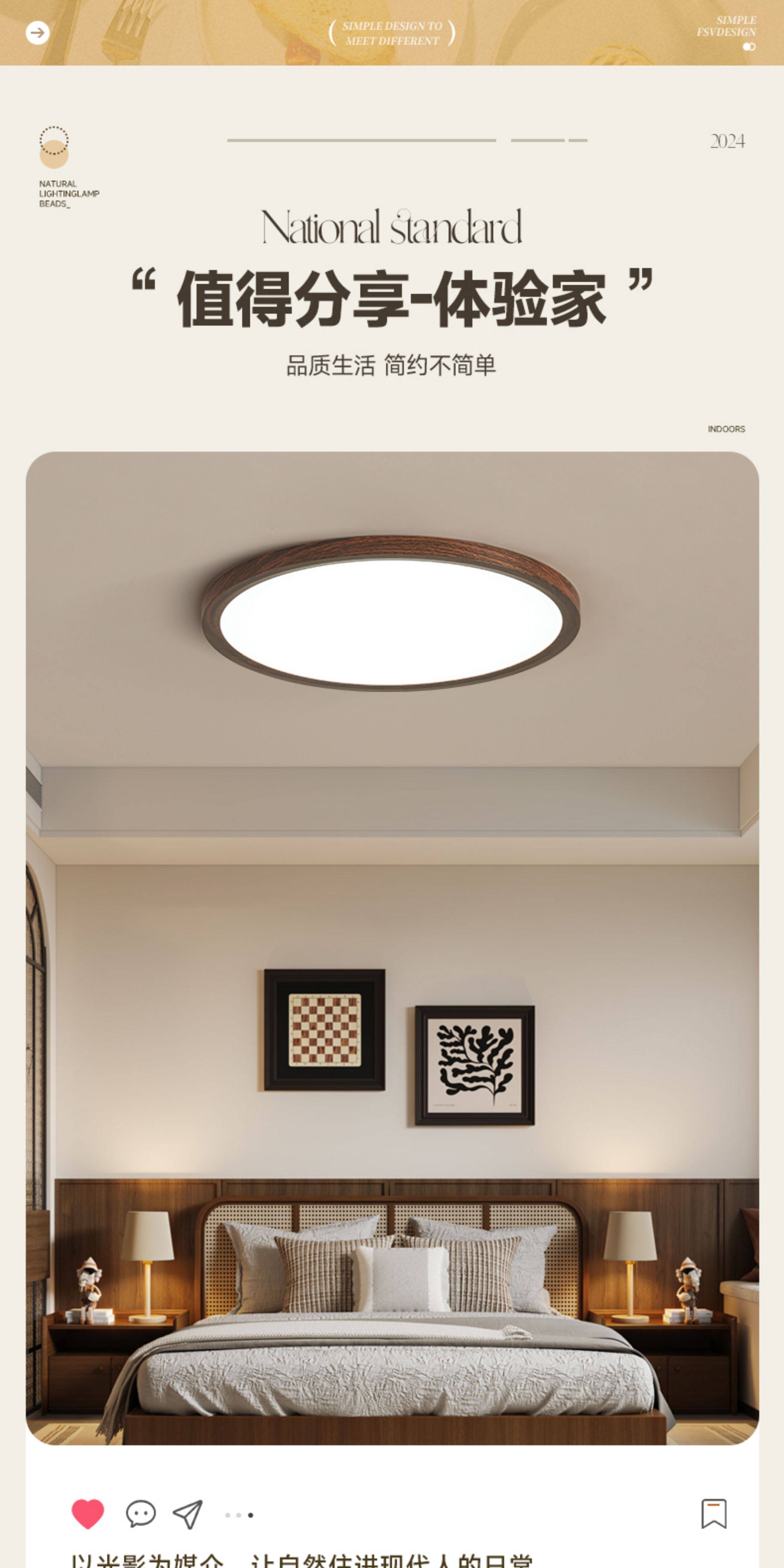 2.5cm Ultra-Thin Wood-Style Bedroom Lamp, Eye-Protecting Children's Room Solid Wood Lighting, Simple Study Room Japanese-Style Ceiling Lamp