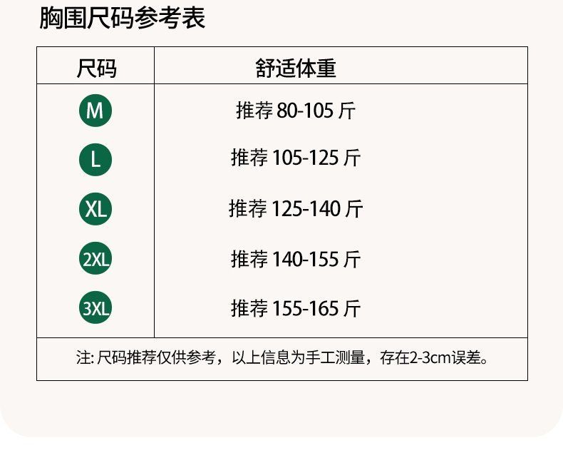 China (cm) 165 / 88-90 170 / 96-98 175 / 108-110 180 / 118-122 185 / 126-130