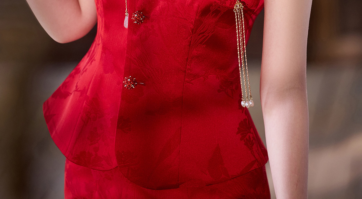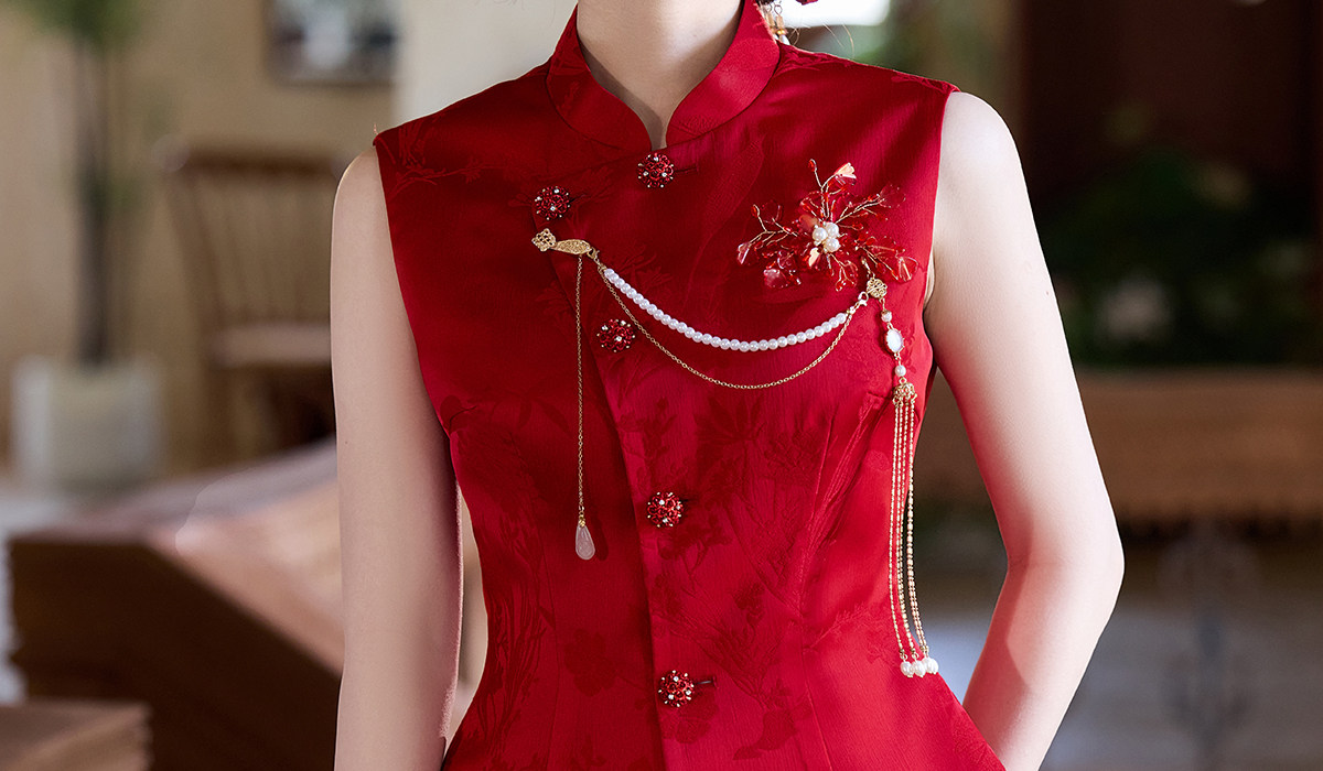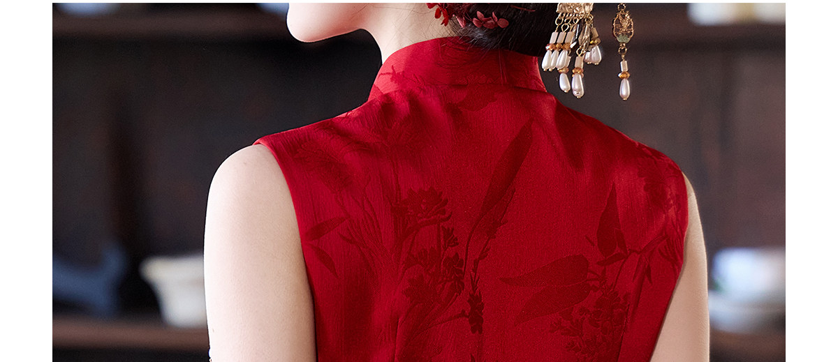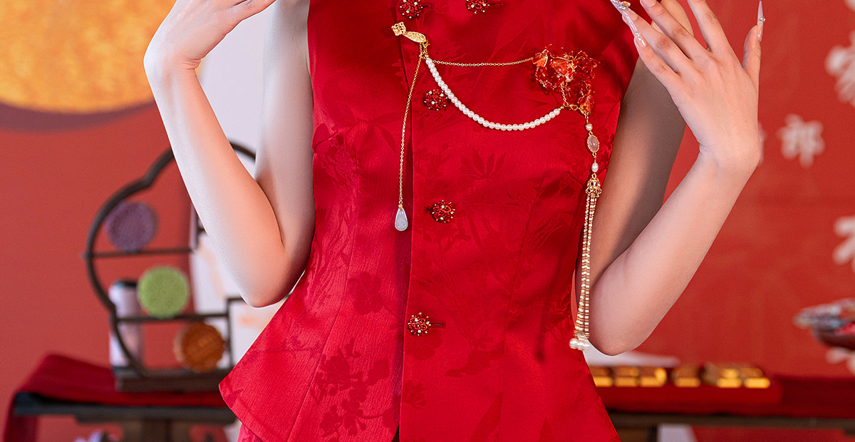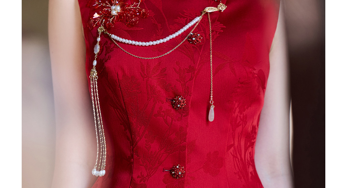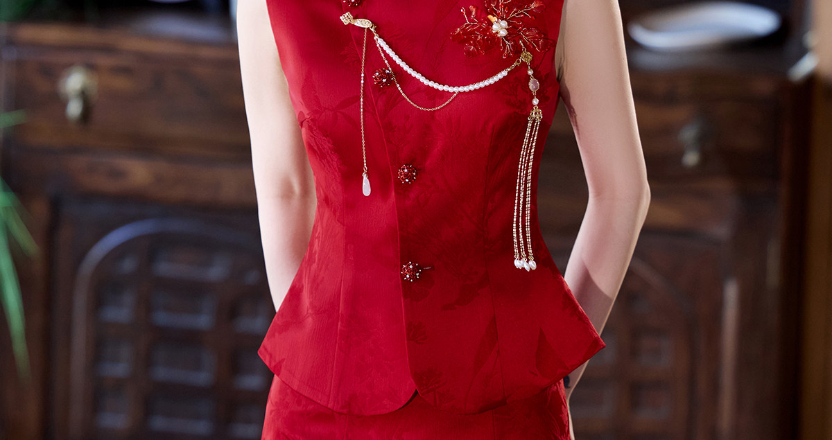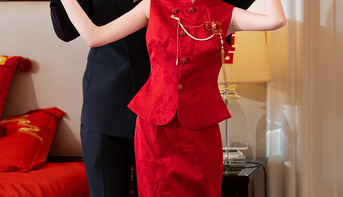 Aishini <Rosa Roja> Toast Wear Cheongsam Vestido de sirena de compromiso nupcial de dos piezas Sin mangas Primavera y verano Nuevo estilo
