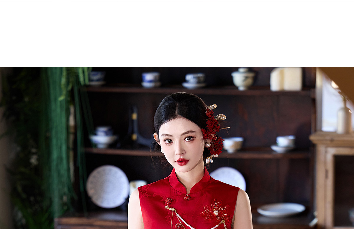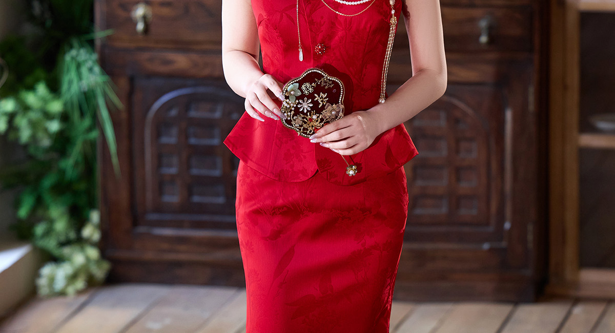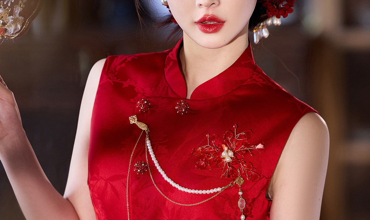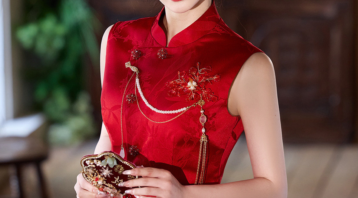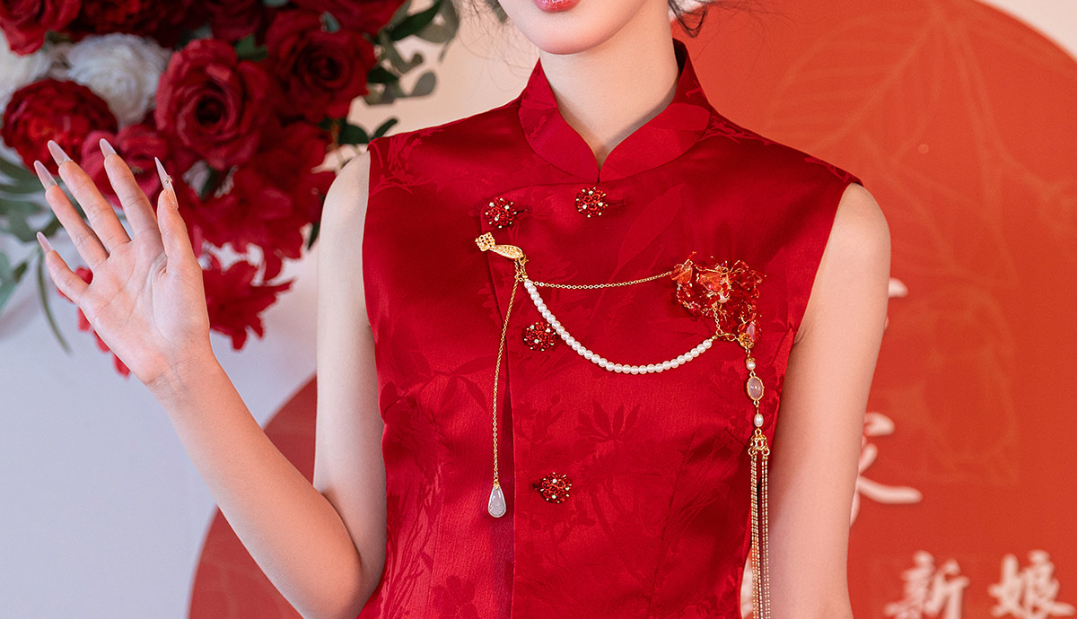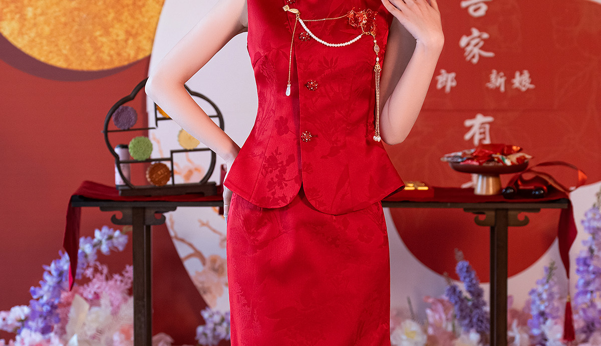 Aishini <Rosa Roja> Toast Wear Cheongsam Vestido de sirena de compromiso nupcial de dos piezas Sin mangas Primavera y verano Nuevo estilo