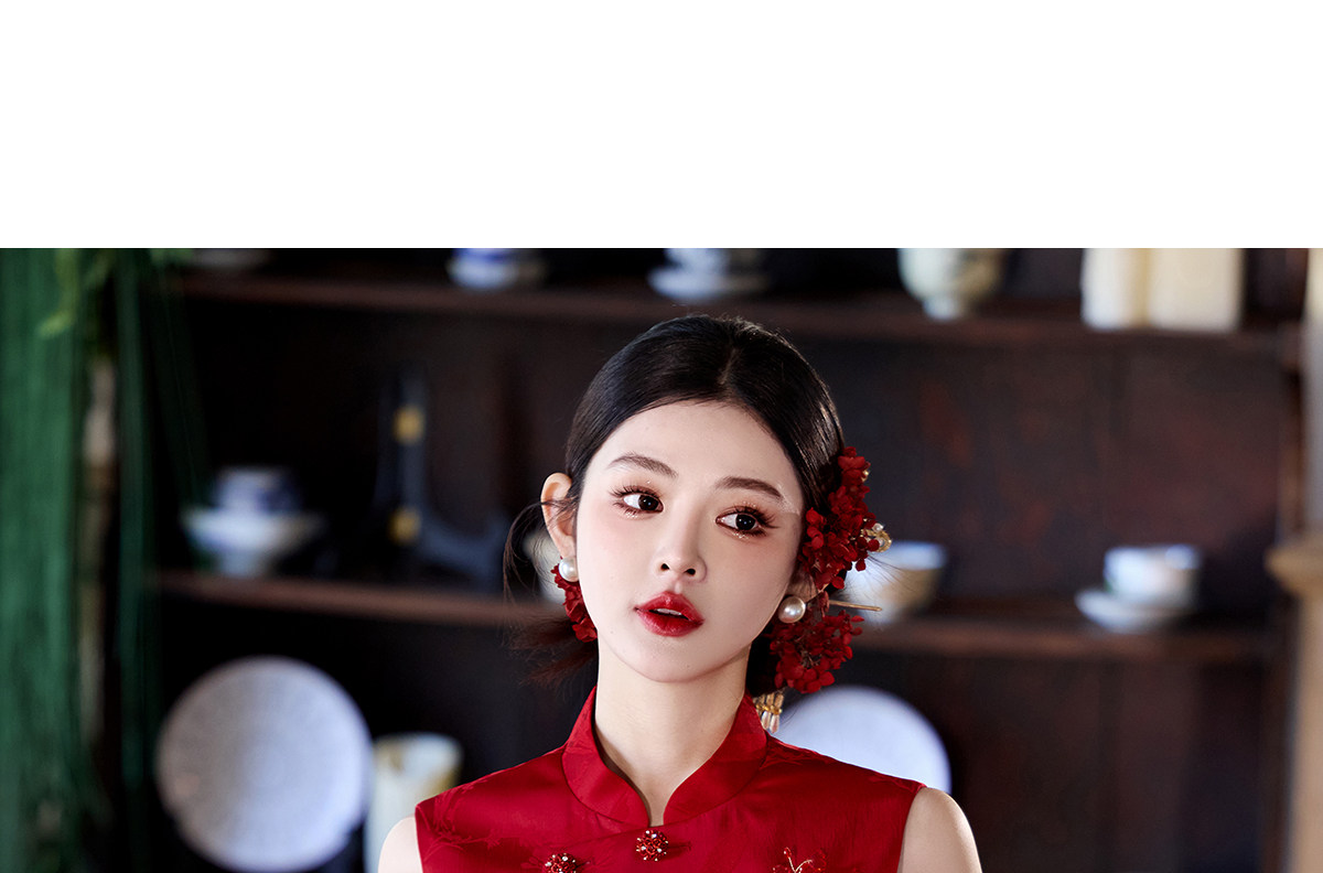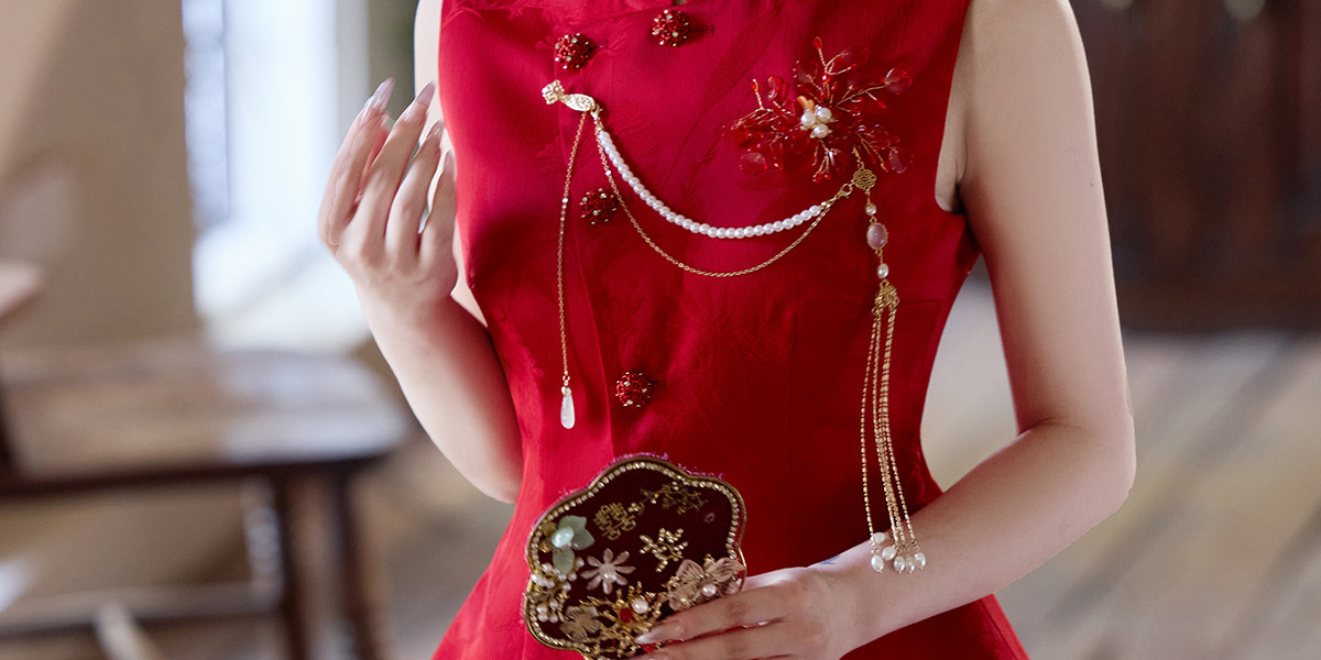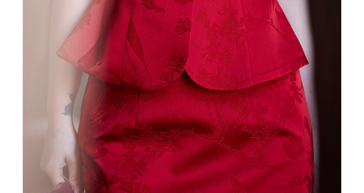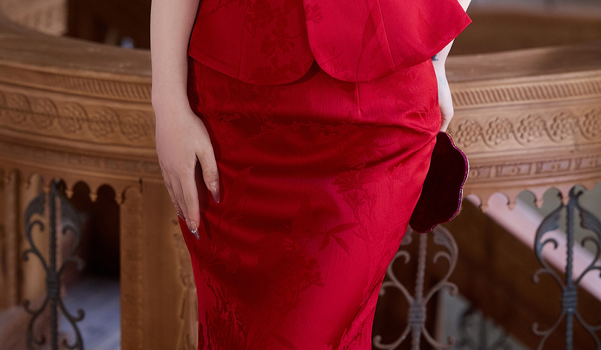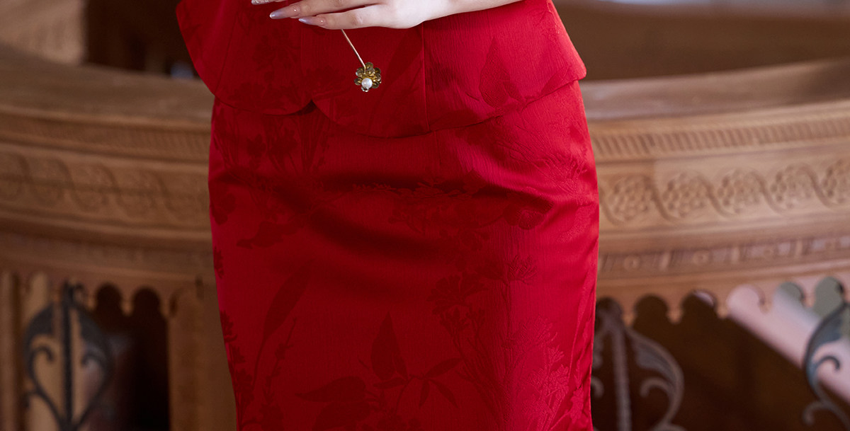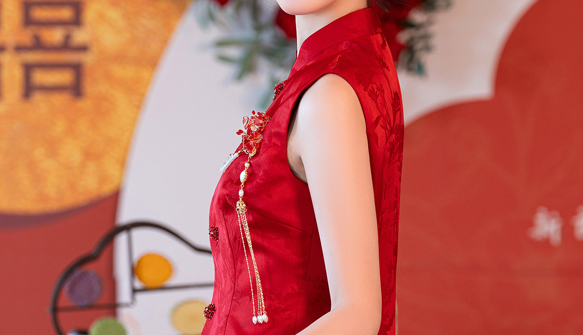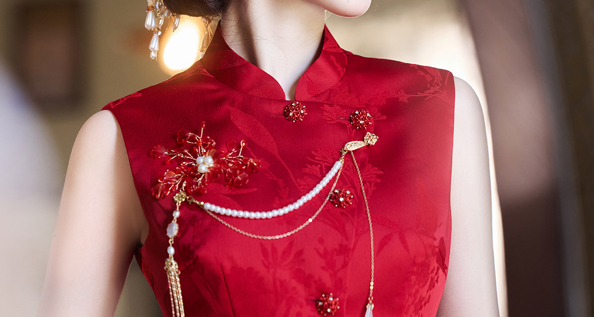Aishini <Rosa Roja> Toast Wear Cheongsam Vestido de sirena de compromiso nupcial de dos piezas Sin mangas Primavera y verano Nuevo estilo