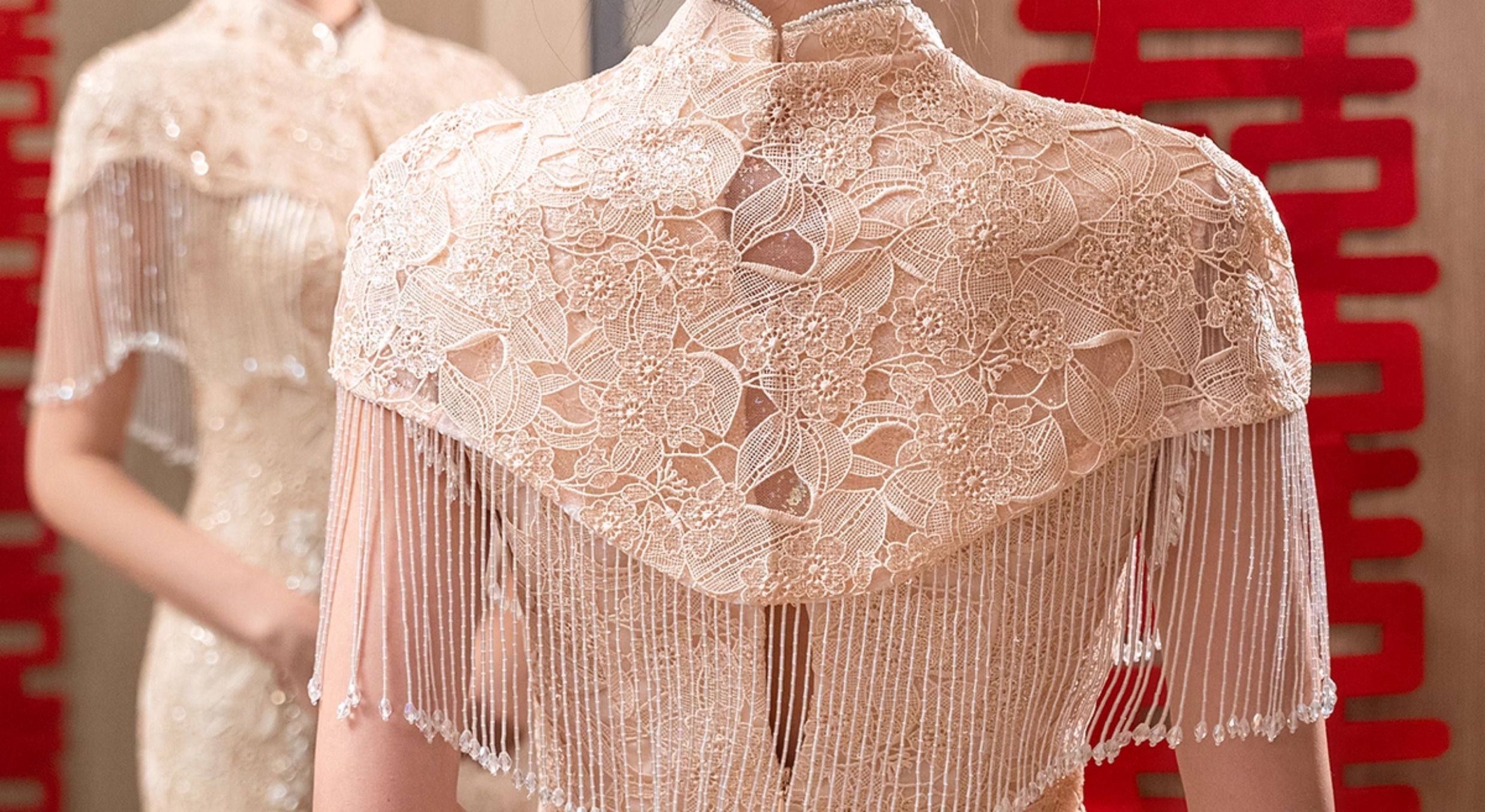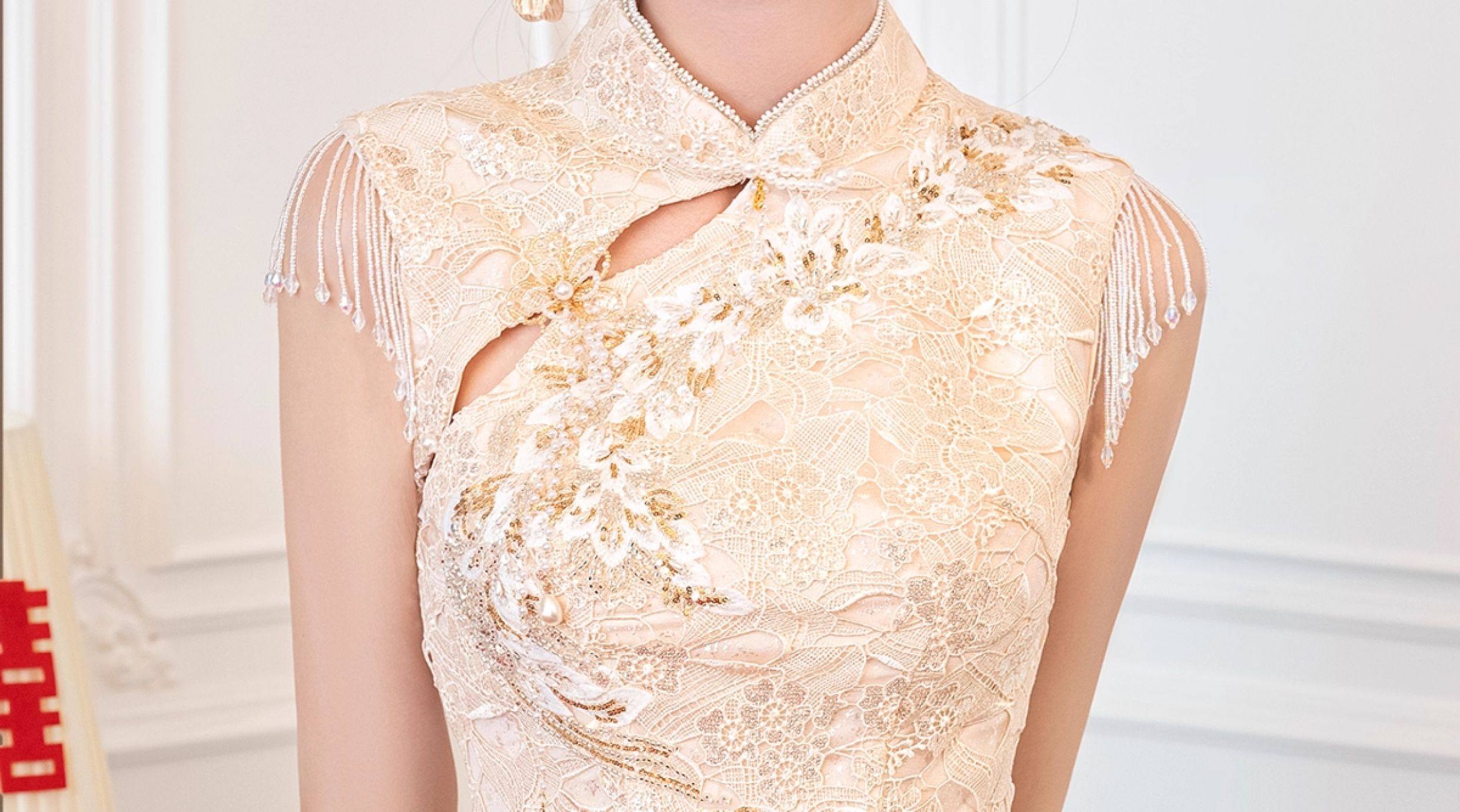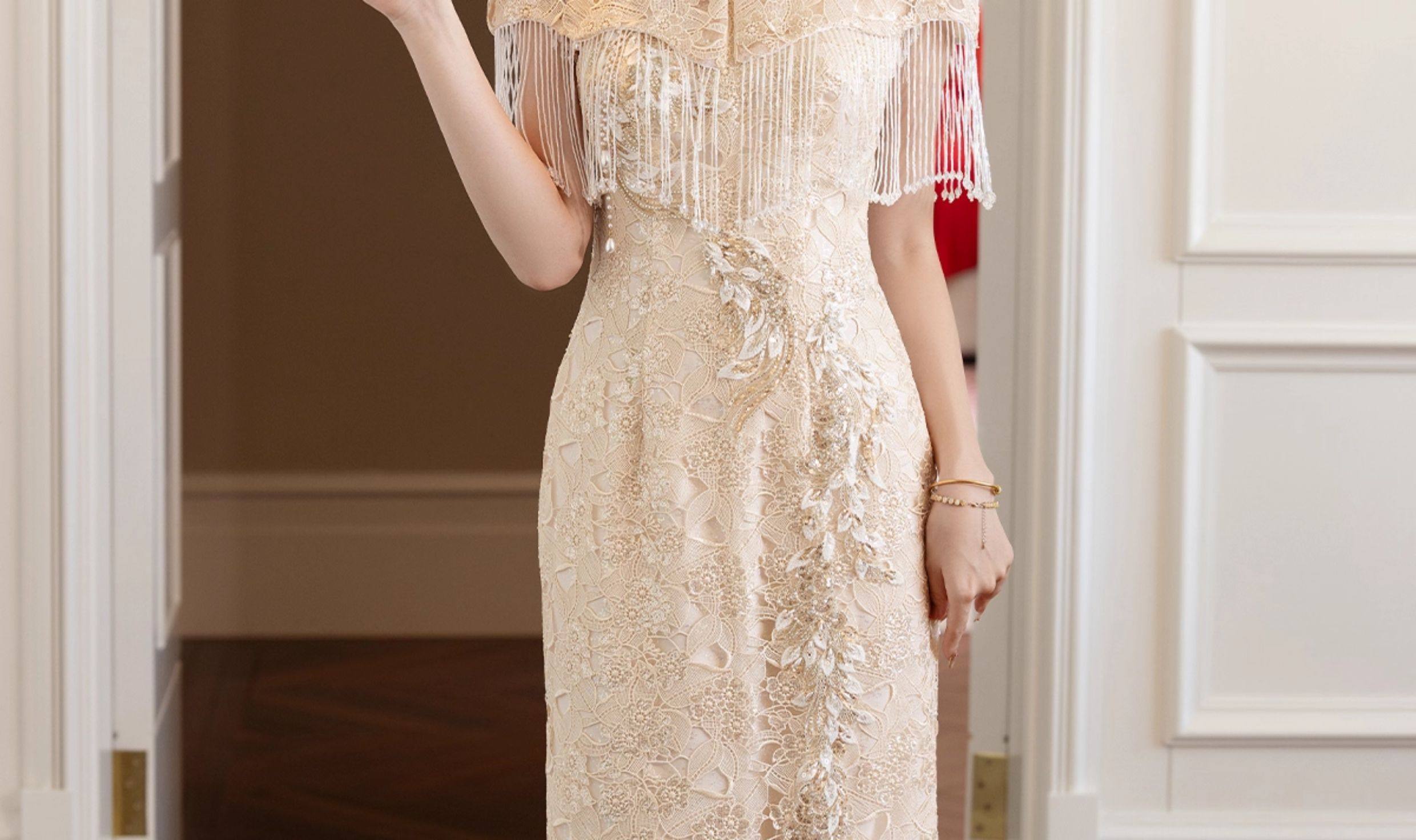 Clasificación de colores Cheongsam + hombro de nube con borlas