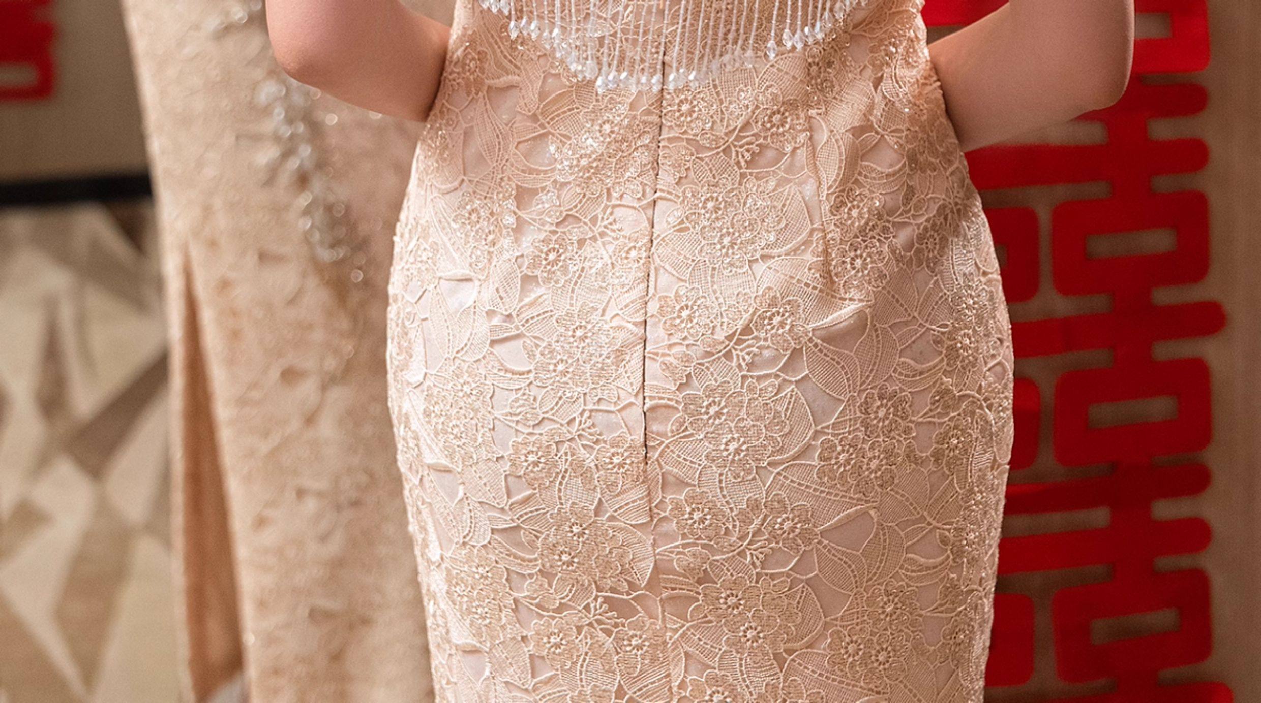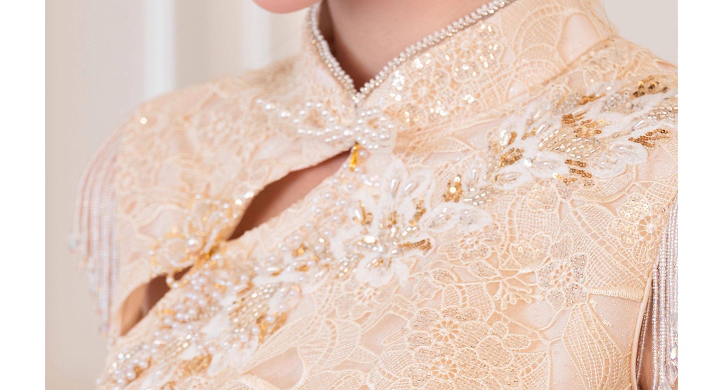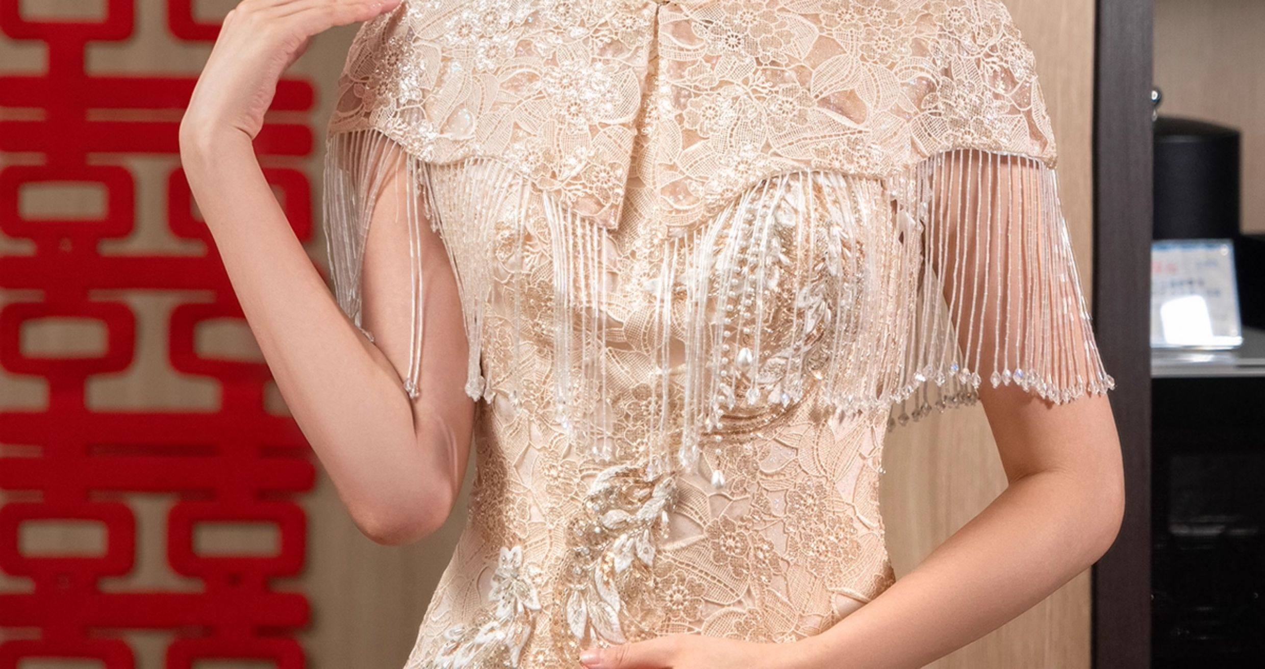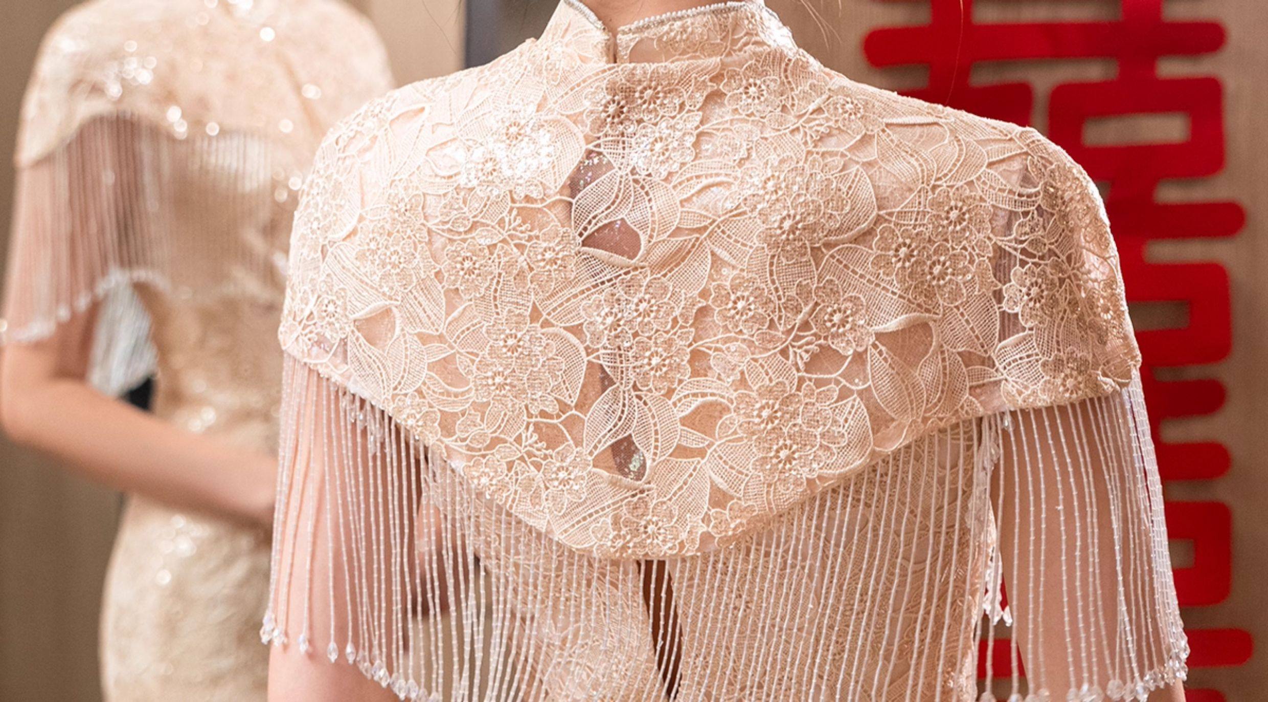 Clasificación de colores Cheongsam + hombro de nube con borlas