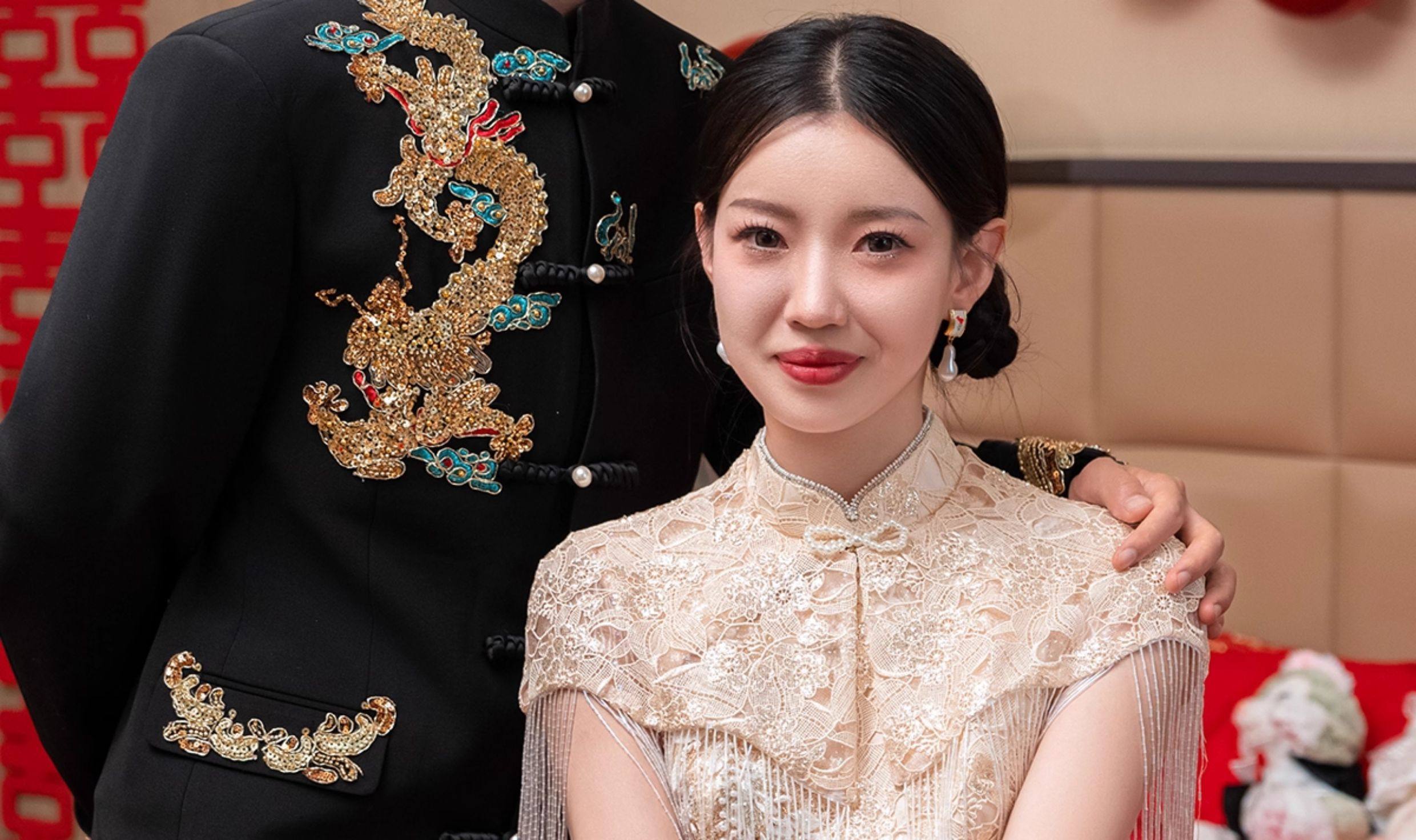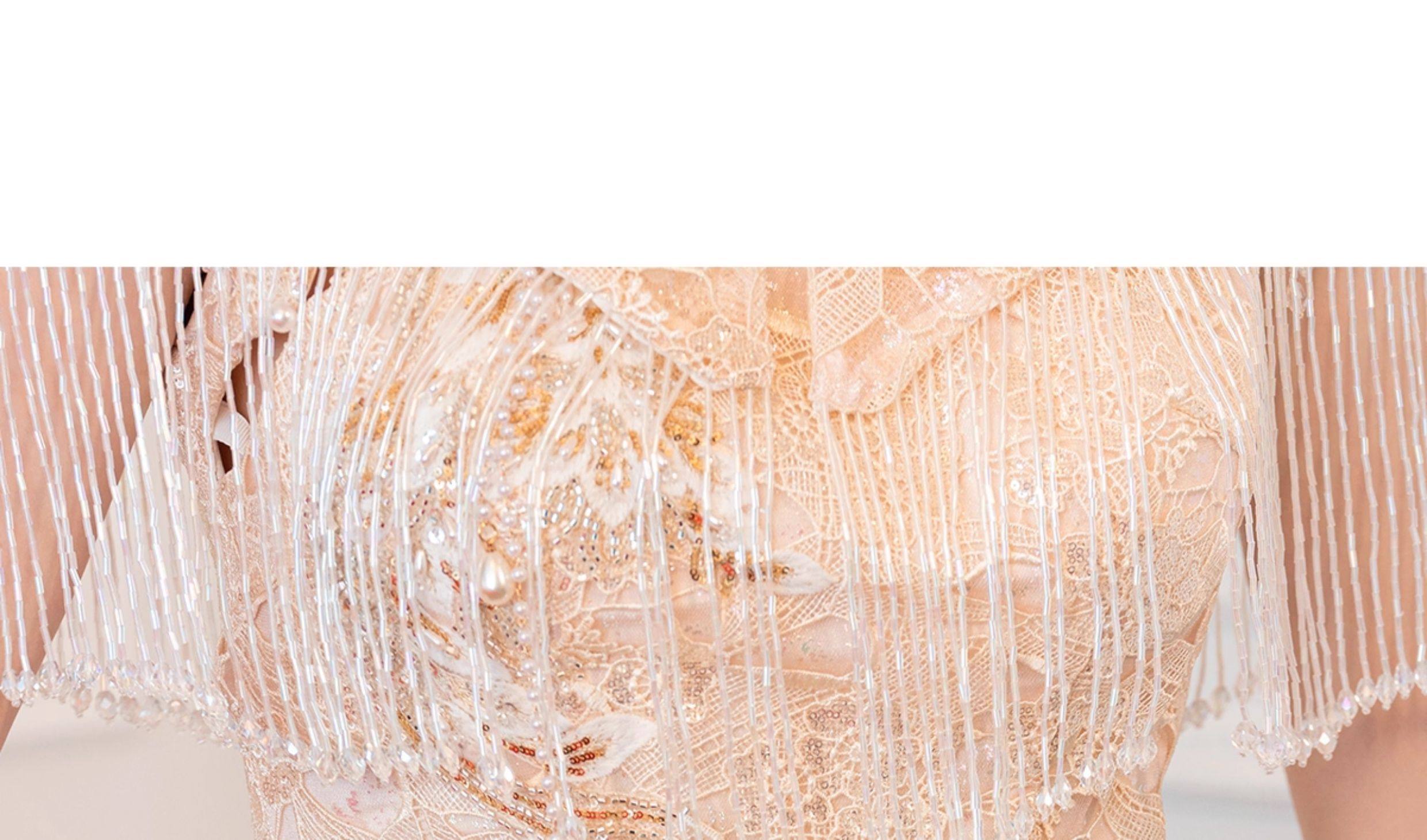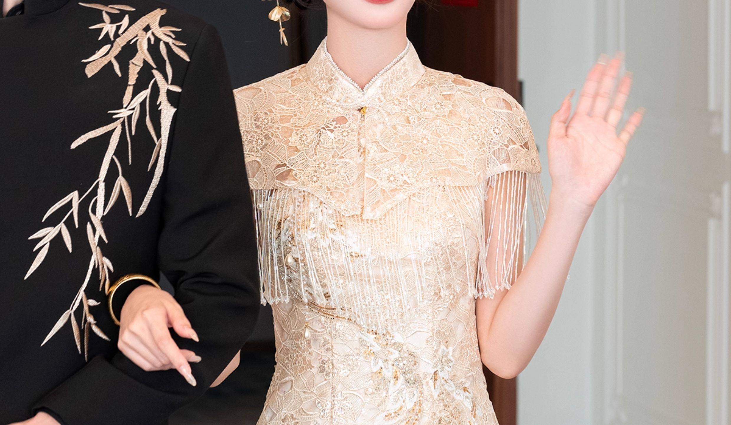 Aishini <Wutong> Cheongsam Toast Wear mujer 2025 nuevo vestido de compromiso de estilo chino vestido de borla de hombro de nube