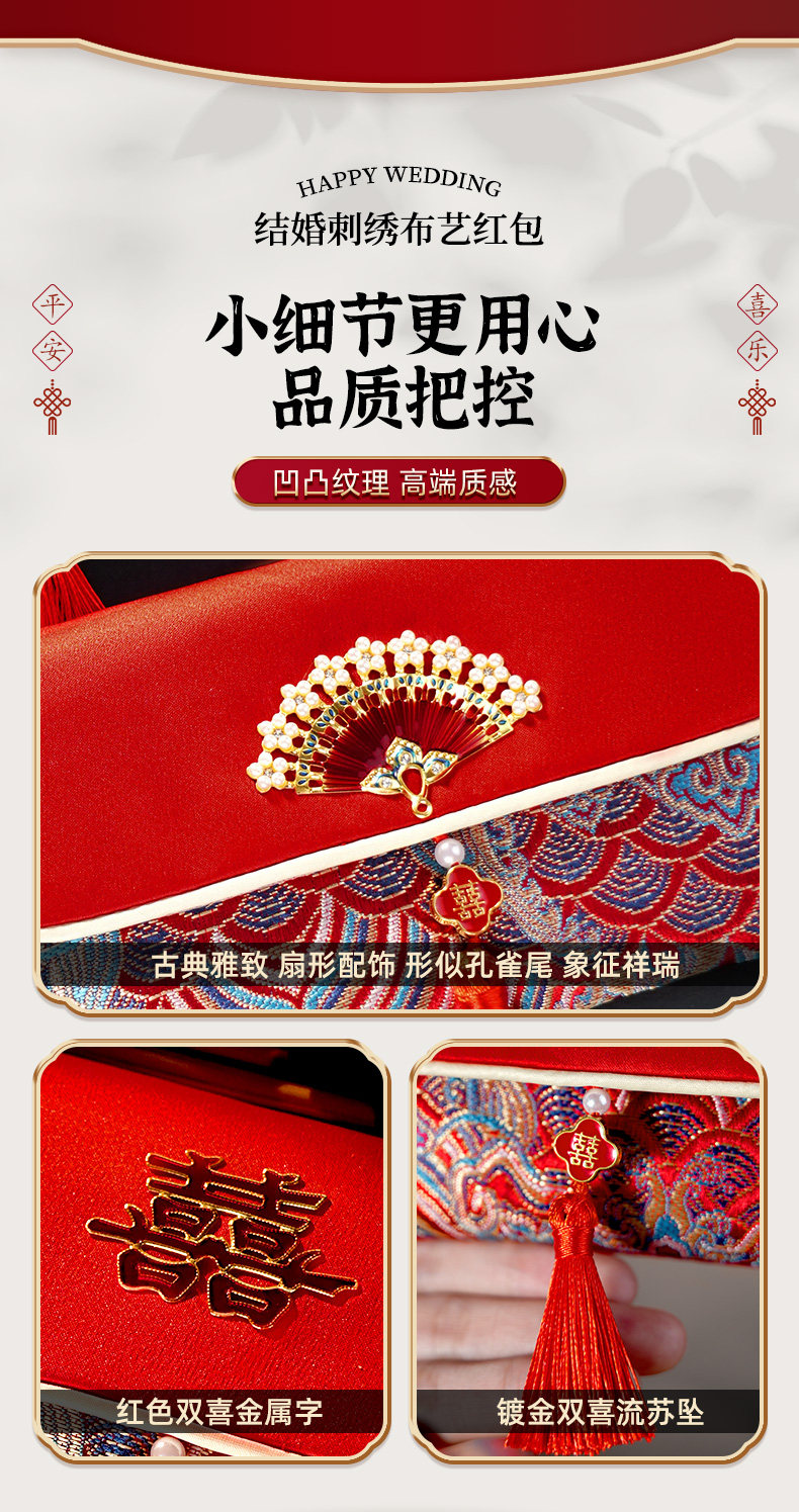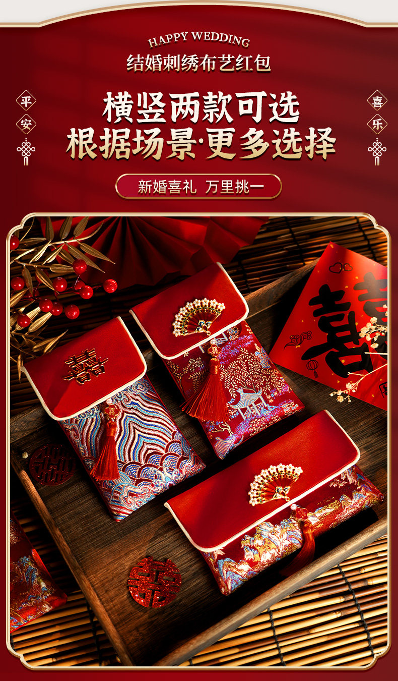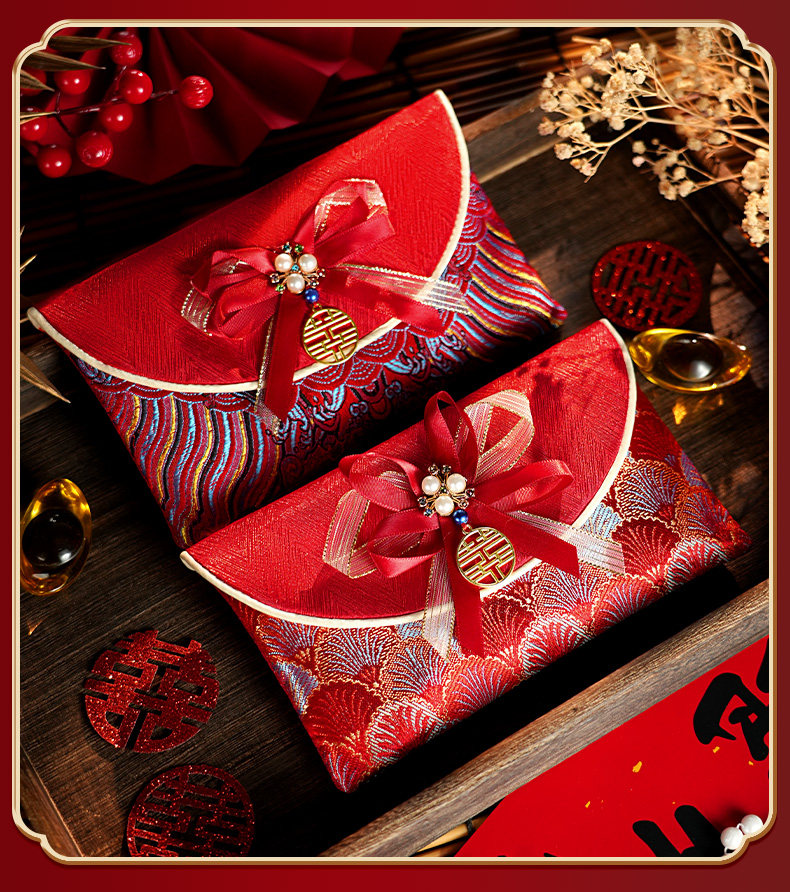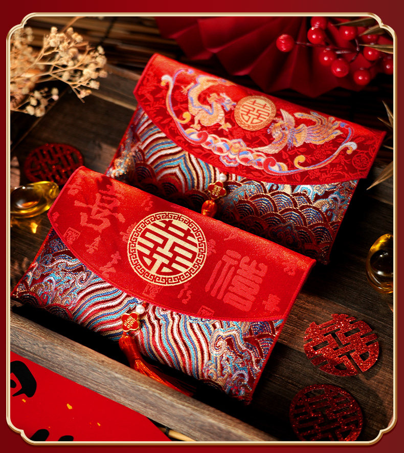 A Pair of Red Envelopes for Weddings, Large Size, with the Word "Xi Zi" (Happiness) in Fabric, 2025 New High-End Red Packets