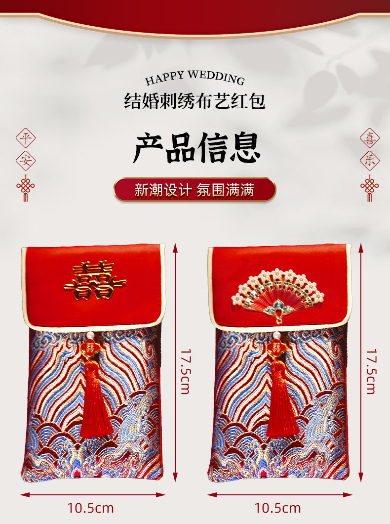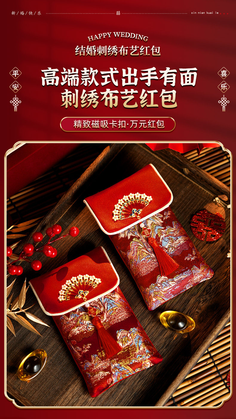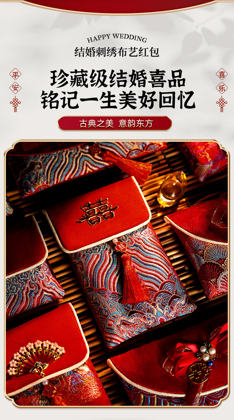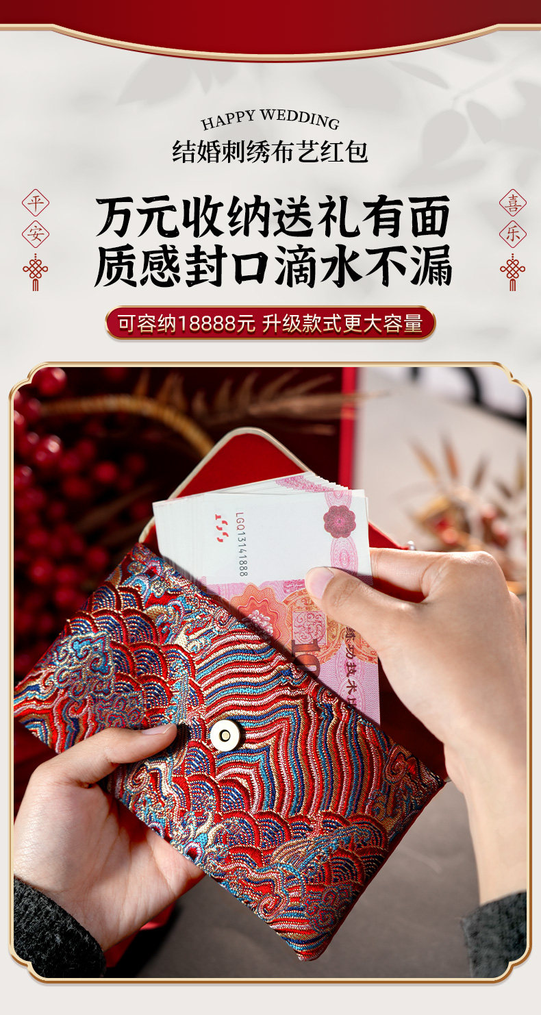 A Pair of Red Envelopes for Weddings, Large Size, with the Word "Xi Zi" (Happiness) in Fabric, 2025 New High-End Red Packets