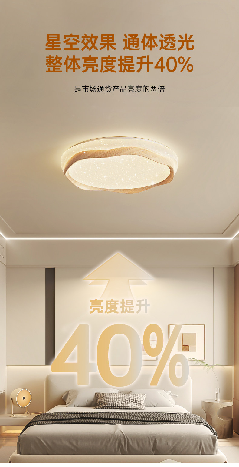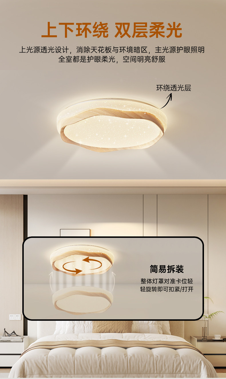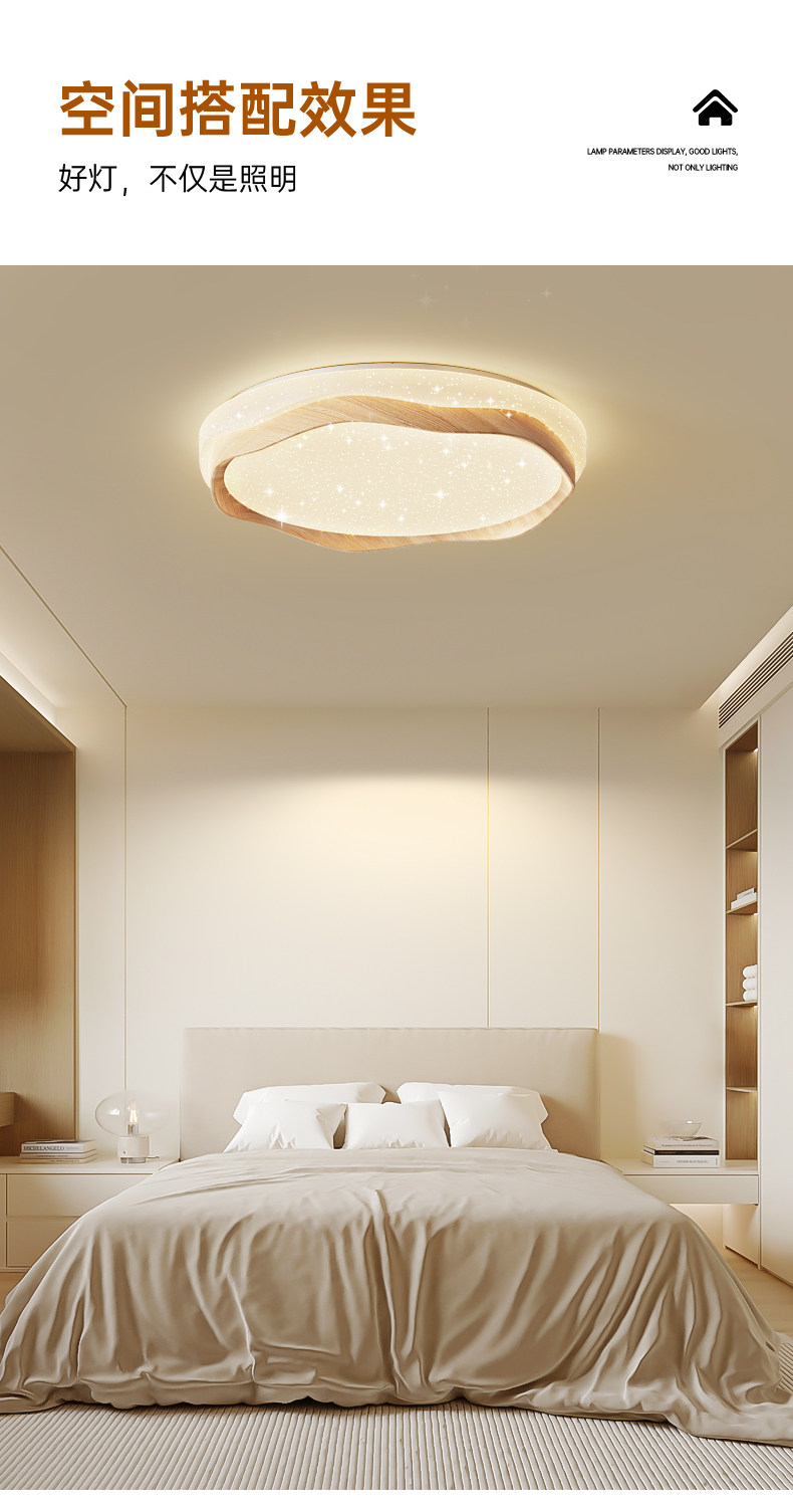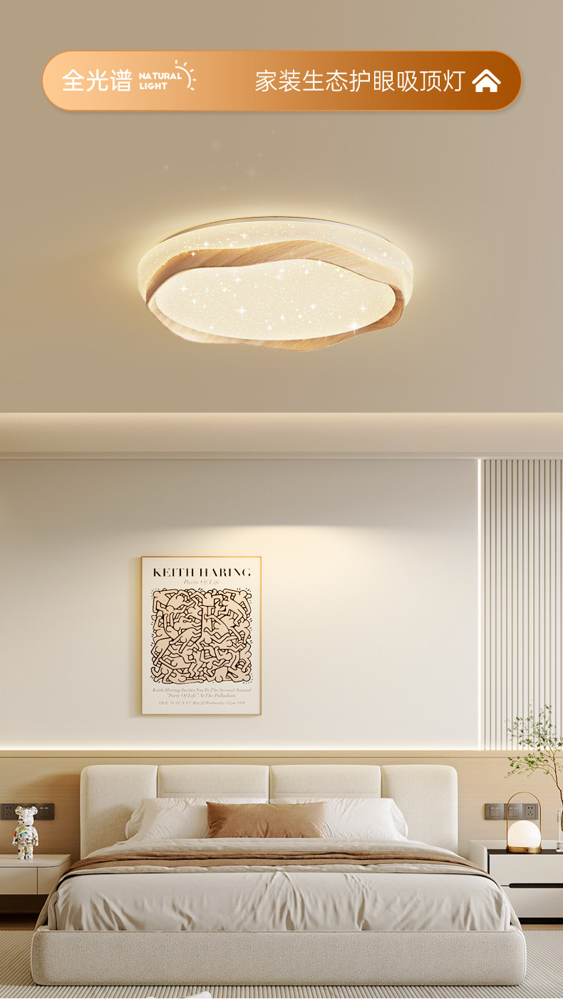 卧室灯2026新款奶油原木风日式星空满天星圆形主卧儿童房间吸顶灯