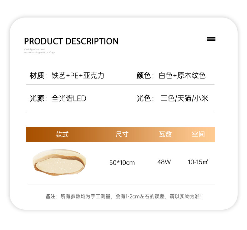 颜色分类 【全光谱】原木色-圆形50cm-三色变光,【全光谱】原木色-圆形50cm-天猫精灵,【全光谱】原木色-圆形50cm-智能调光,【全光谱】原木色-方形50cm-三色变光,【全光谱】原木色-方形50cm-天猫精灵,【全光谱】原木色-方形50cm-智能调光,【全光谱】原木色-长方形110cm-三色变光,【全光谱】原木色-长方形110cm-天猫精灵,【全光谱】原木色-长方形110cm-智能调光