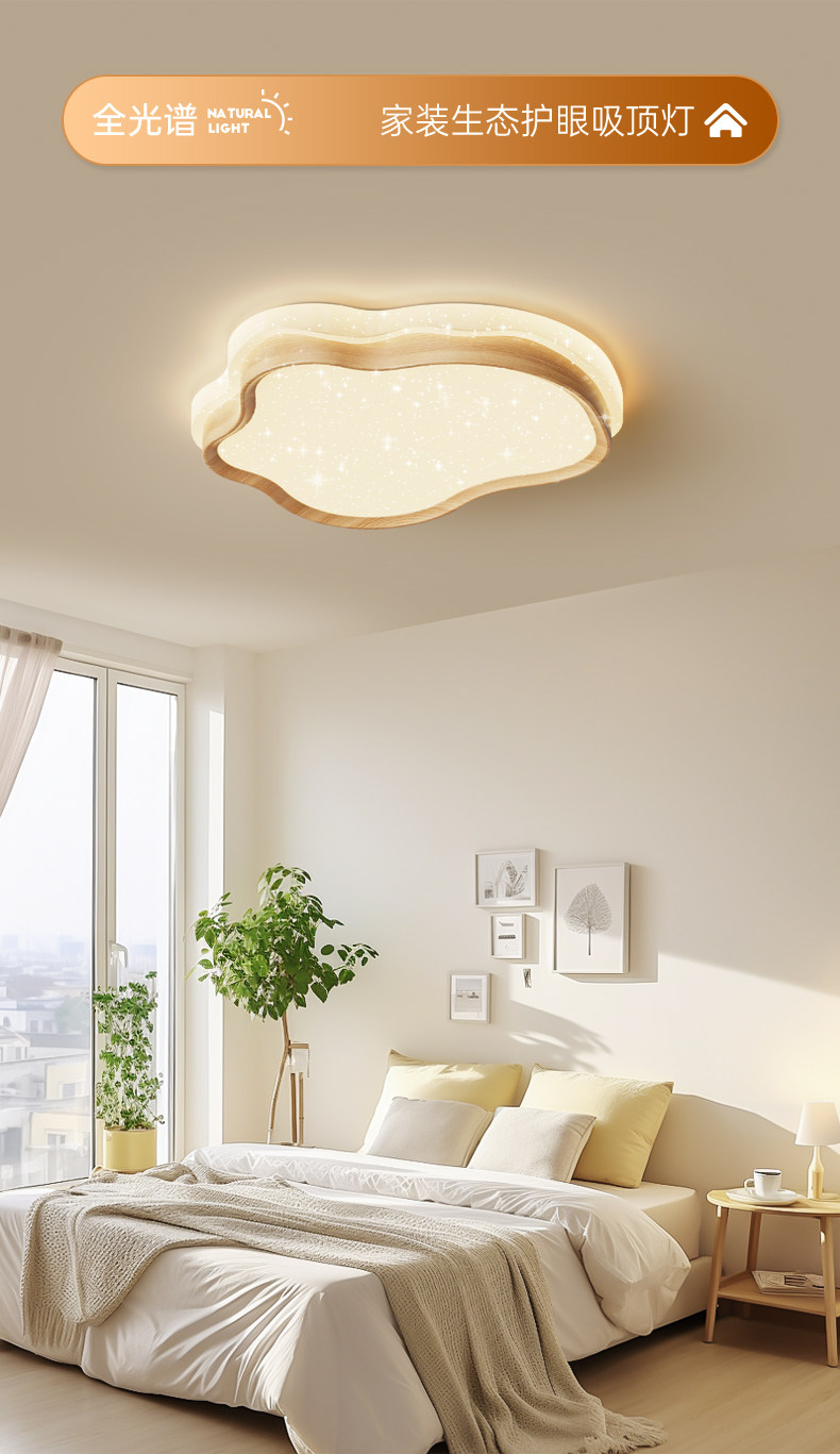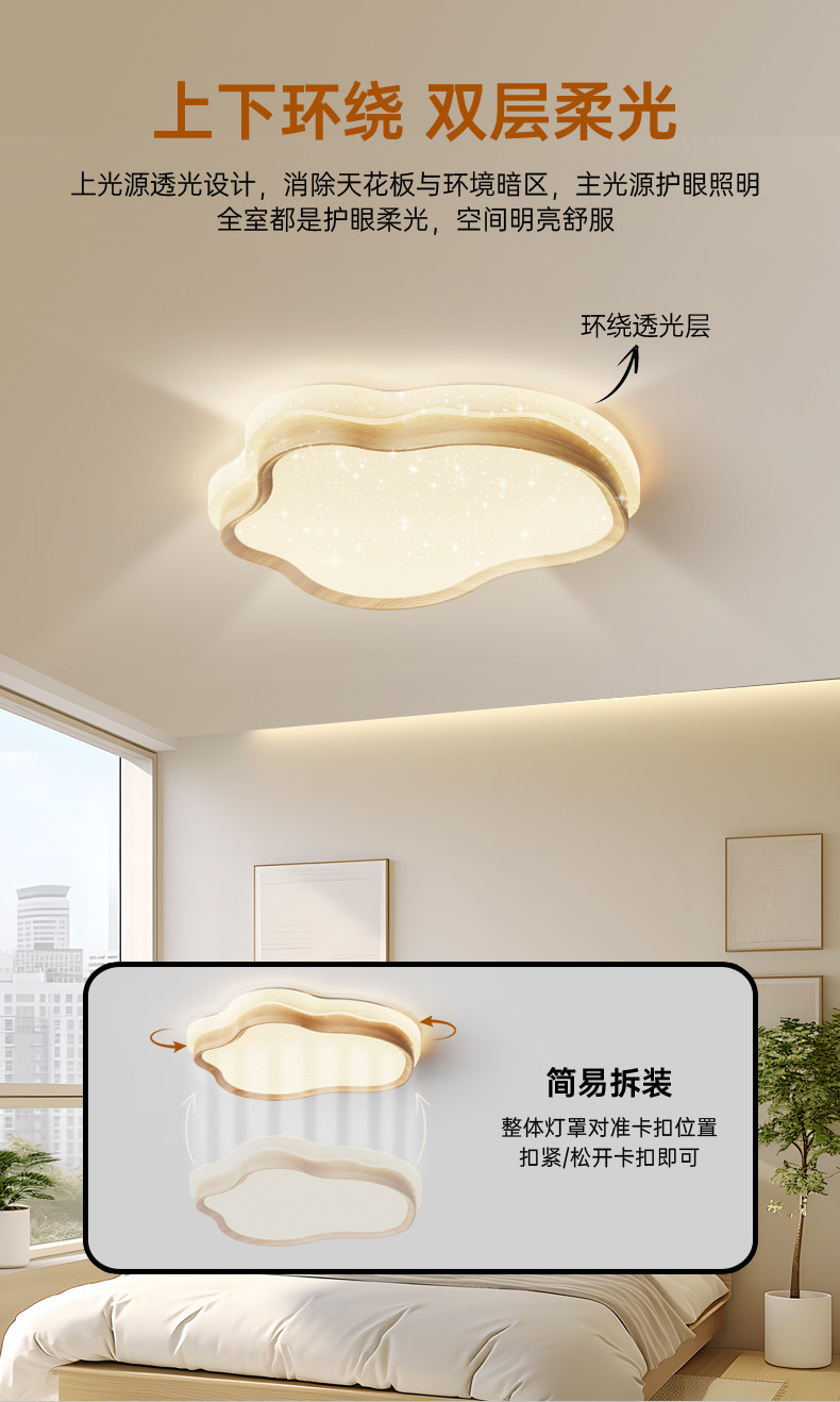 卧室灯2026新款云朵北欧原木奶油风日式复古吸顶灯满天星星空顶灯